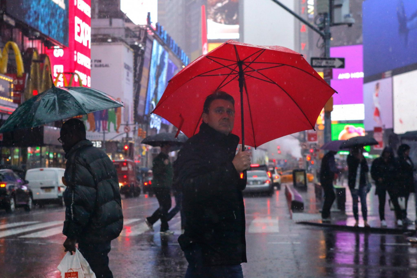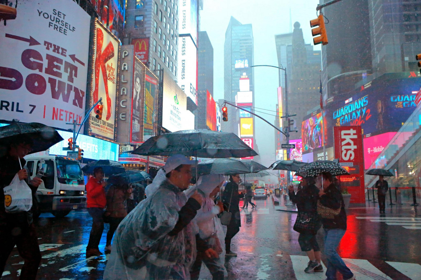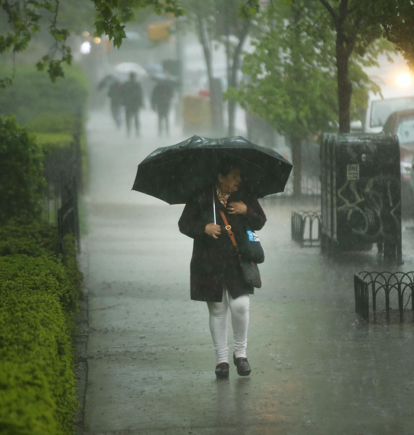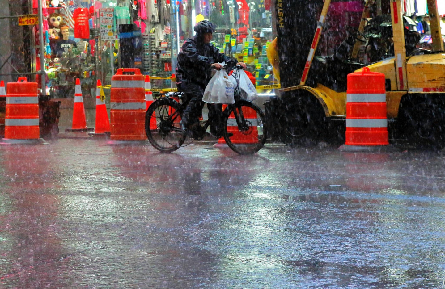 Stipras lietusgāzes Ņujorkā un tās apkārtnē ir izraisījušas plūdus un satiksmes traucējumus, tostarp avioreisu kavēšanos, piektdien paziņoja amatpersonas. Pensilvānijas stacijā, kas ir galvenā starppilsētu dzelzceļa stacija Ņujorkā, bija applūduši divi sliežu ceļi. Daži Vestsaidas automaģistrāles posmi pie Hudzonas upes bija slēgti abos virzienos. Taksometri un automobiļi, šķērsojot Centrālparku un dažas Stetenailendas daļas, brauca pa dziļu ūdeni. Ņūarkas starptautiskajā lidostā ienākošie reisi kavējās par apmēram trim stundām. Brīdinājums par pēkšņiem plūdiem bija spēkā Bruklinas, Kvīnsas un Stetenailendas rajonos, kā arī dažos Ņūdžersijas štata apgabalos.