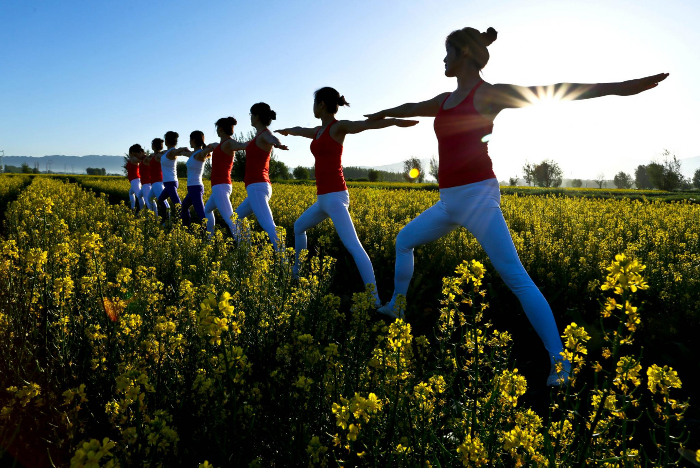 Dāmas Ķīnā nolēmušas ierasto jogas praktizēšanu sporta zālē nomainīt pret vingrošanu brīvā dabā.