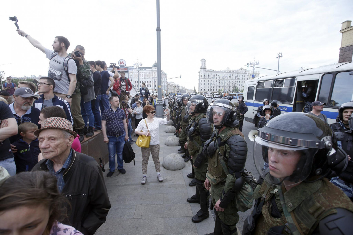 Maskavā pirms paredzētās protesta akcijas aizturēts tās rīkotājs - opozīcijas politiķis Aleksejs Navaļnijs, paziņojusi viņa sieva Jūlija Navaļnija. Protestos Maskavā un Sanktpēterburgā aizturēti vairāk nekā tūkstotis cilvēku, ziņo nevalstiskā organizācija "OVD-info", kas seko līdzi protestētāju aizturēšanas gadījumiem. Pēc tās datiem, Maskavā aizturēti vairāk nekā 730 protestētāji, bet Sanktpēterburgā - vairāk nekā 500. Ziņas par aizturētajiem pienāk arī no citām Krievijas pilsētām - Sočiem, Kaļiņingradas, Tambovas, Tulas, Vladivostokas un citām. Savukārt Navaļnija vadītā Korupcijas apkarošanas fonda telpās Maskavā pirmdienas pēcpusdienā pārtraukta elektroapgāde, tviterī paziņojusi fonda pārstāve Kira Jarmiša. Jau ziņots, ka pirmdien visā Krievijā notiek protesta akcijas pret korupciju, kuras rīko Navaļnijs. Daļa no šīm akcijām notiek ar varasiestāžu atļauju, bet daļa ir nesankcionētas. Navaļnijs bija saņēmis Maskavas pašvaldības atļauju rīkot protesta akciju Saharova prospektā, taču svētdienas vakarā Navaļnijs paziņoja, ka tā notiks Tveras ielā netālu no Kremļa. Līdz ar to šī protesta akcija skaitās nesankcionēta. Savu lēmumu mainīt akcijas norises vietu Navaļnijs pamatoja ar to, ka varasiestādes izdara spiedienu uz apakšuzņēmējiem, kuri, minot dažādus iemeslus, atteikušies paredzētajā pasākuma norises vietā Saharova prospektā samontēt skatuvi. Maskavas mērija paziņoja, ka policija netraucēs cilvēku pārvietošanos pa Tveras ielu, kas ir slēgta transporta satiksmei valsts svētku - Krievijas dienas - pasākumu dēļ, taču aizturēs tos, kam būs plakāti vai kas izkliegs saukļus.