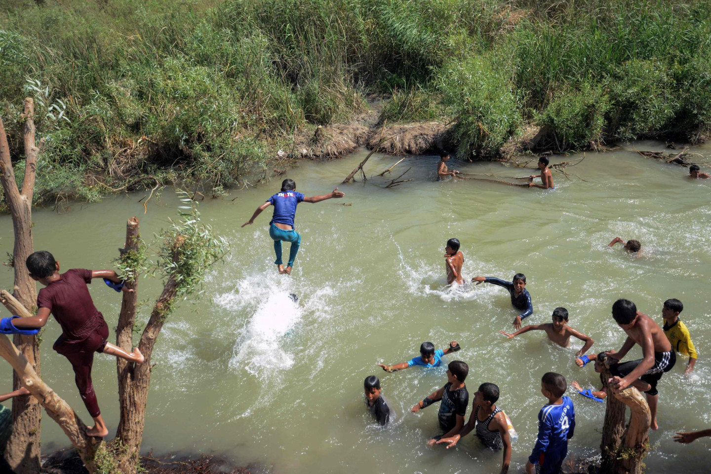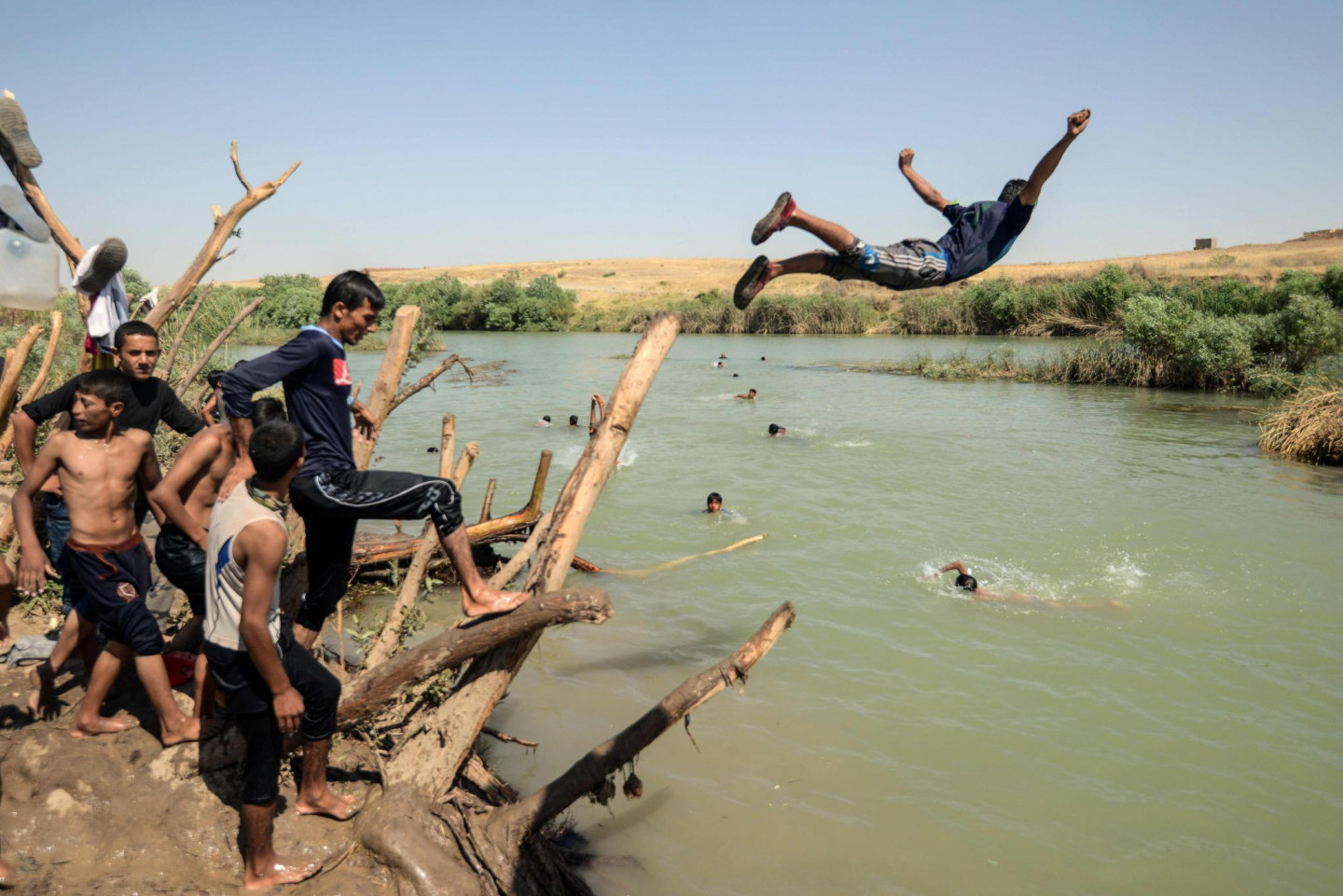 Netālu no Mosula pārvietoto iedzīvotāju nometnes atrodas upe, kurā bērni ikdienā izpriecājas, lecot ūdenī un kopīgi peldot. Tikmēr netālu Irākas spēki karo pret teroristisko grupējumu "Islāma valsts".