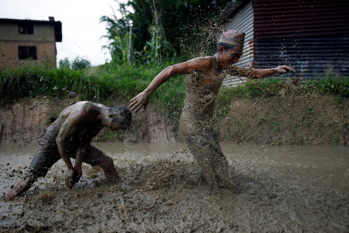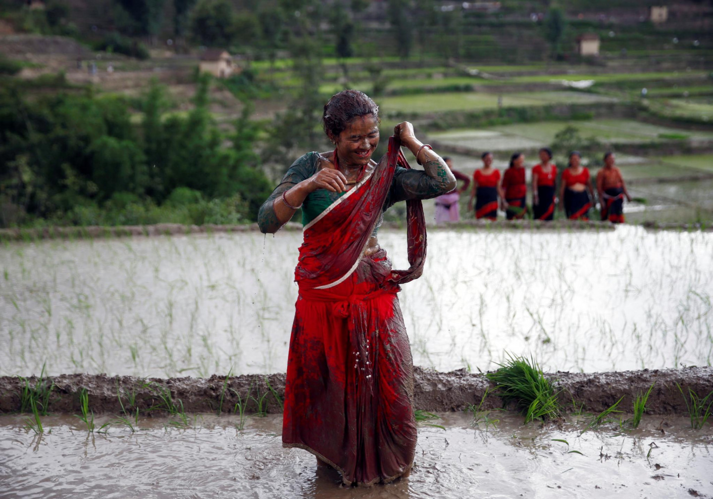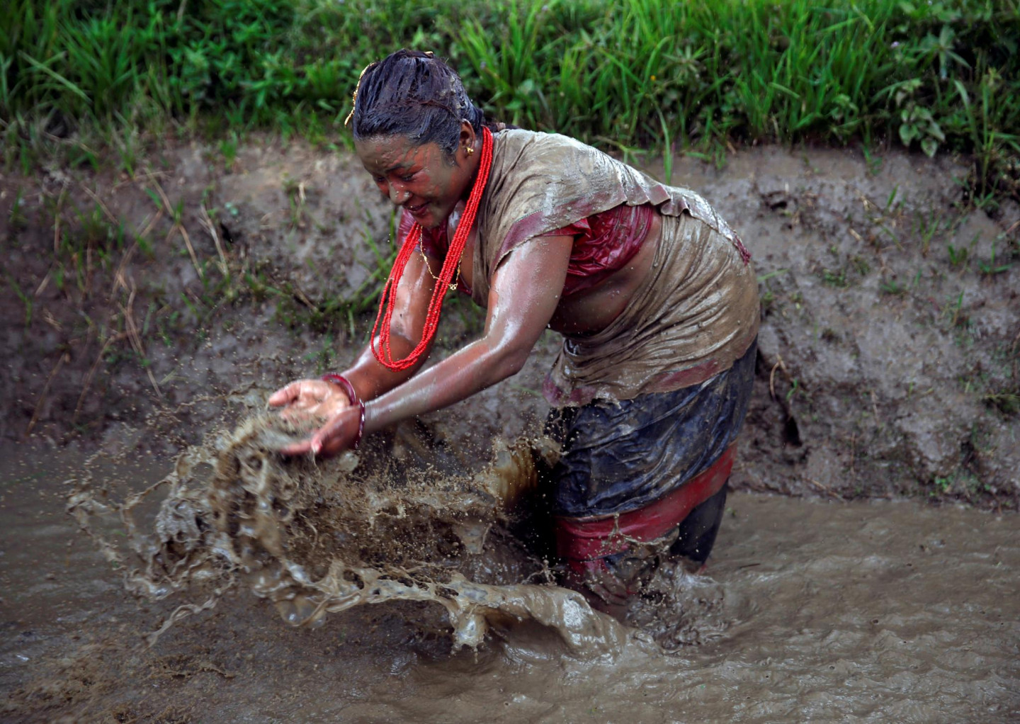 Dubļos līdz ausīm - Nepālā priecājas par jauno rīsu sezonas sākumu