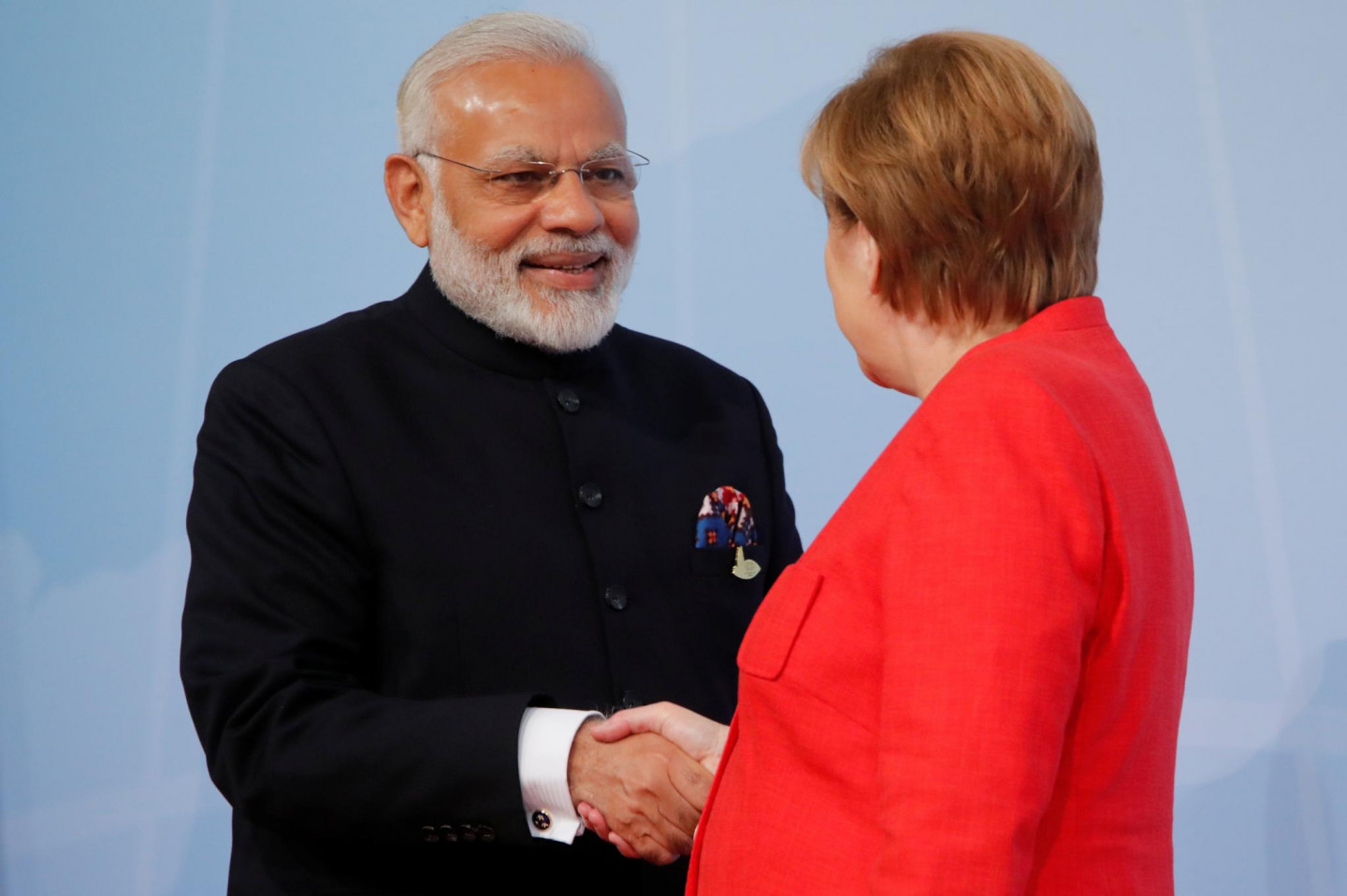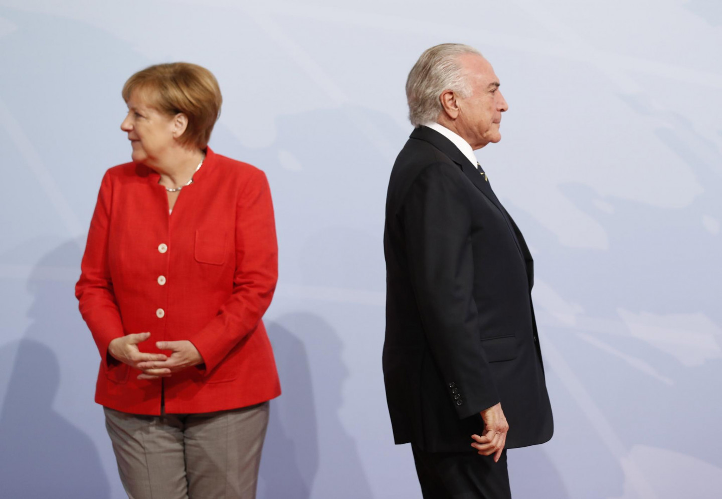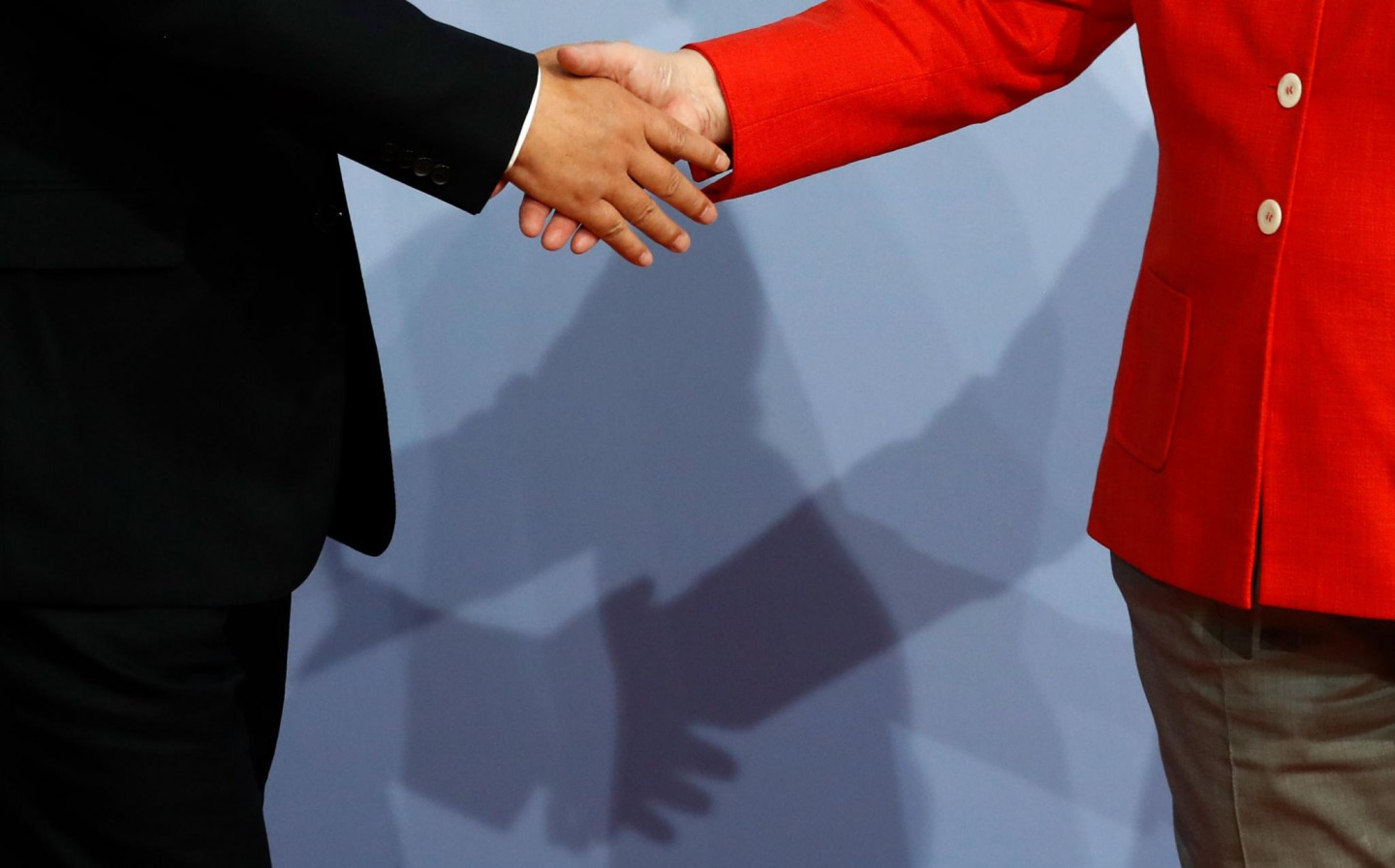 Vācijas kanclere Angela Merkele piektdien devusies uz Hamburgu, kur sagaidījusi G20 samita dalībniekus.