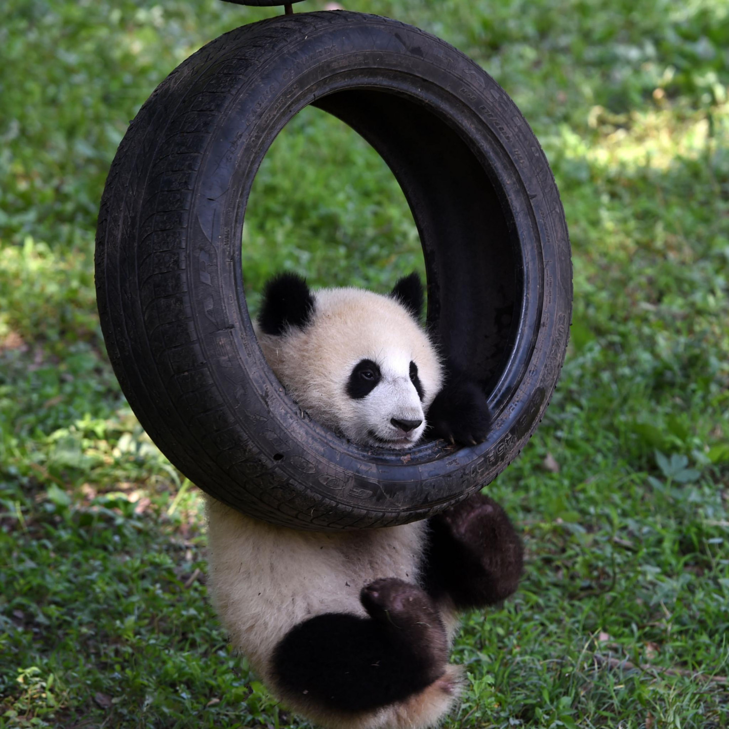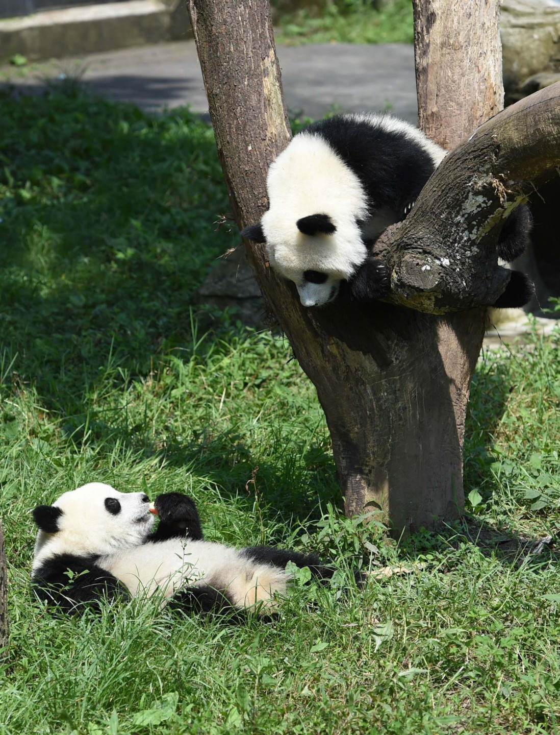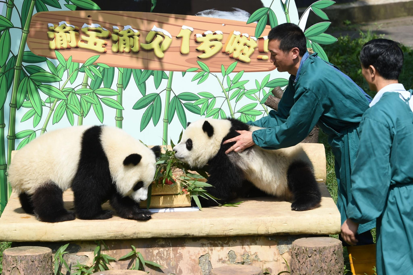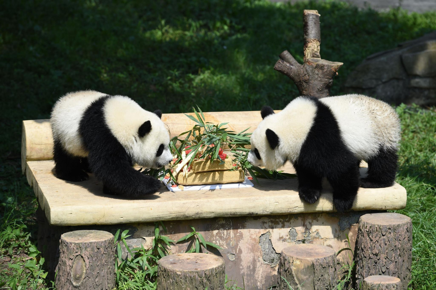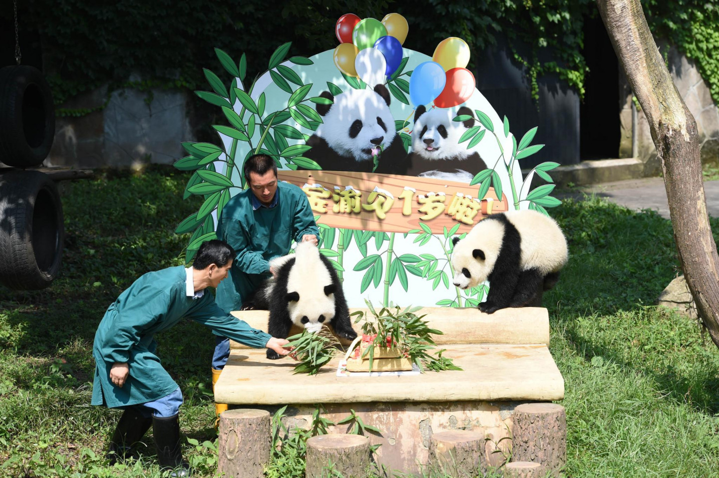 Divi pandu mazuļi Ķīnas zooloģiskajā dārzā šodien nosvinējuši savu pirmo jubileju. Par godu skaistajam notikumam abiem mīluļiem sagādāta pat svētku torte.