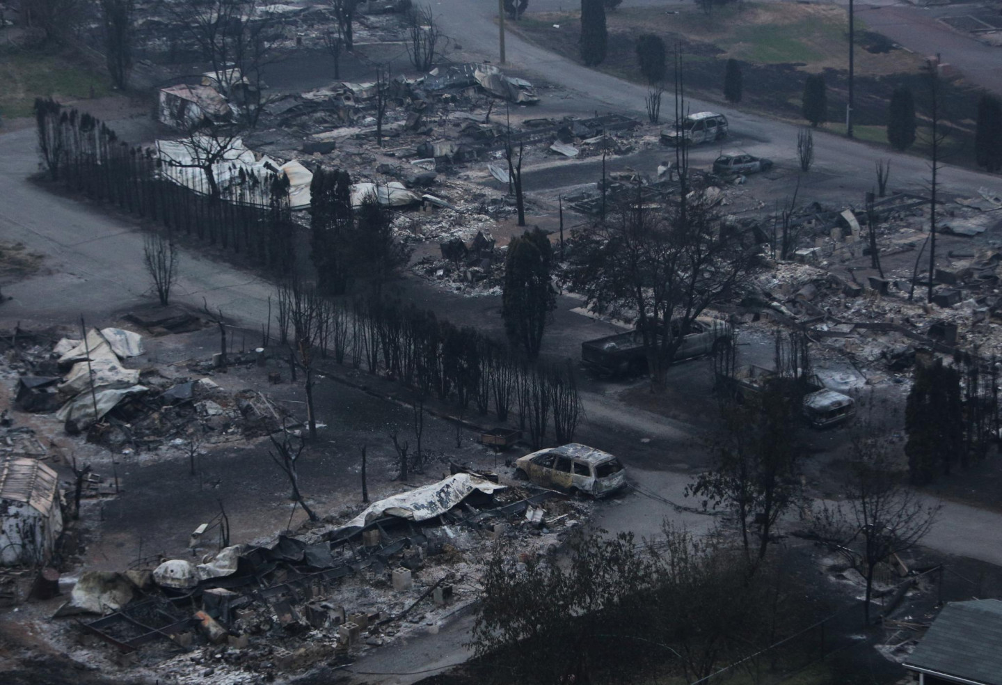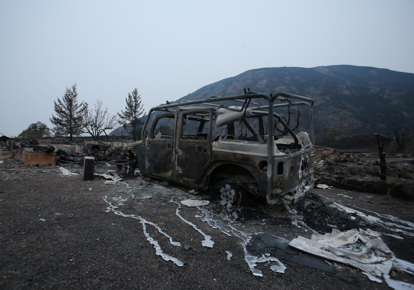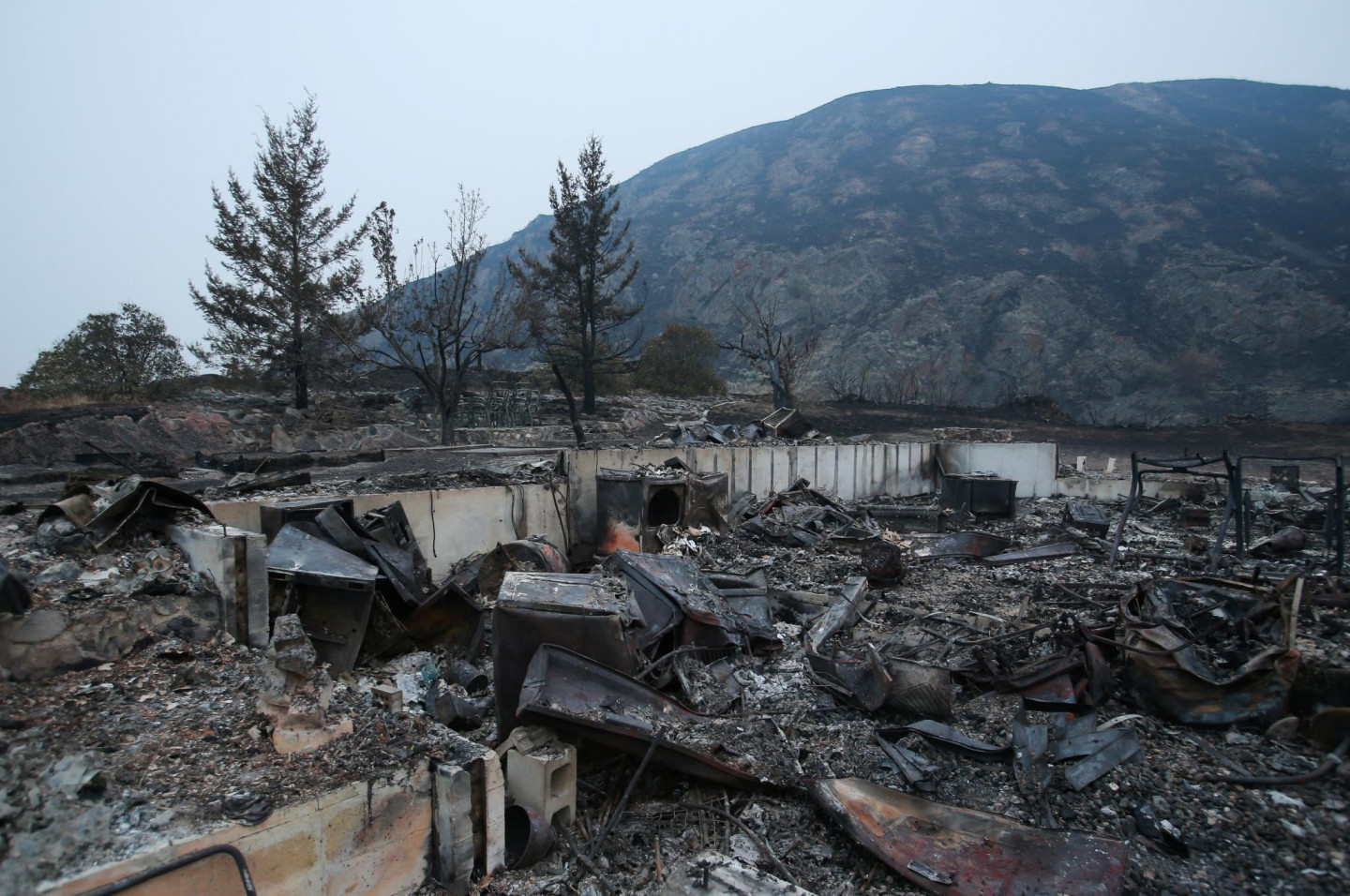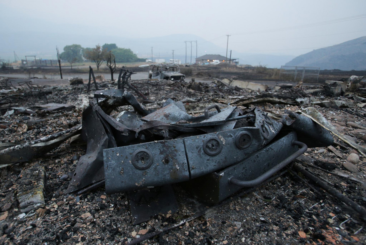 Fotogrāfi iemūžinājuši, kā izskatās treileru parks Kanādā, kuru izpostījuši meža ugunsgrēki.
