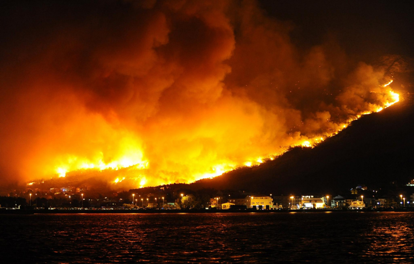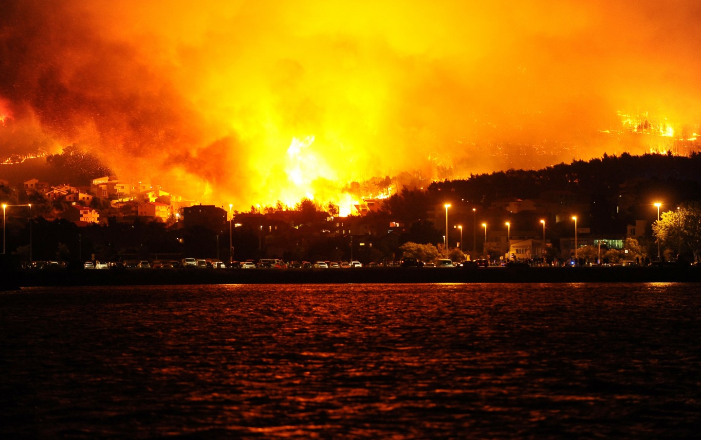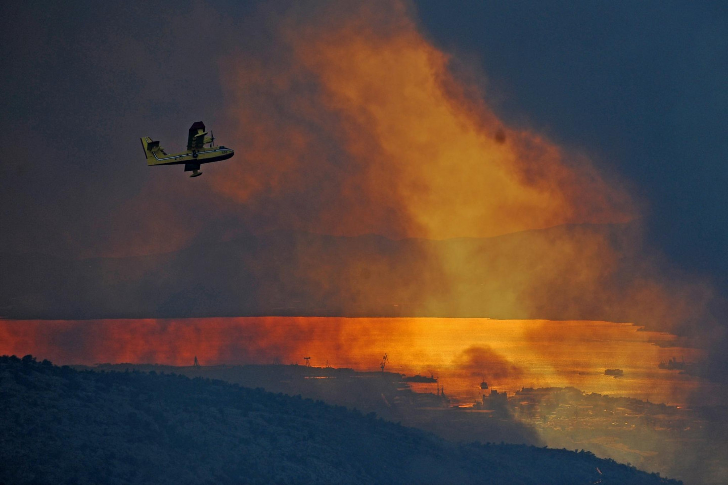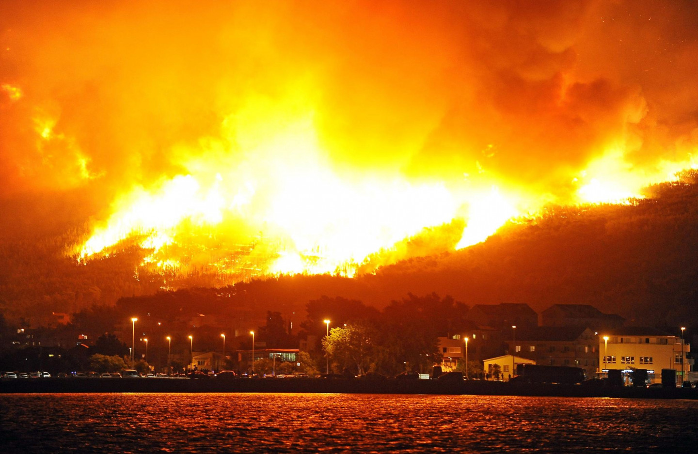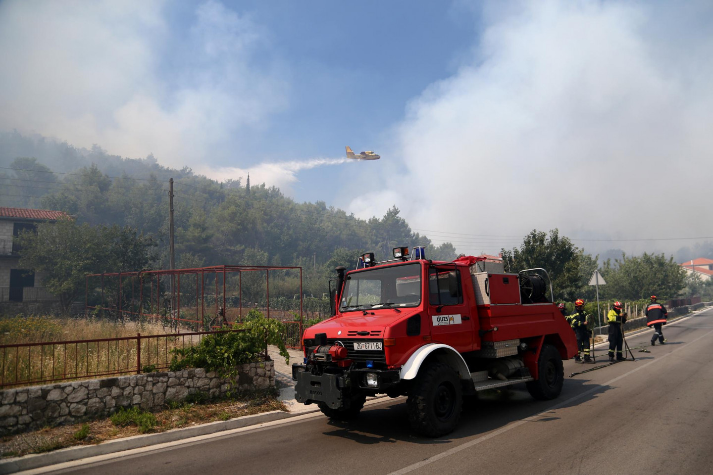 Adrijas jūras piekrastes valstī Horvātijā ugunsdzēsēji turpina cīnīties ar ugunsgrēkiem. Pirmdienas vakarā liesmas izplatījās valsts otras lielākās pilsētas Splitas piepilsētās. Vietējie mediji ziņoja, ka nācies evakuēt cilvēkus no viena iepirkšanās centra, un sadegušas vairākas automašīnas. Valsts telekanāls HRT vēstīja, ka aizdegusies pilsētas atkritumu izgāztuve.