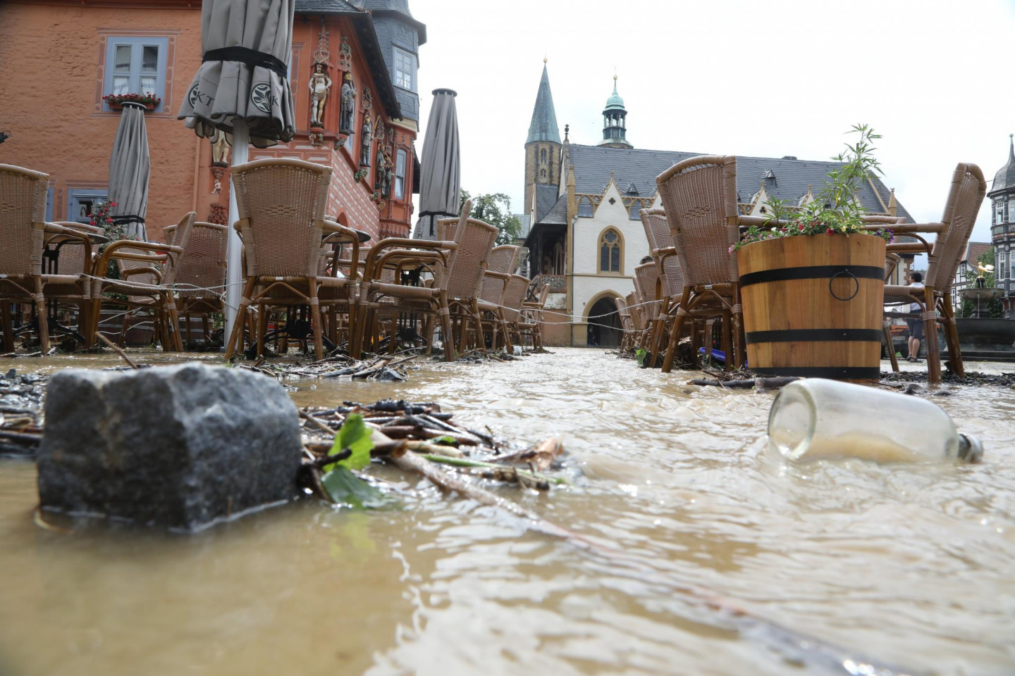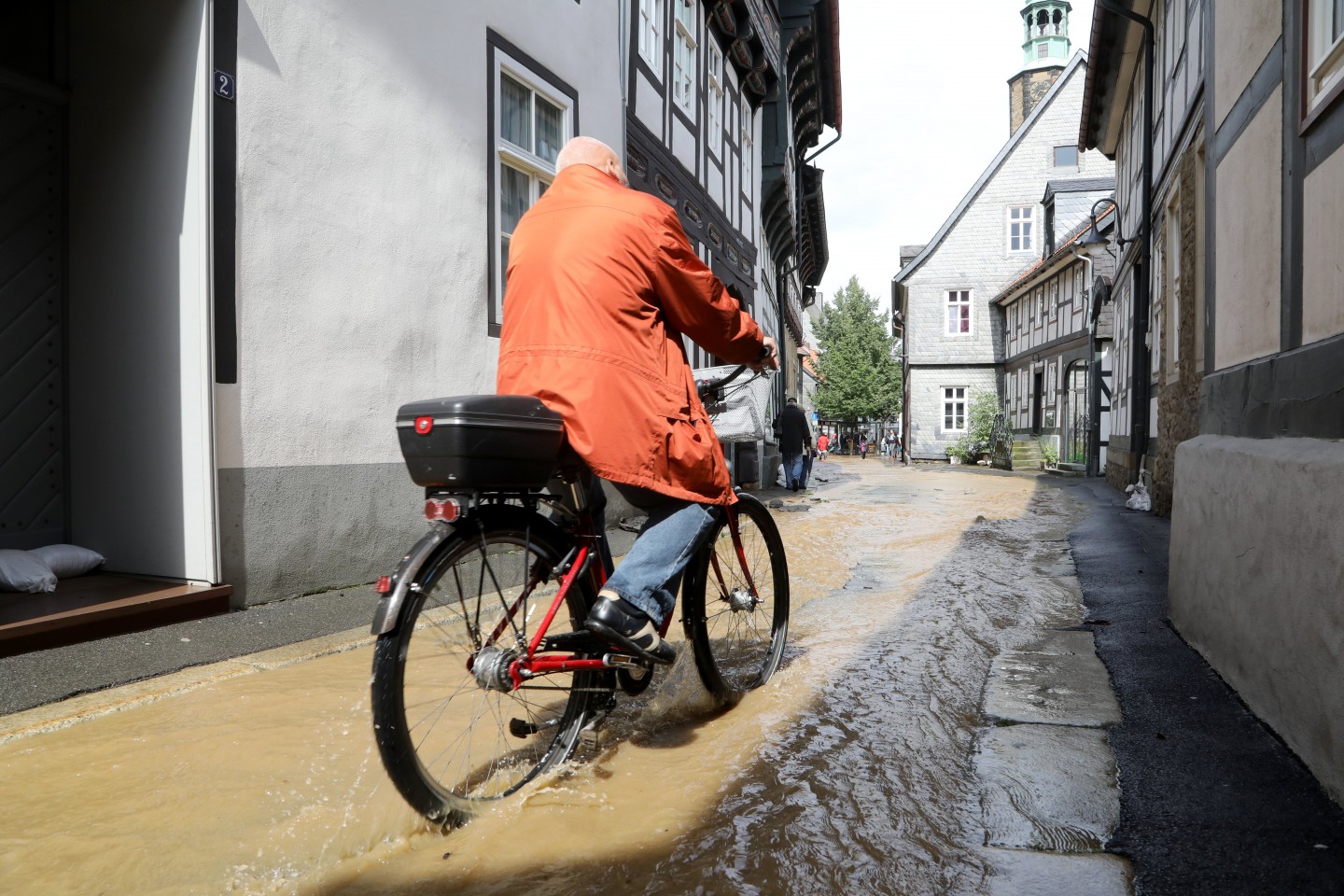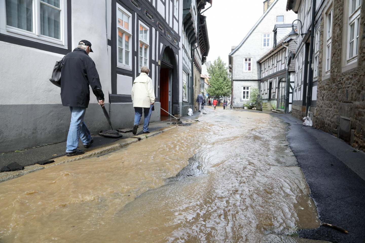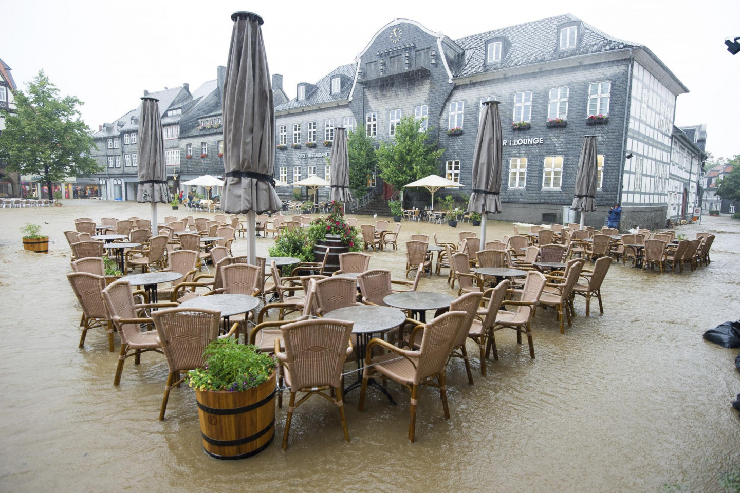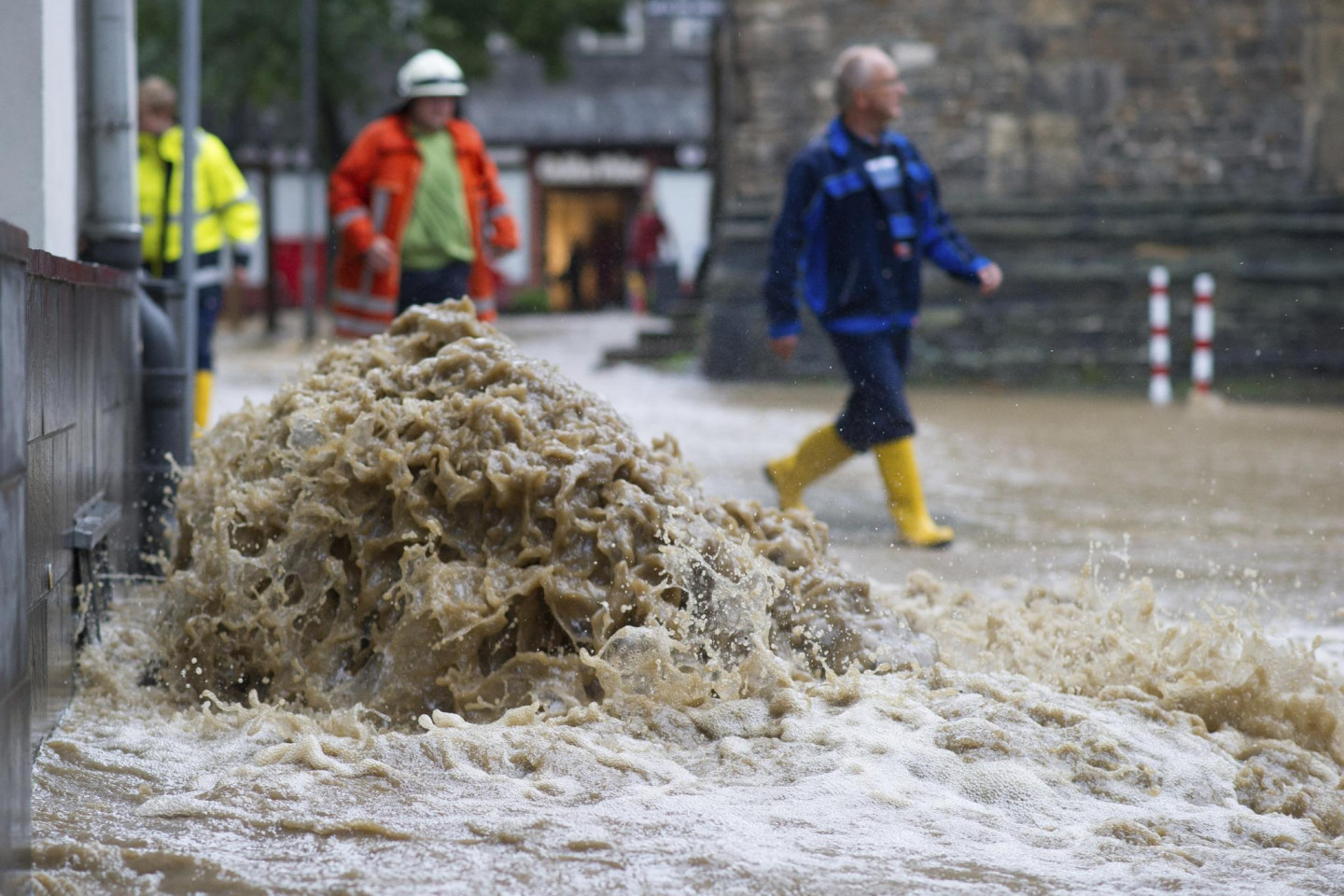 Pēc spēcīgām lietusgāzēm, trešdien applūdušas vairākas Vācijas pilsētas. Atsevišķos reģionos izsludināts ārkārtas stāvoklis.