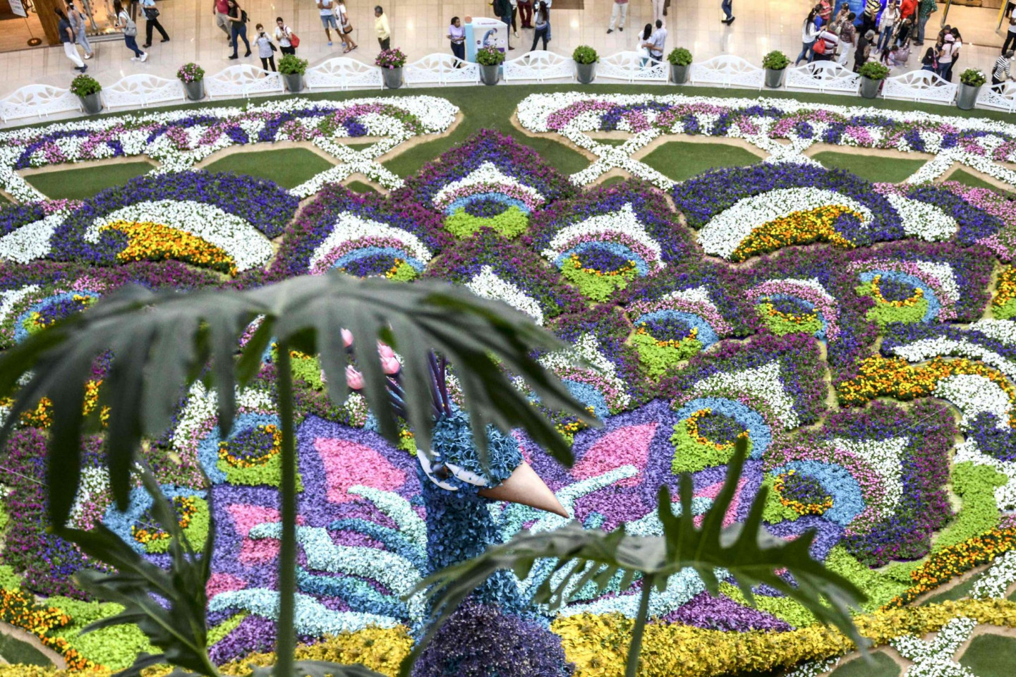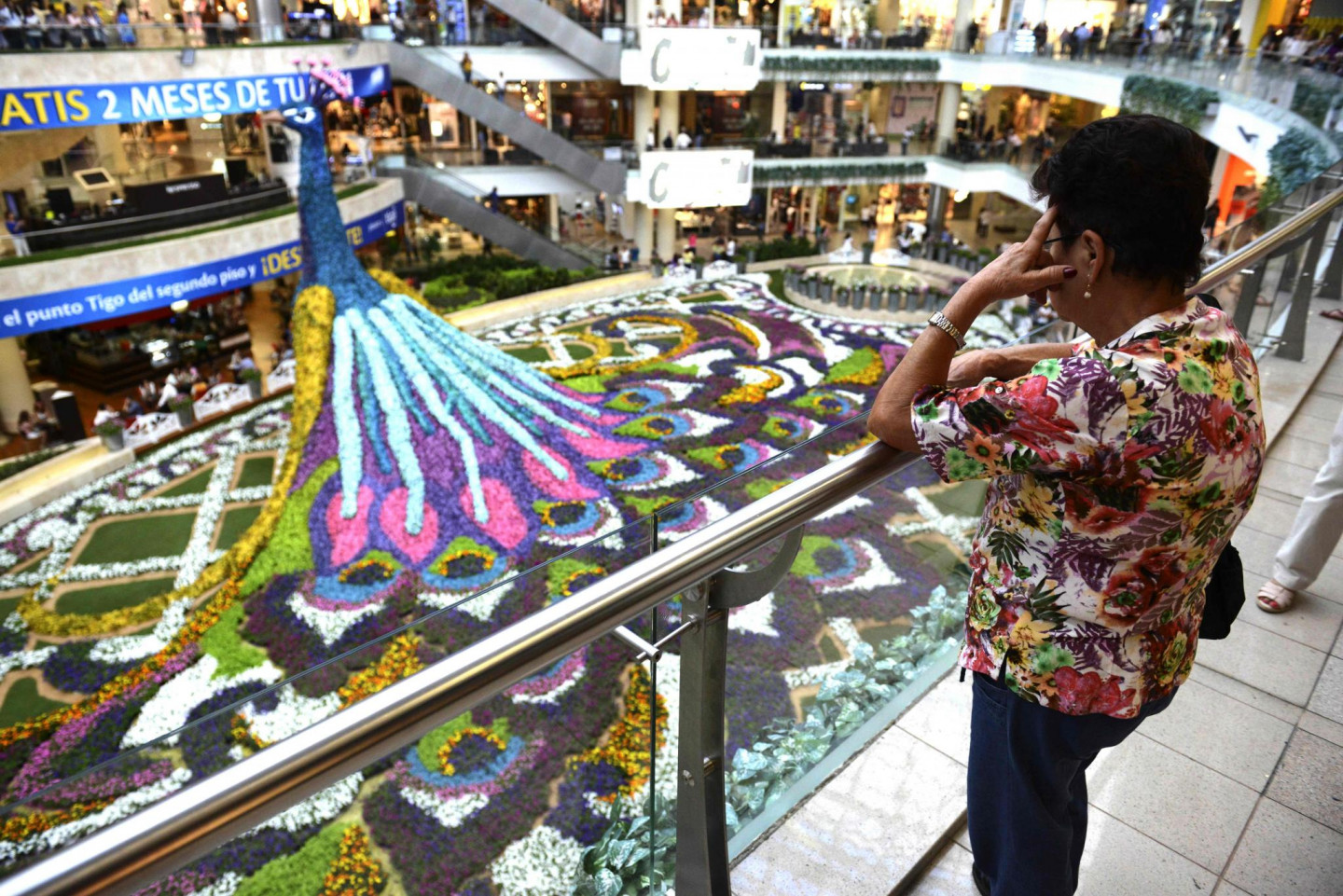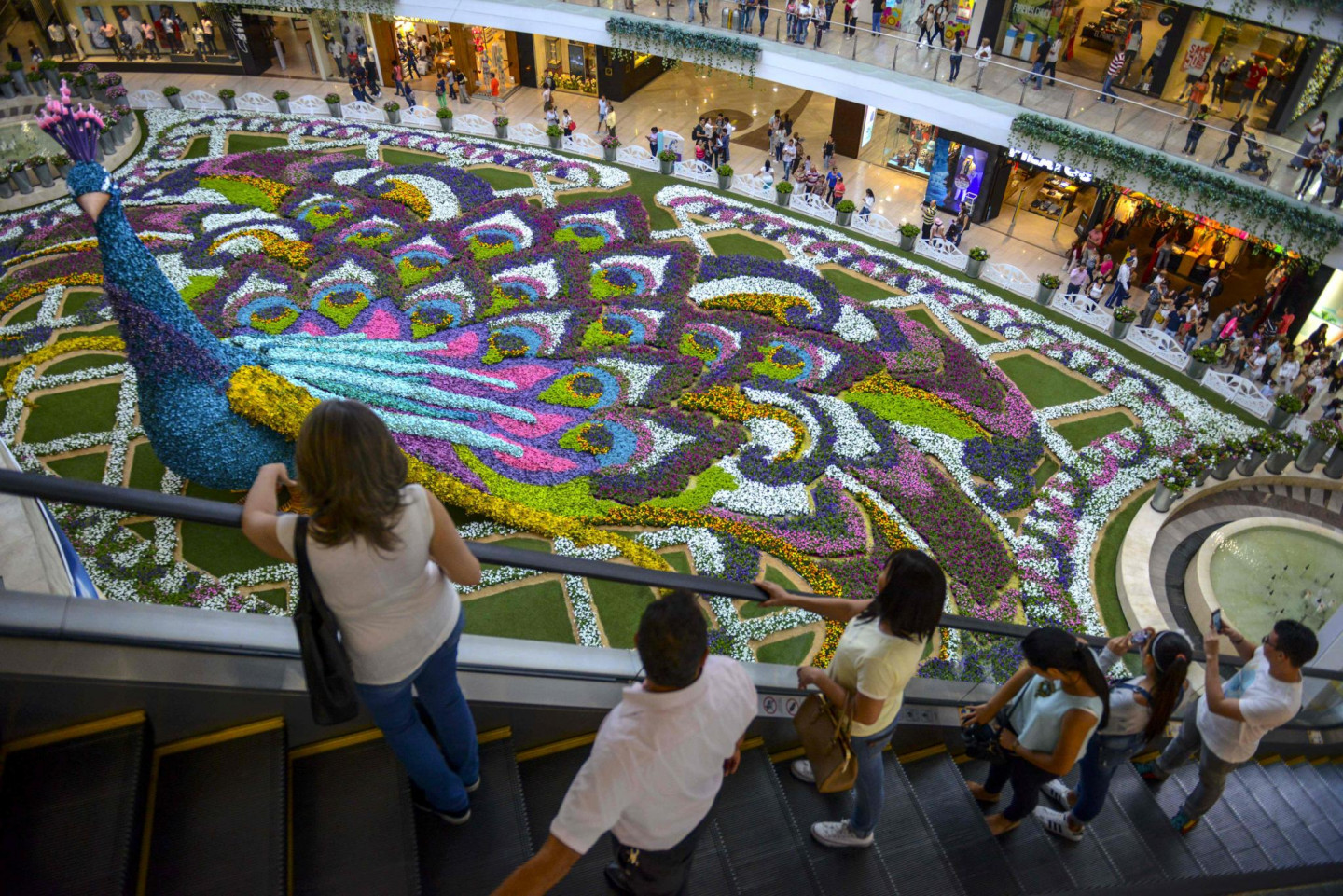 Kādā Kolumbijas lielveikalā tapusi neparasta mākslas instalācija- 12 metrus augsts pāvs, kas veidots no ziediem.