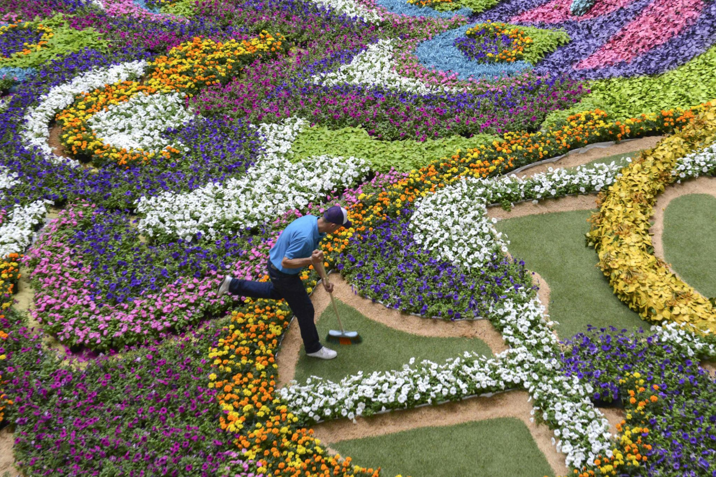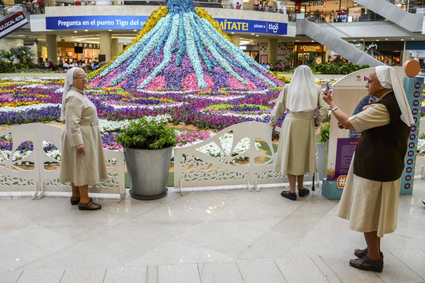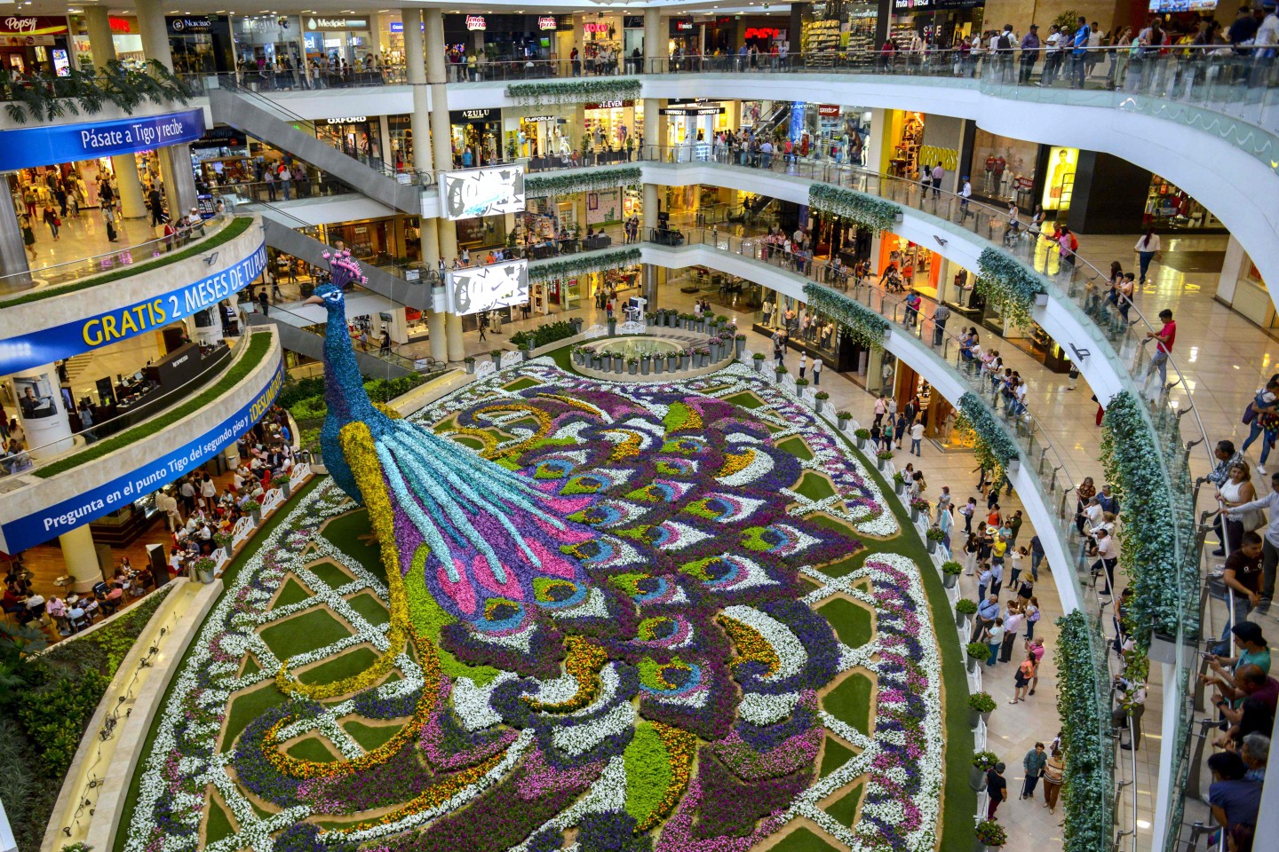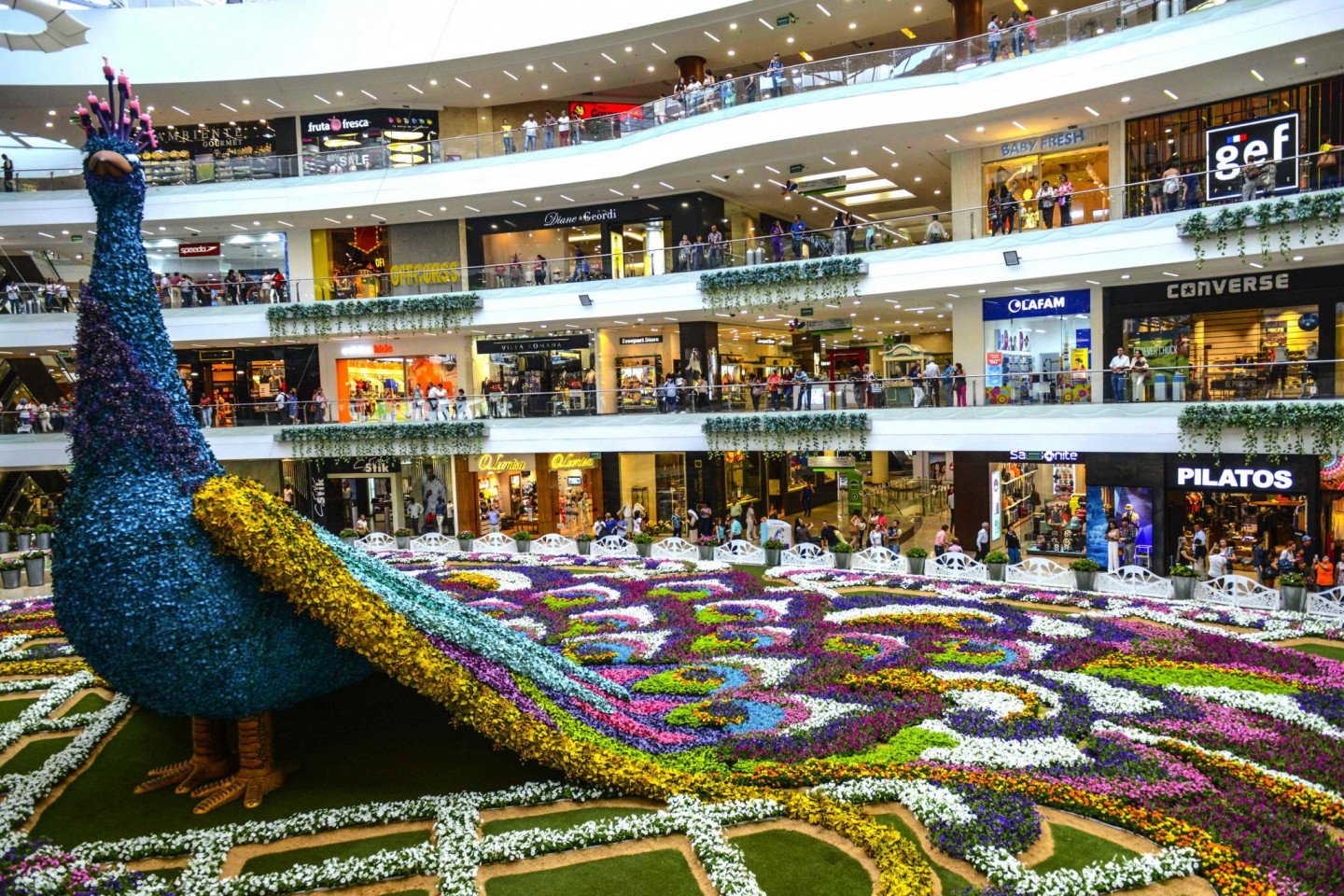 Kādā Kolumbijas lielveikalā tapusi neparasta mākslas instalācija- 12 metrus augsts pāvs, kas veidots no ziediem.