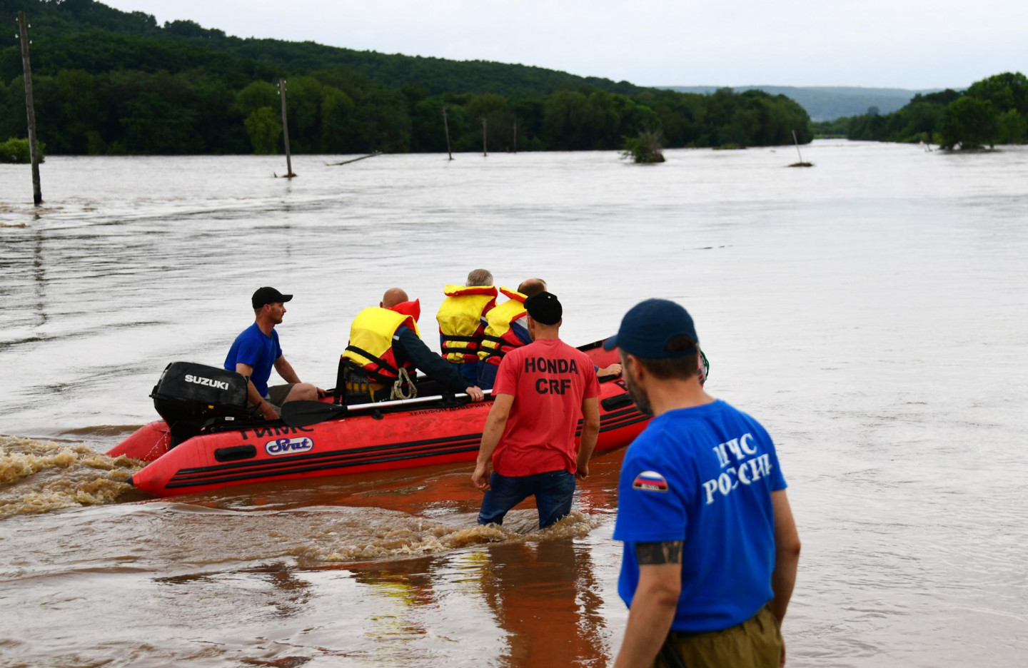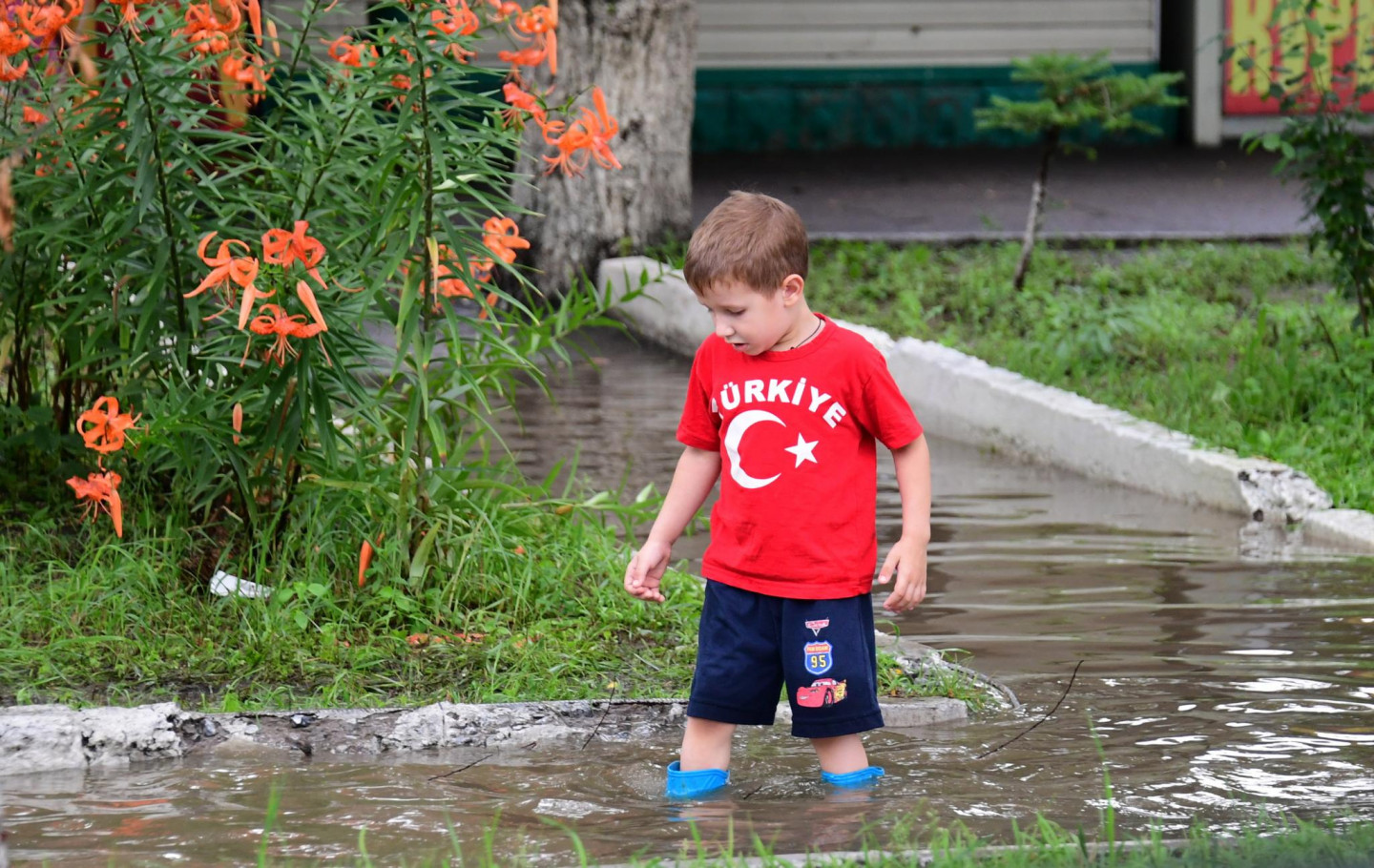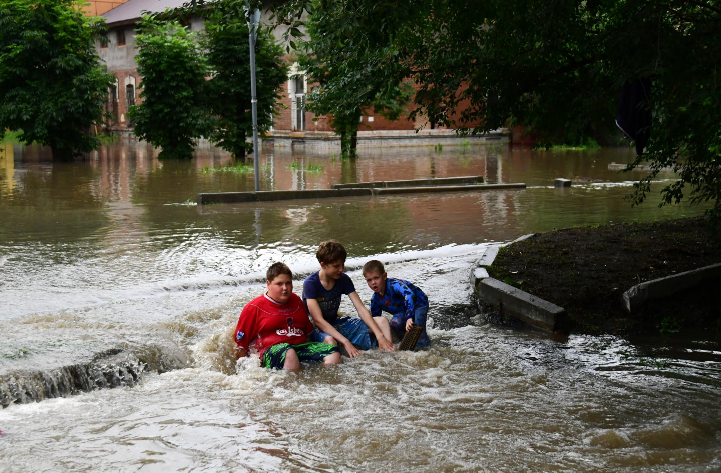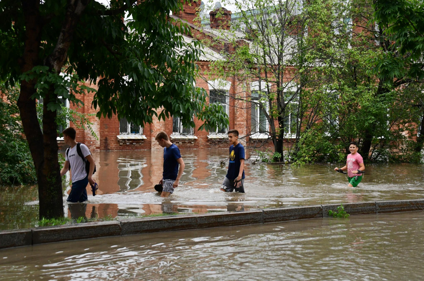 Krievijas austrumu daļā šodien piedzīvotas pamatīgas lietusgāzes, kā rezultātā ielas burtiski pārvērtušās par upēm.