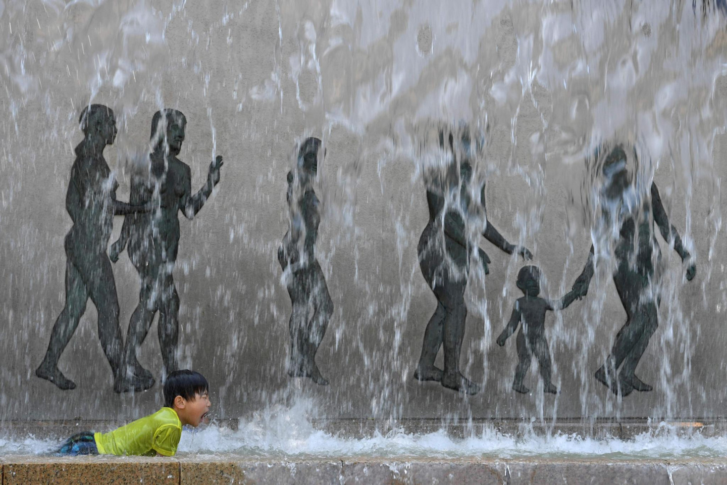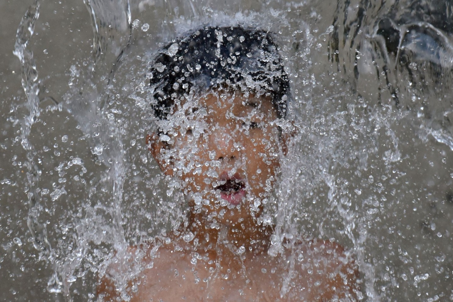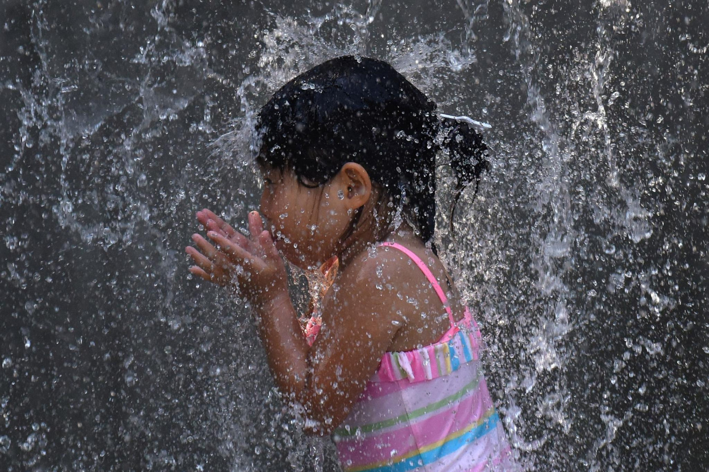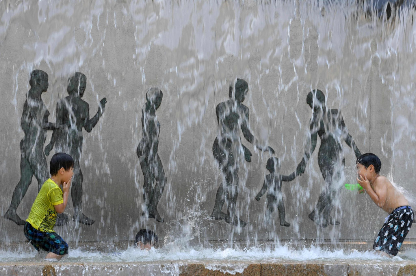 Pamatīga svelme valda arī atsevišķos Japānas reģionos. Piemēram, Tokijā bērni no karstuma veldzējas strūklakās.
