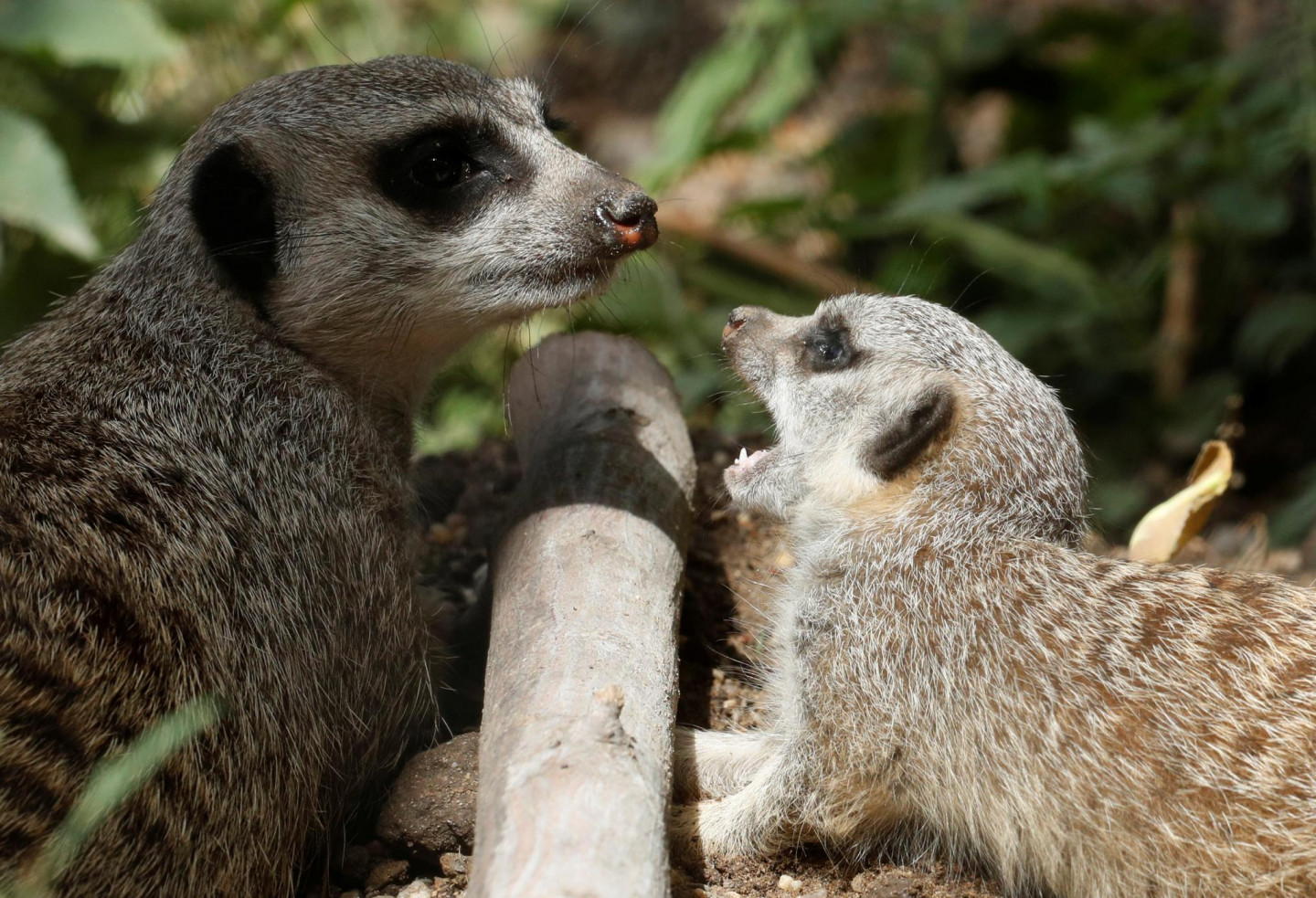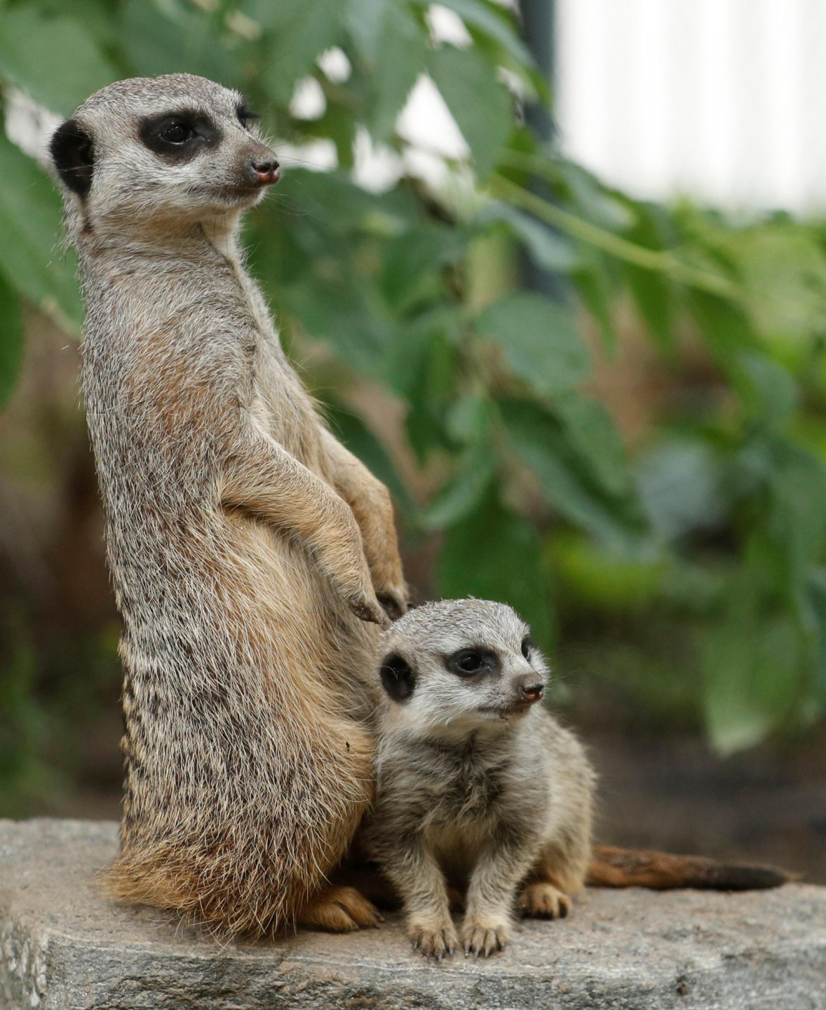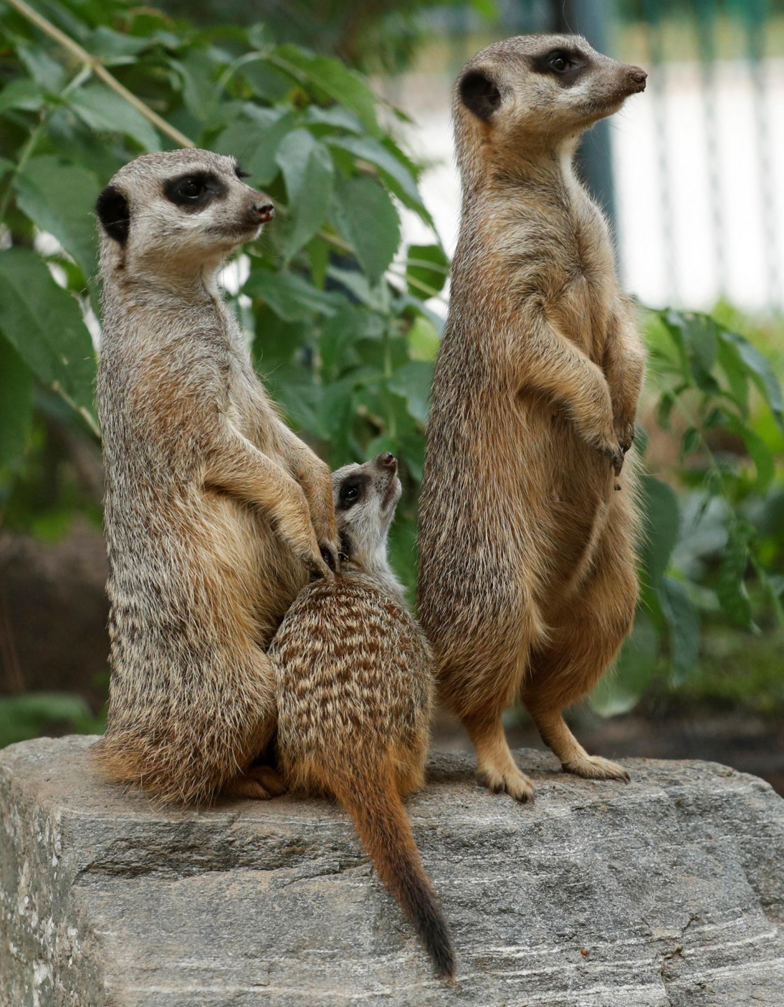 Surikātu ģimenes izklaides zoodārzā Austrijā