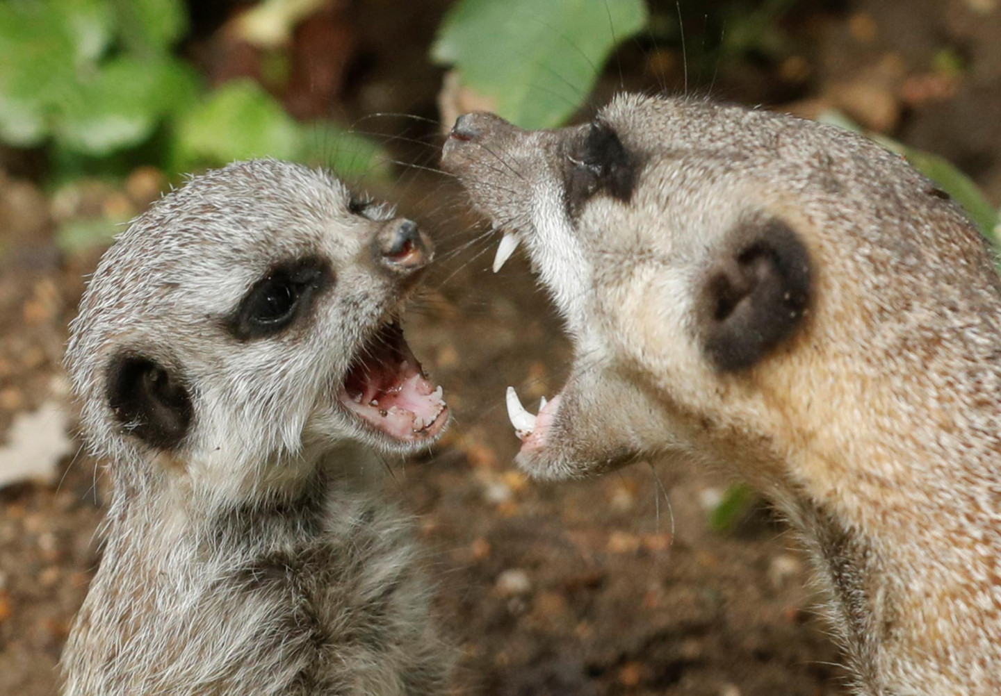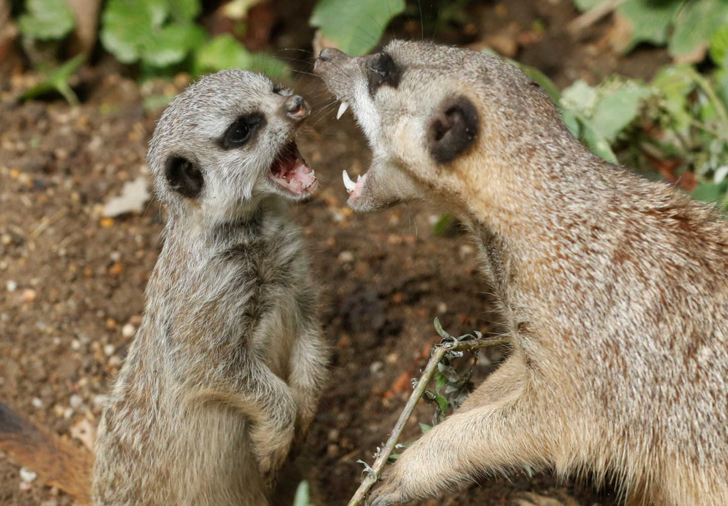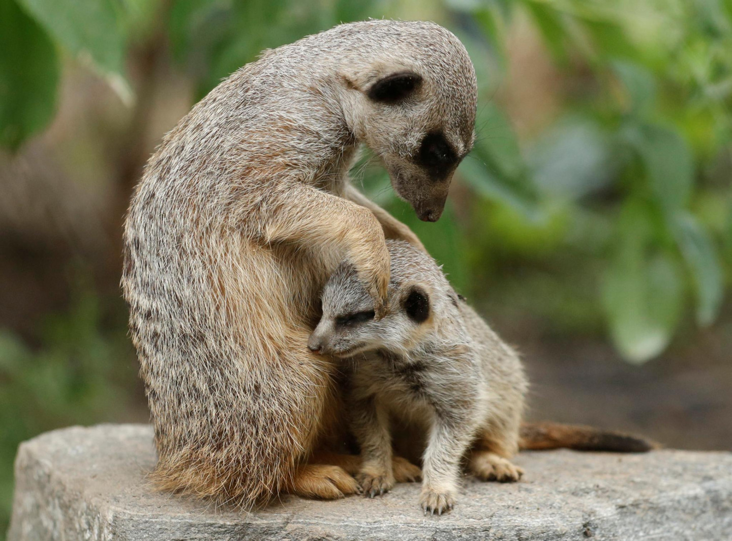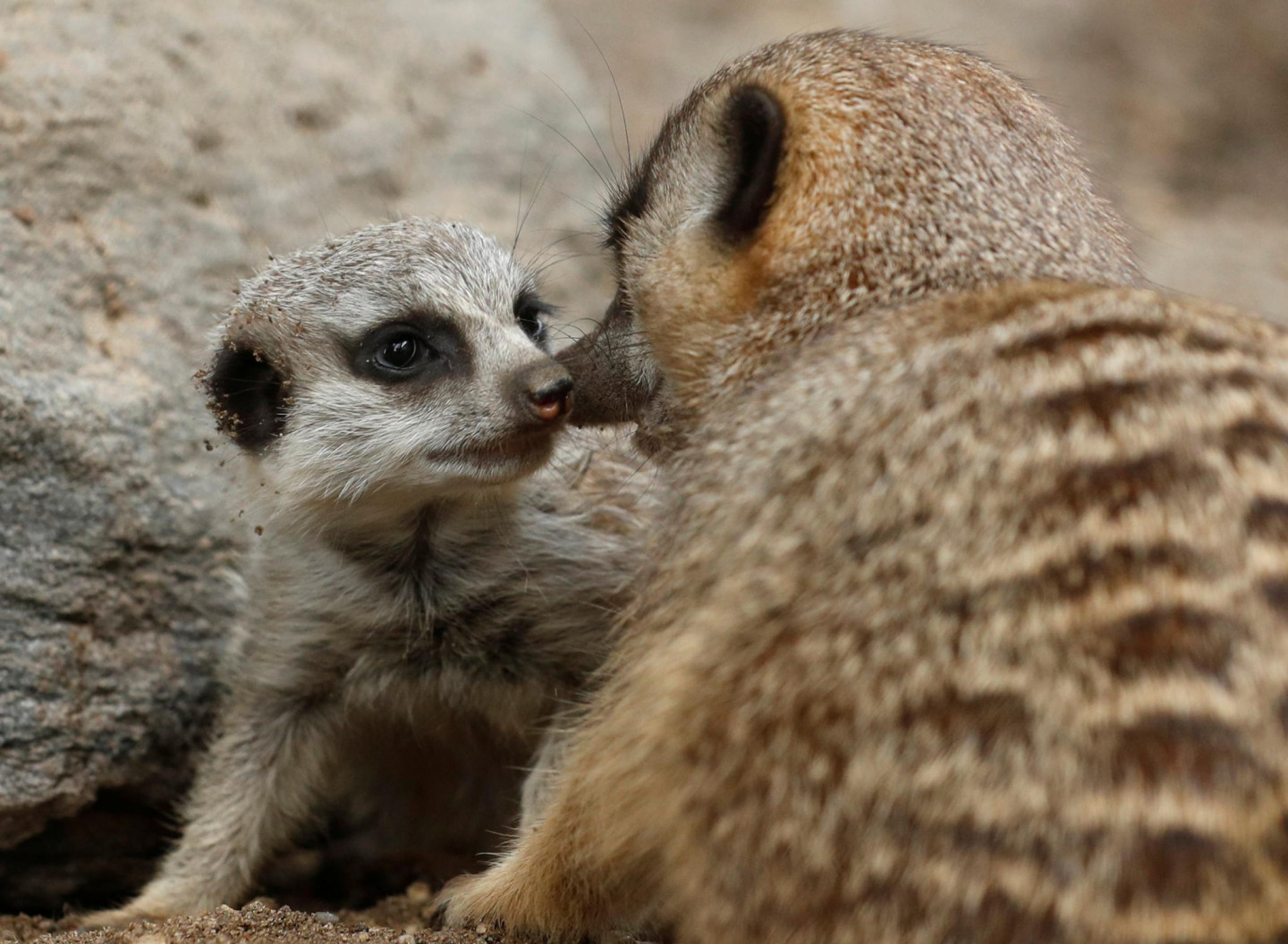 Surikātu ģimenes izklaides zoodārzā Austrijā