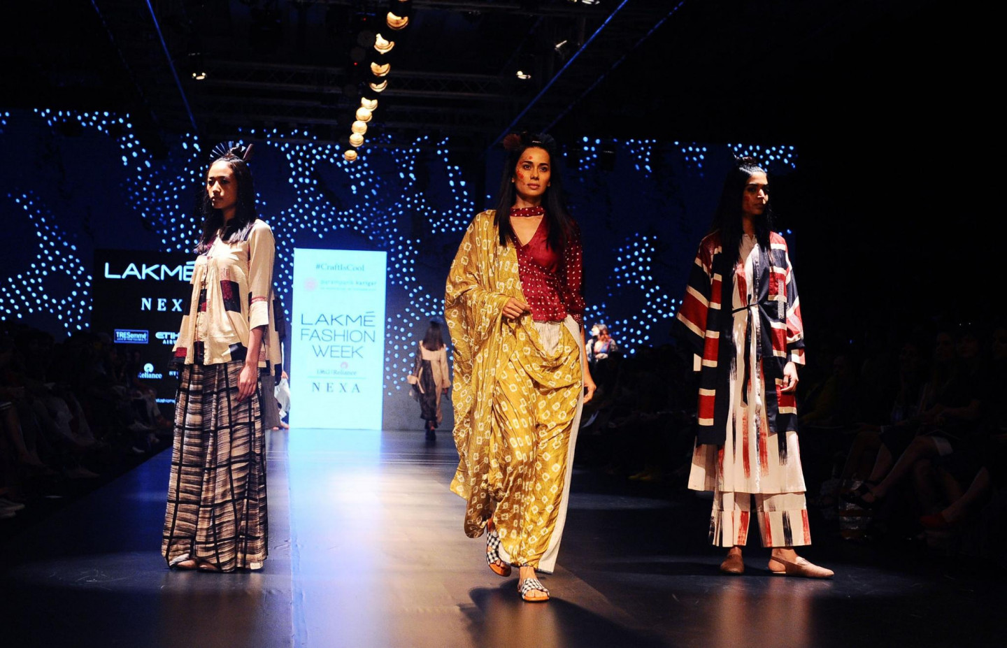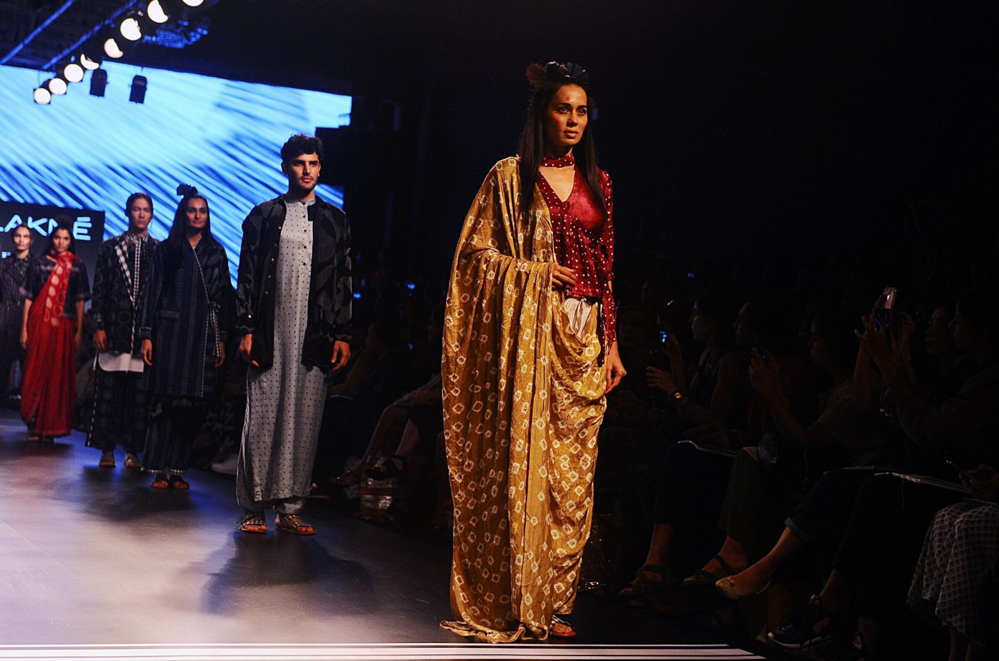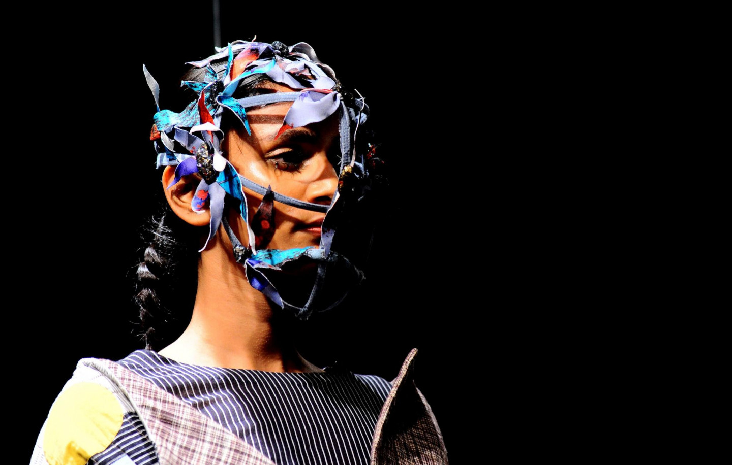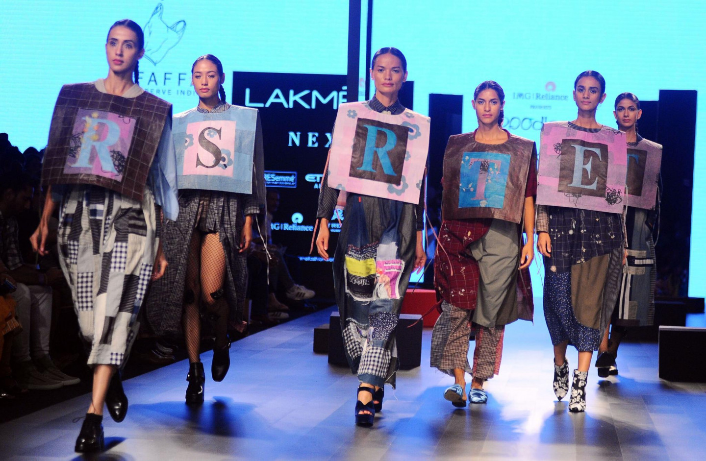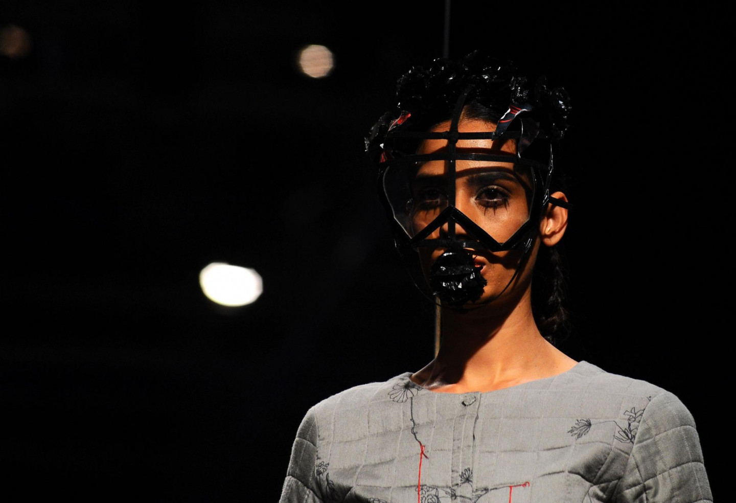 Nesen Indijā notikusi tērpu dizaineru modes skate, kura laikā modeles izrotātas ar drosmīgiem aksesuāriem.