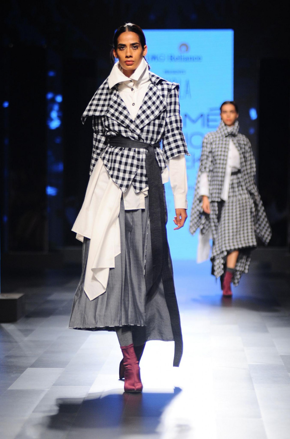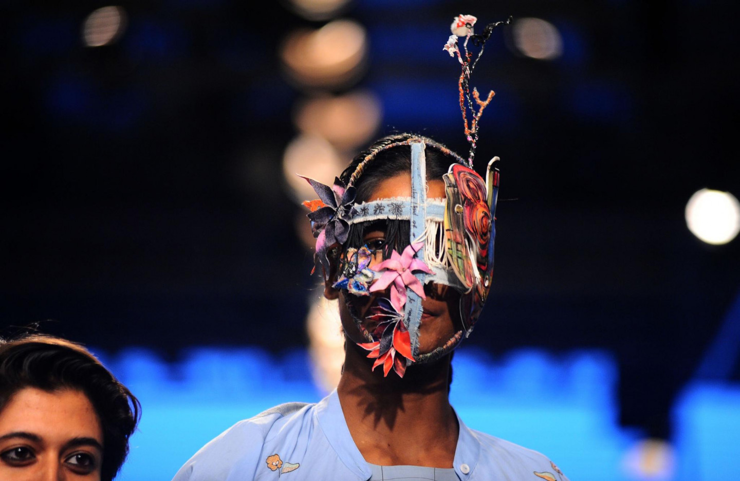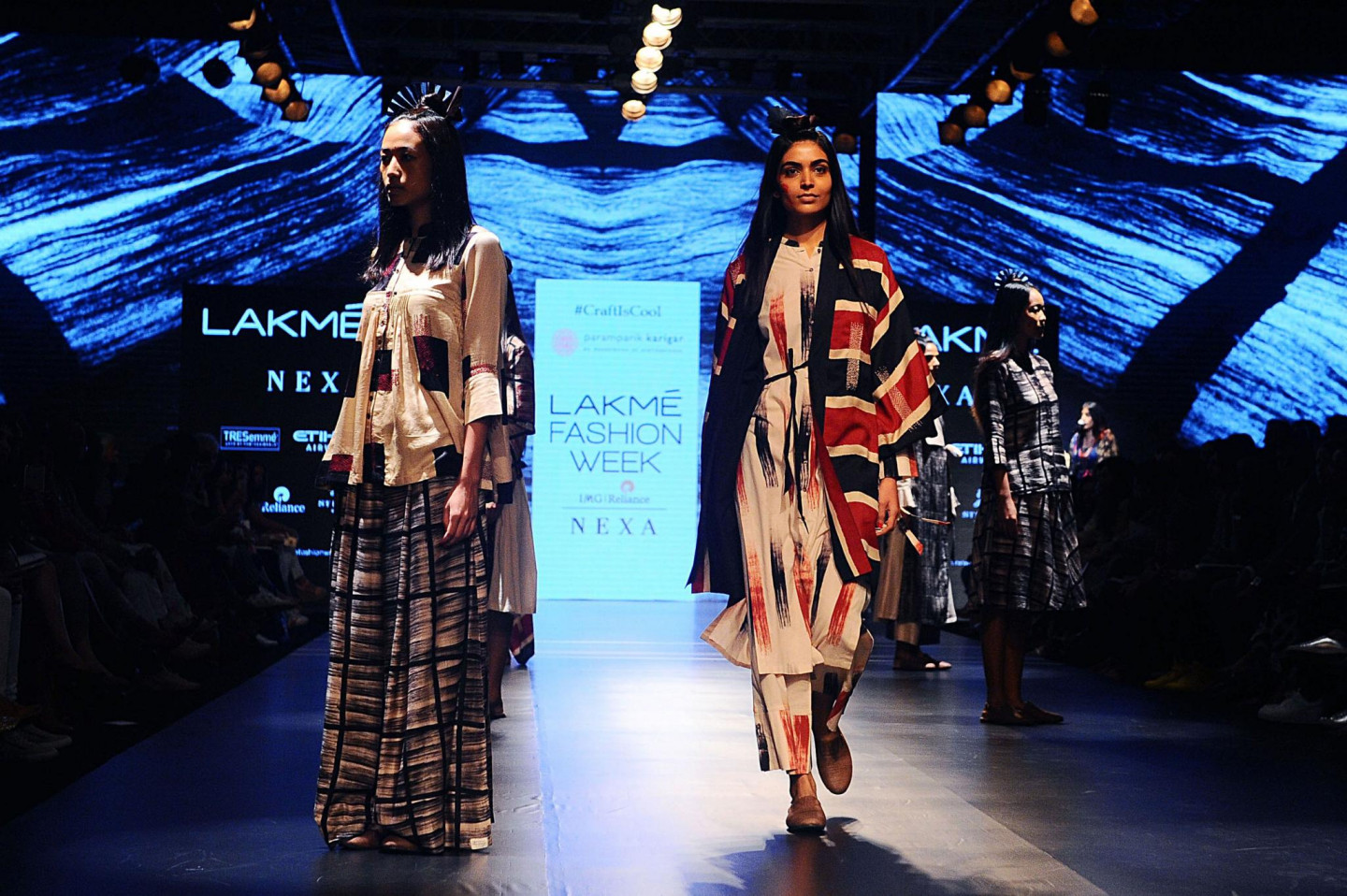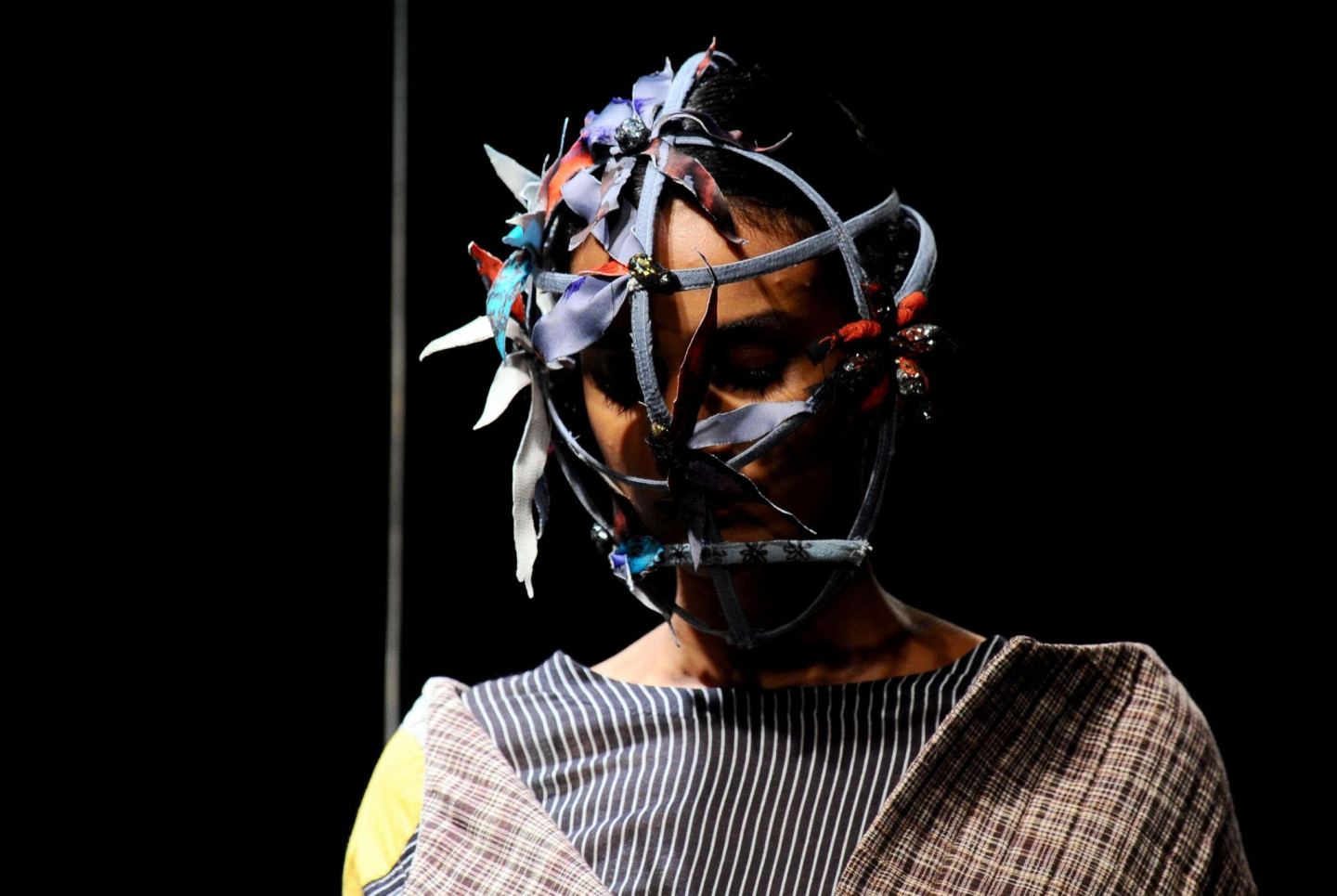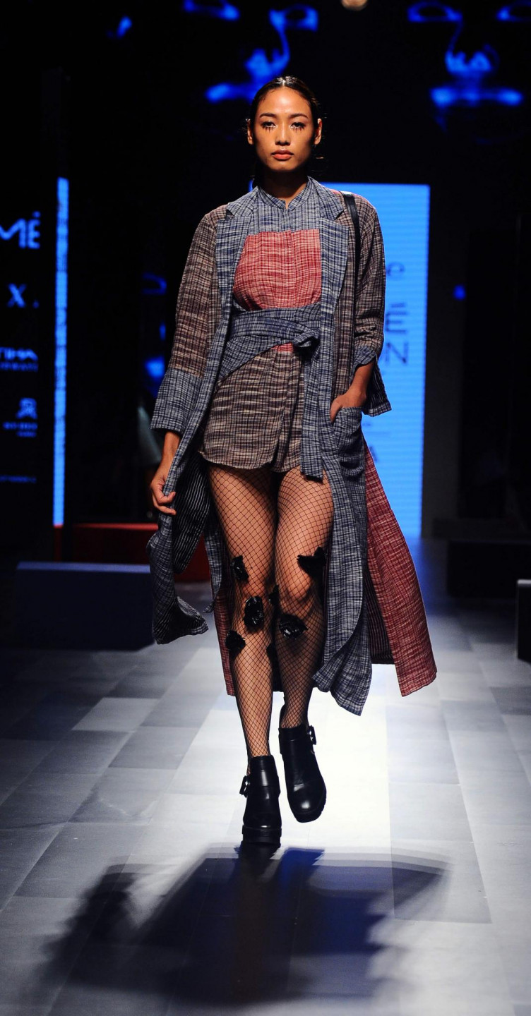 Nesen Indijā notikusi tērpu dizaineru modes skate, kura laikā modeles izrotātas ar drosmīgiem aksesuāriem.
