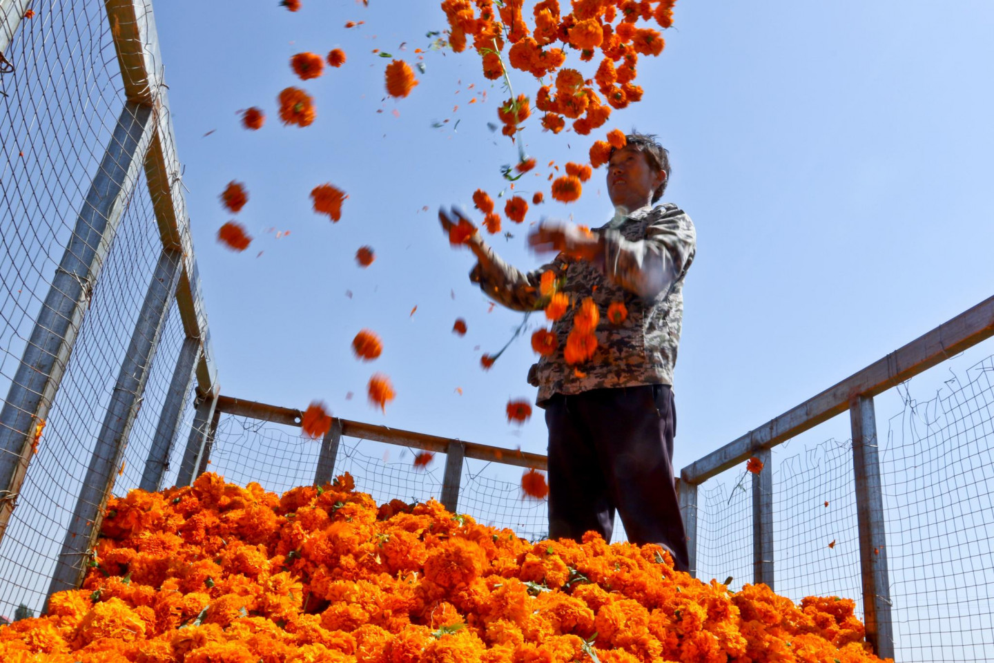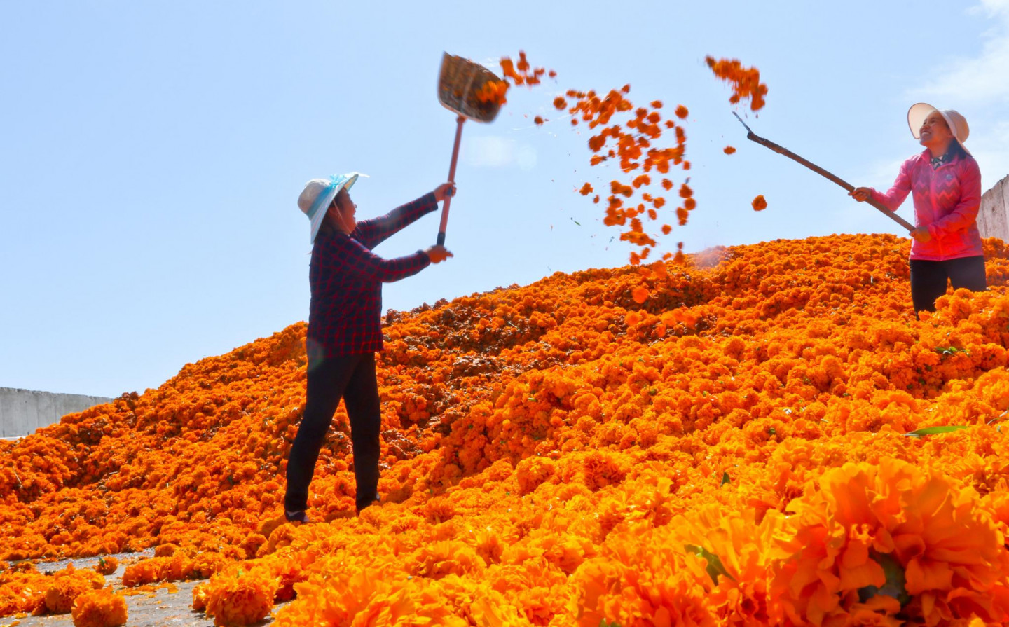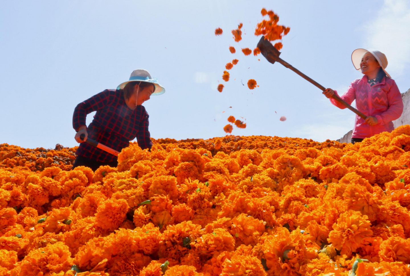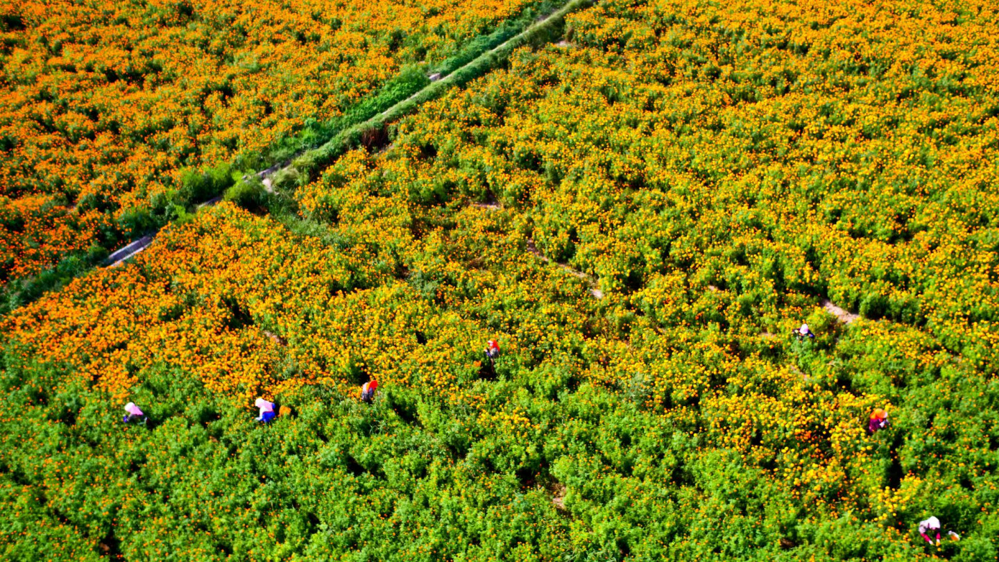 Speciāli apmācīti darbinieki novāc vērtīgos ziedus no plantācijām Ķīnā.