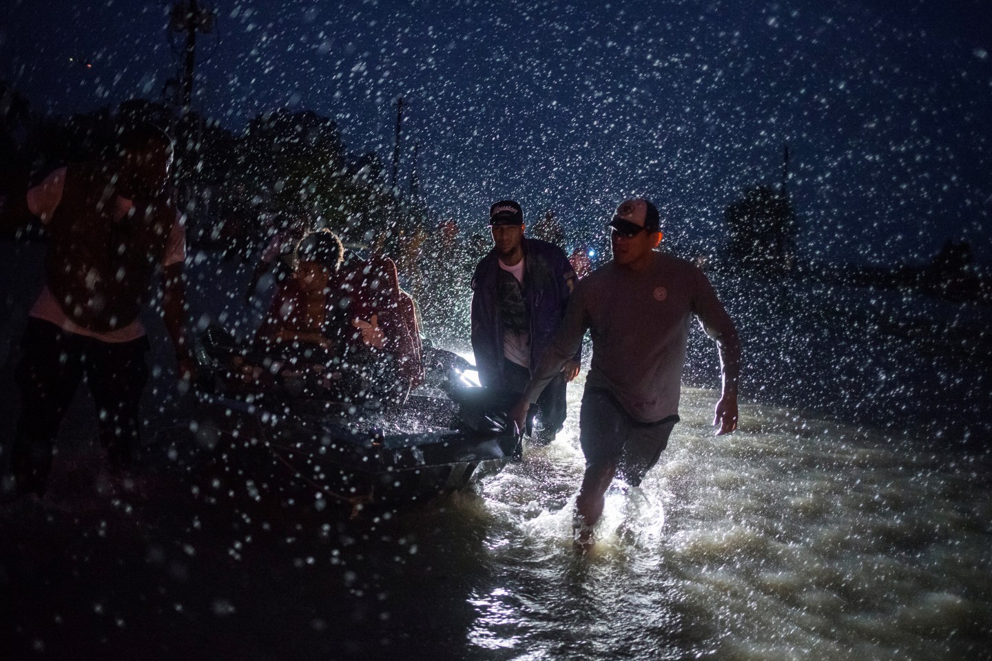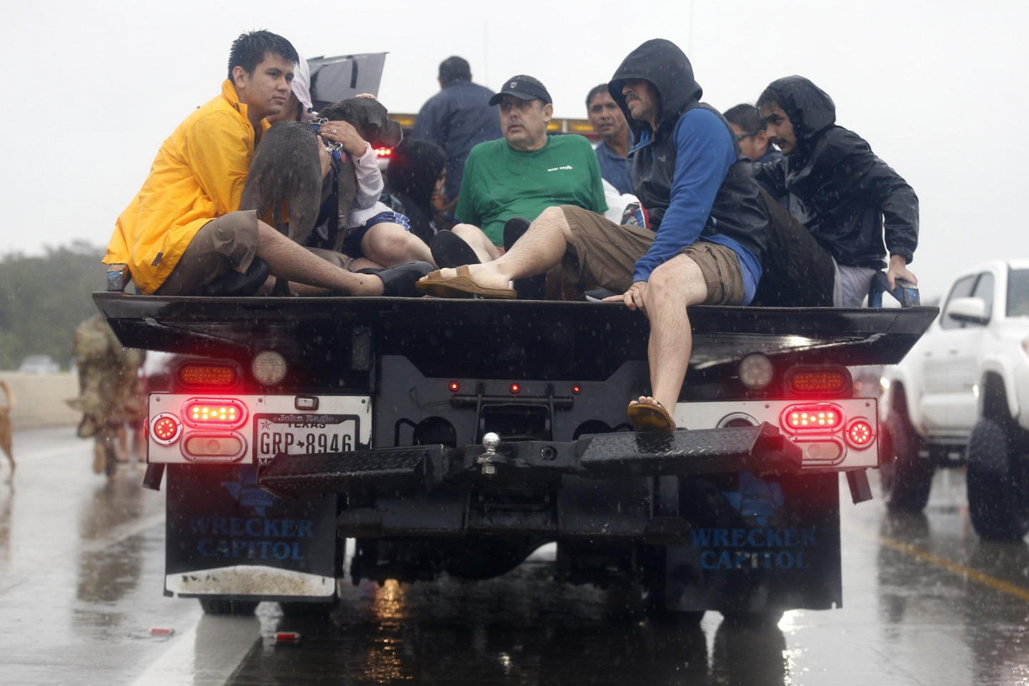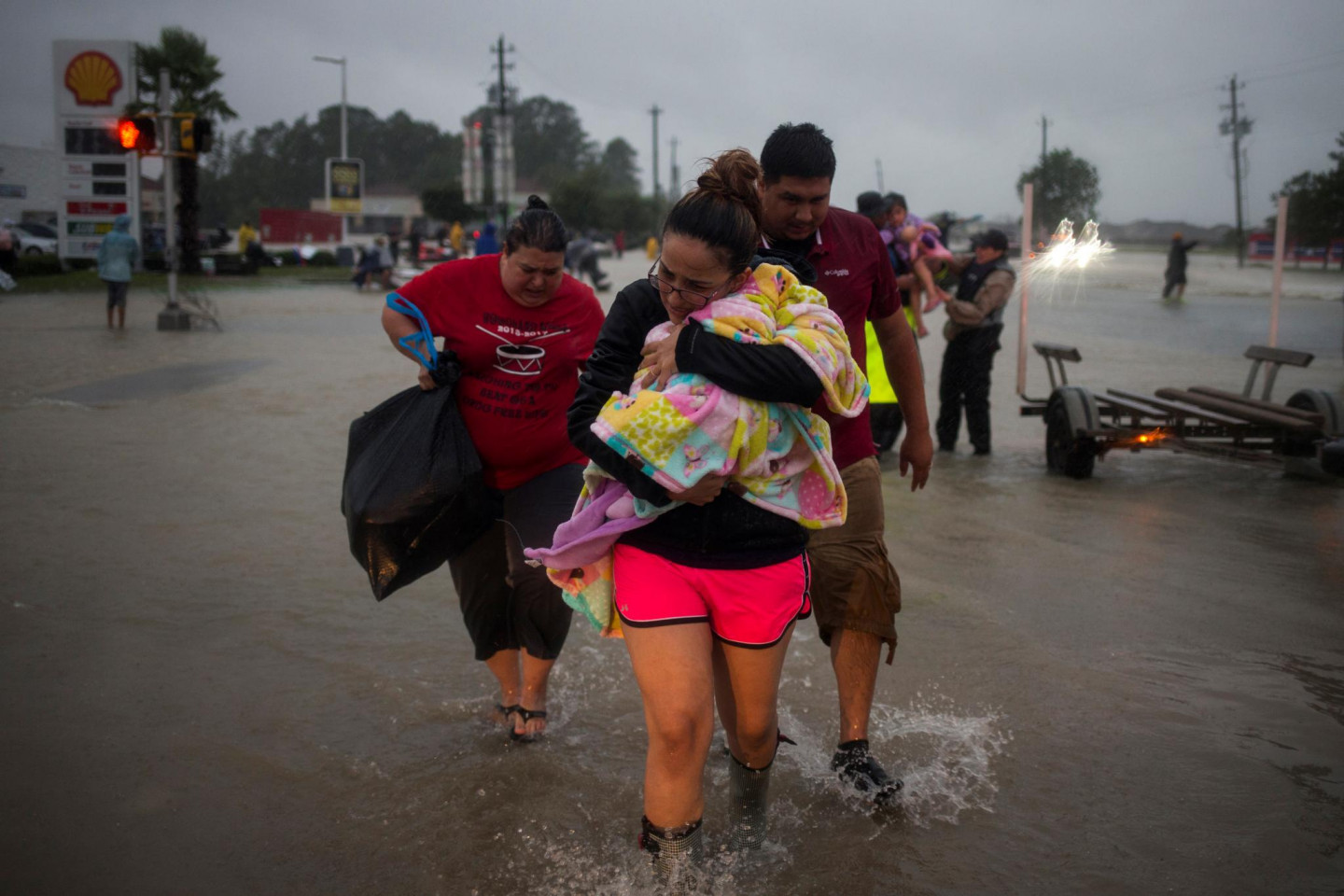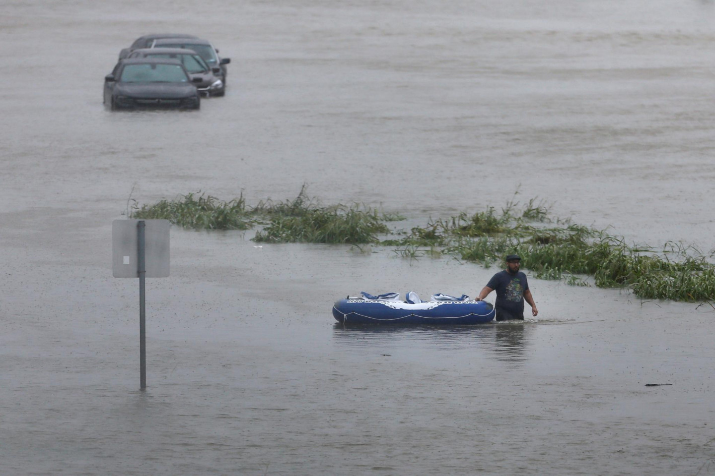 Viesuļvētras "Hārvijs" atnesto lietusgāžu izraisīto plūdu ūdeņi Hjūstonā pirmdien sasnieguši vienstāva apbūves jumtu līmeni, taču prognozes liecina, ka lietus nerimsies. Vienas no ASV vēsturē spēcīgākajām lietusgāzēm faktiski paralizējušas valsts ceturto lielāko pilsētu, un pagaidām nav gaidāma situācijas uzlabošanās, jo tiek prognozēts, ka nokrišņi, kas vietām jau sasnieguši 76 centimetru līmeni, turpināsies un tuvākajā lakā papildus nolīs vēl 61 centimetru lieli nokrišņi. Līdz šim apstiprināti vismaz trīs nāves gadījumi, kurus, domājams, izraisījis "Hārvijs". Trešais upuris ir kāda sieviete, kuras dzīvojamajai auto piekabei Porterā, kas atrodas uz ziemeļaustrumiem no Hjūstonas, uzkritis lietusūdeņu izskalots ozols. Pastāv bažas, ka austrumos no Hjūstonas gājuši bojā vēl seši vienas ģimenes locekļi, plūdiem no tilta pār kādu pārpurvotu atteku noskalojot viņu mikroautobusu. Tomēr ārkārtas dienestu amatpersonas pagaidām nav apstiprinājušas šo gadījumu. Tikmēr Hjūstonas aglomerācijā, kuras teritorija sasniedz aptuveni 25 000 kvadrātkilometru, turpinās glābšanas darbi. Pilsētas mērs Silvesters Tērners pavēstīja, ka policija no appludinātajām mājām savākusi vairāk nekā 3000 cilvēku. Arī Krasta apsardze paziņojusi, ka izglābusi vairāk nekā 3000 cilvēku un ka ik stundu tā saņem vairāk nekā 1000 telefona zvanu ar lūgumiem pēc palīdzības.