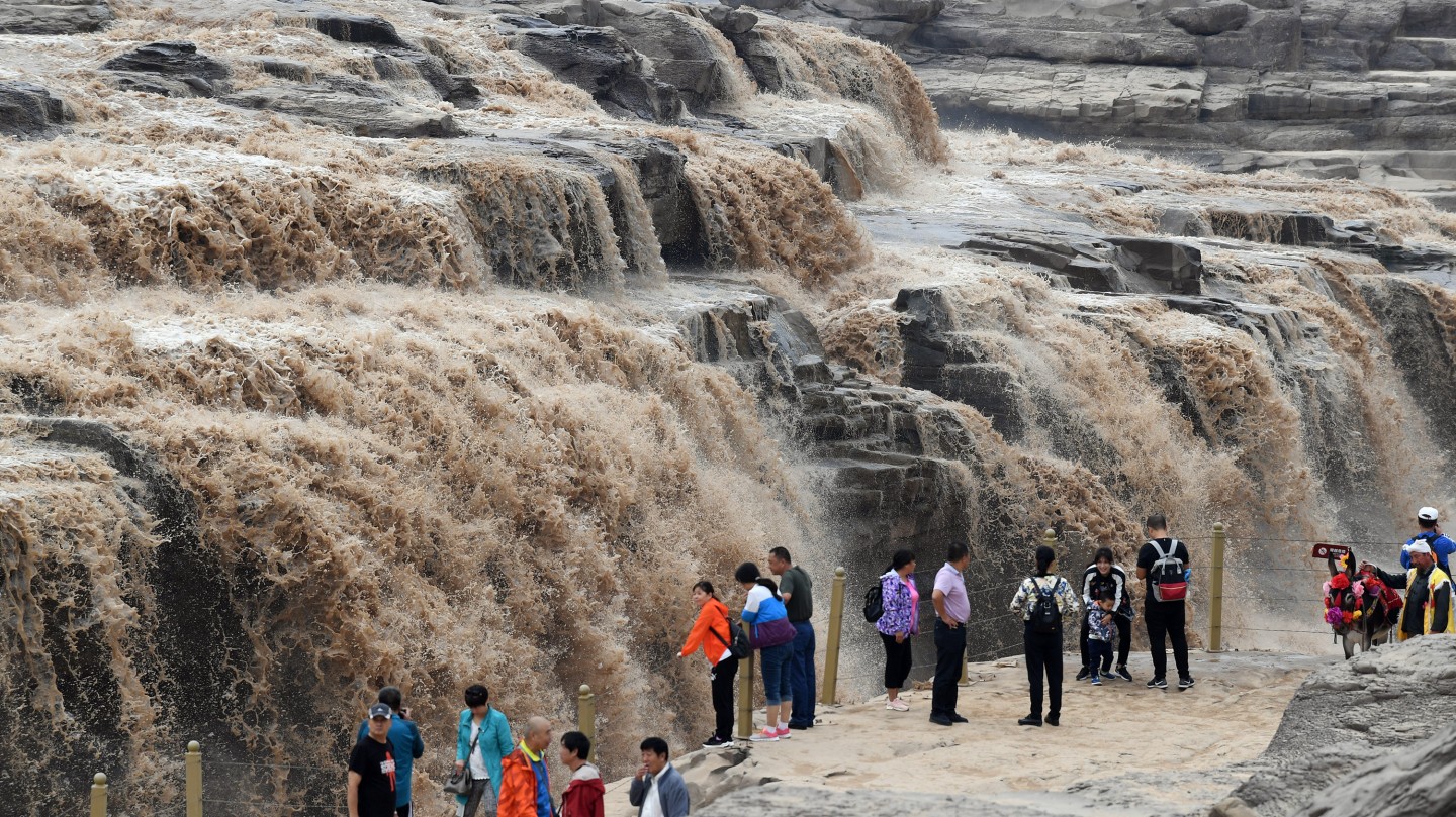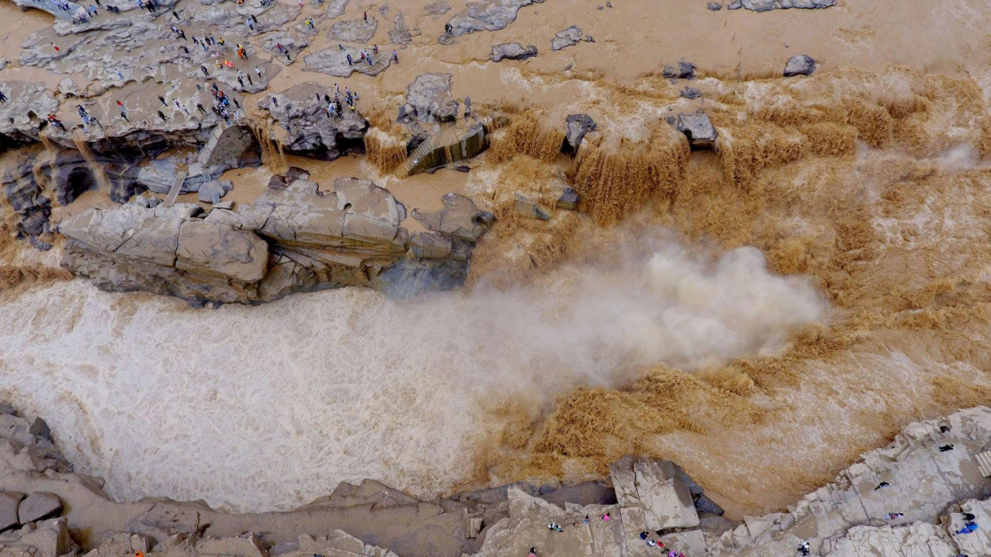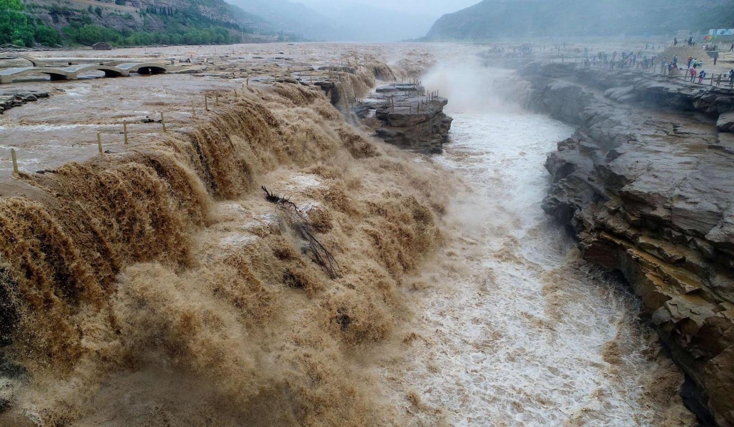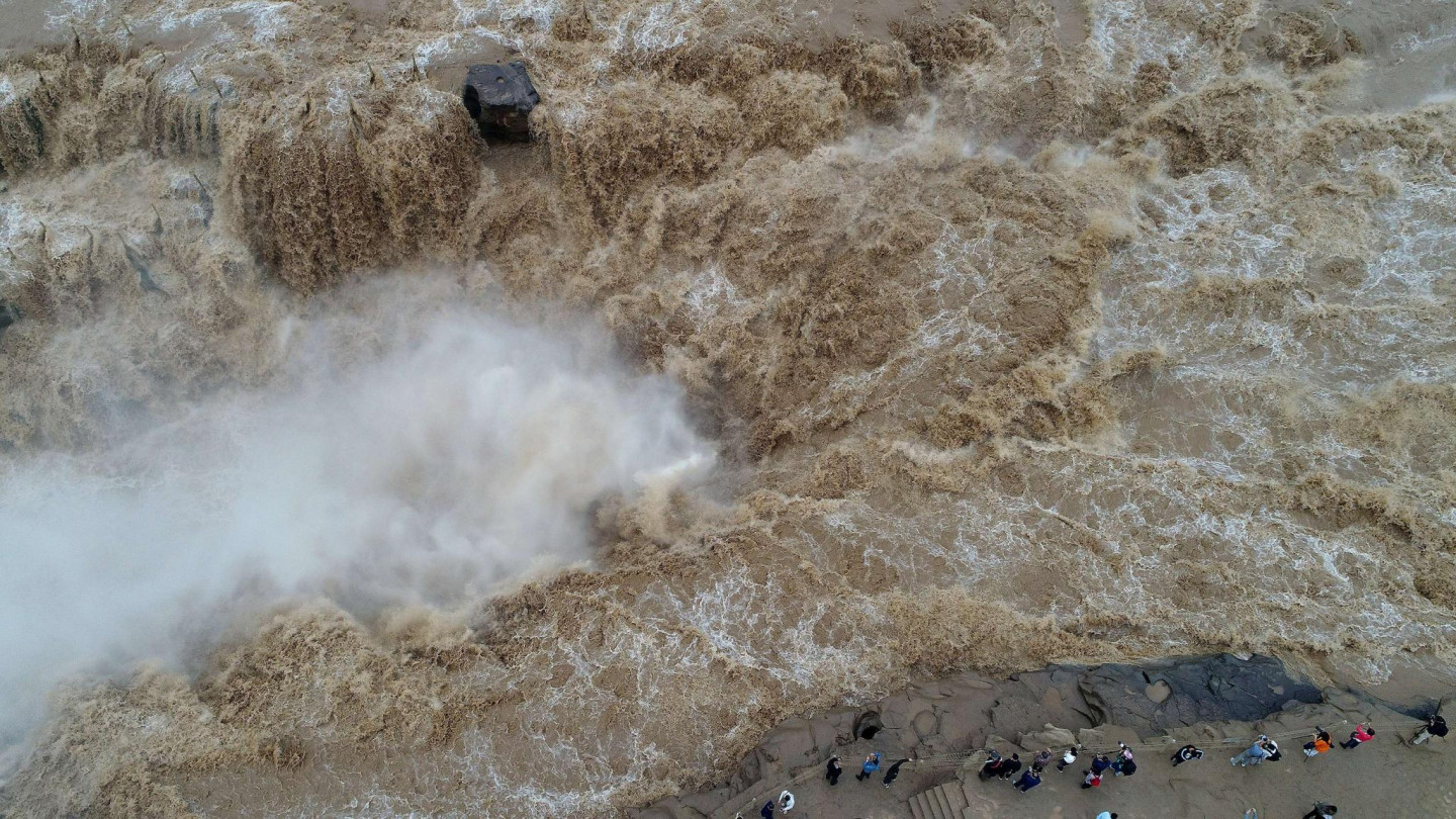 Hukou ūdenskrituma ūdens līmenis vairākkārtīgi palielinājies, ņemot vērā spēcīgās lietas Ķīnā. Šīs fotogrāfijas uzņemtas 4.augustā.