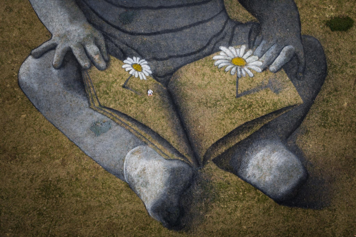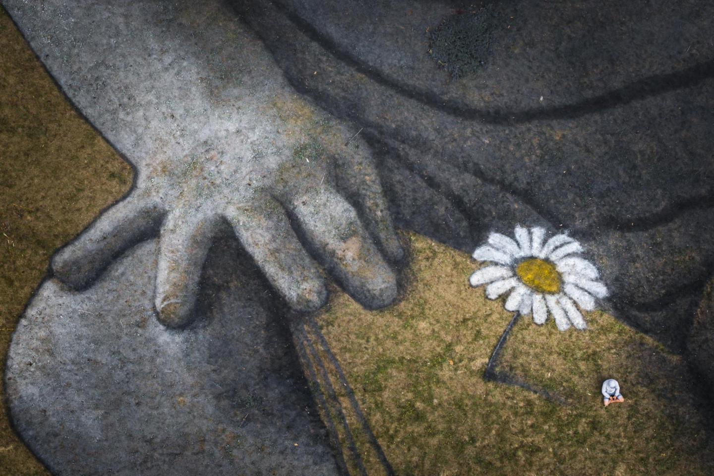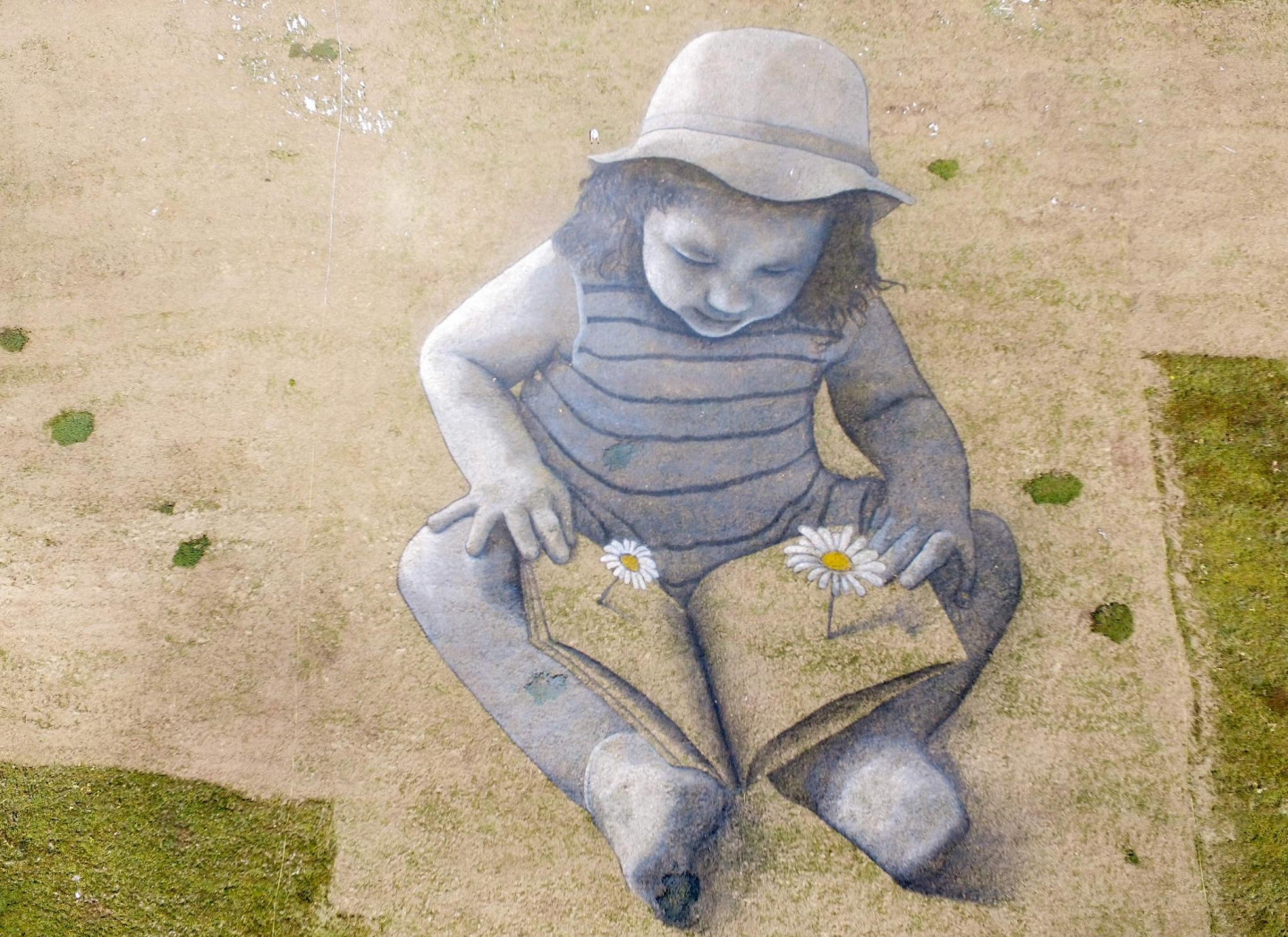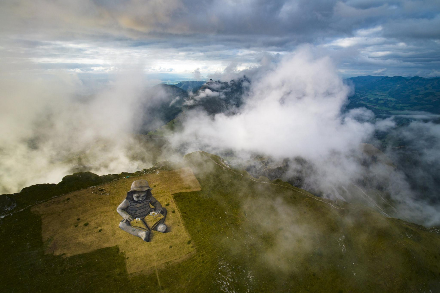 Kalnu reģionā Šveicē mākslinieki radījuši teju 6000 kvadrātmetru lielu zīmējumu. Tā tapšanā izlietoti nedaudz vairāk kā 600 litri bioloģiskās krāsas.