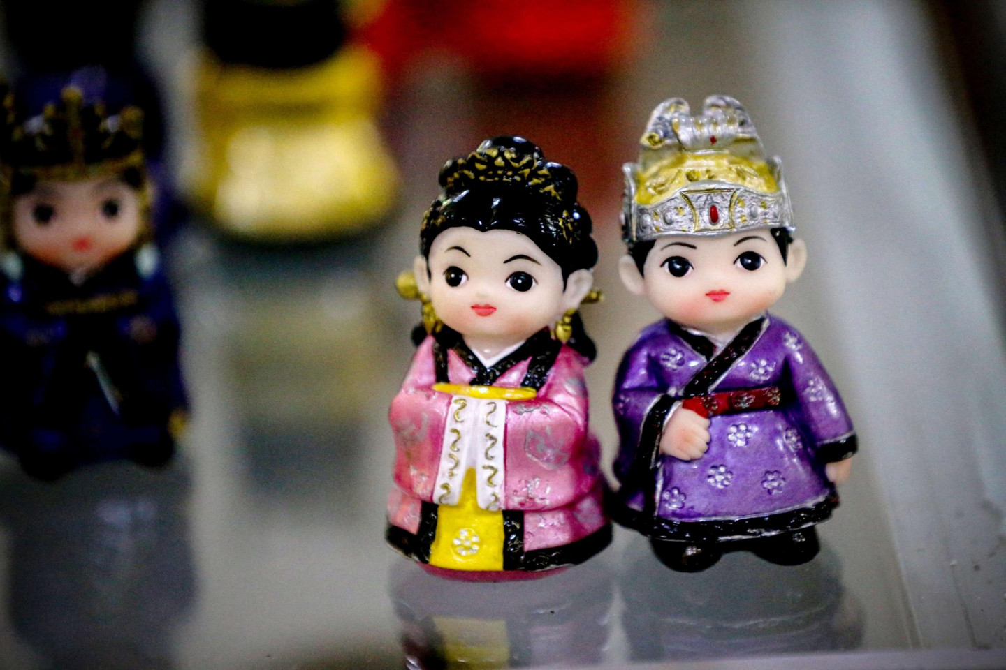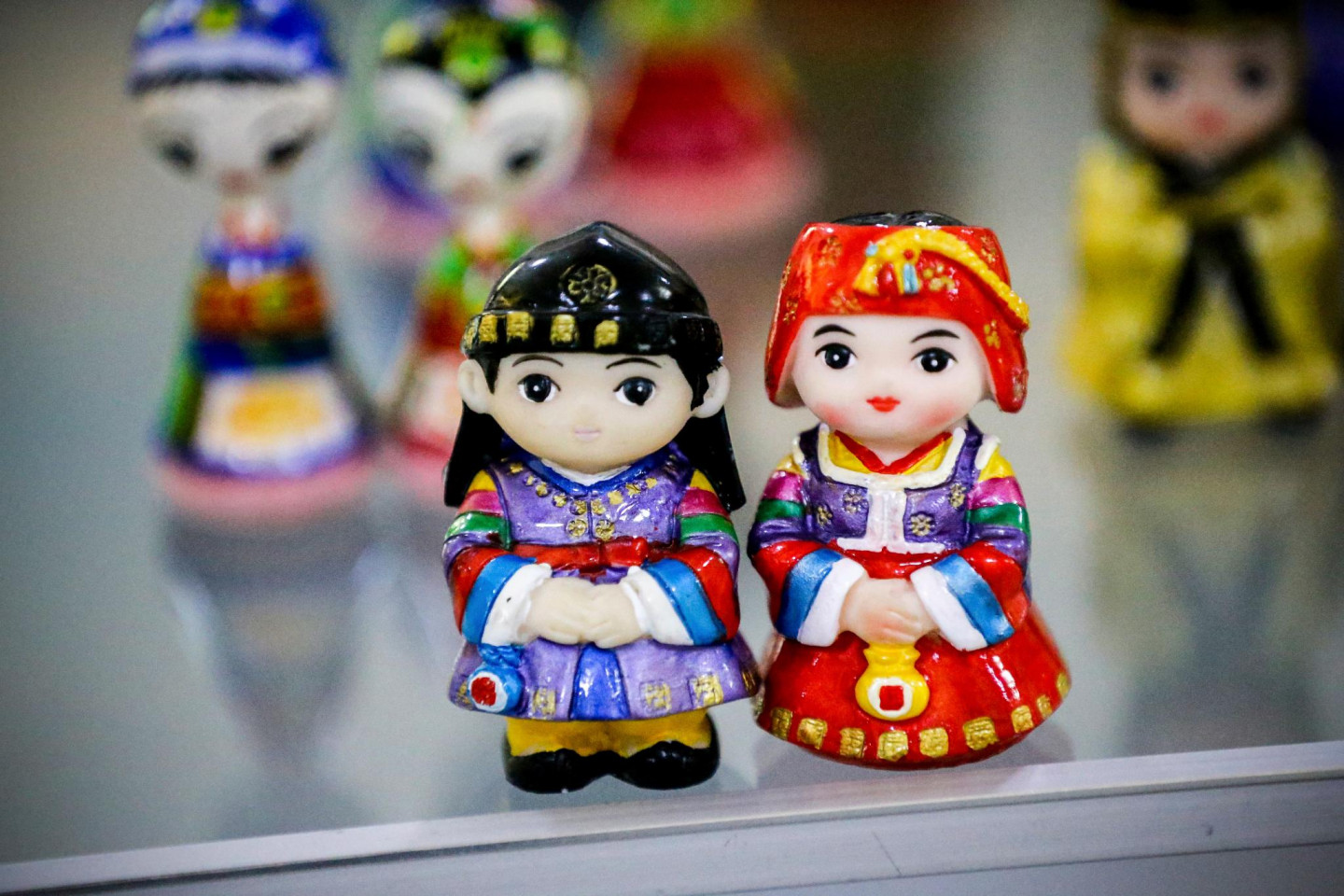 Kādam fotogrāfam izdevies iemūžināt, kādi suvenīri lellīšu formā tiek pārdoti Ziemeļkorejā.
