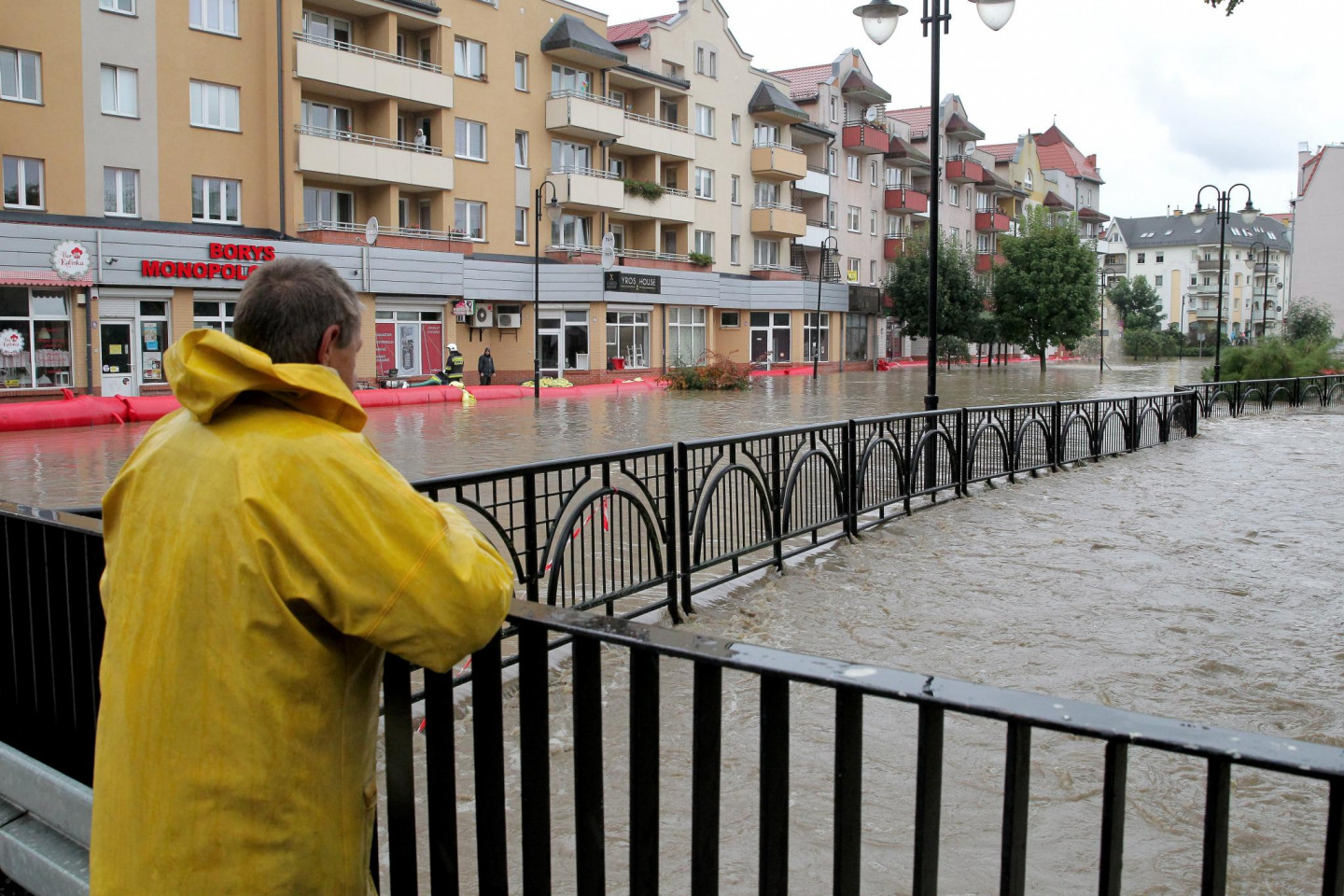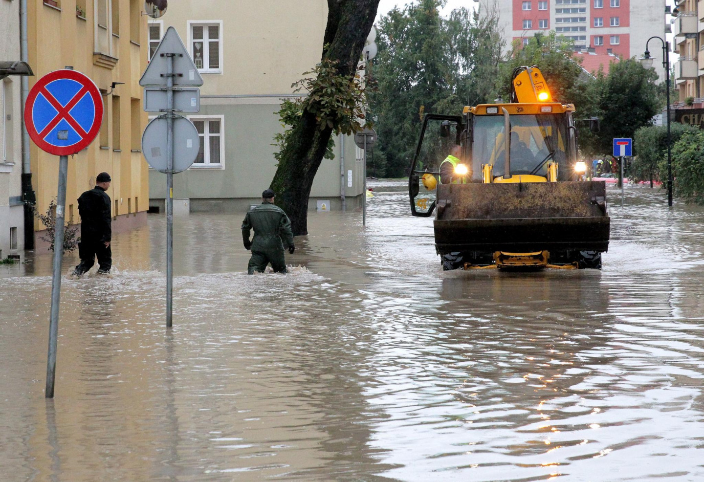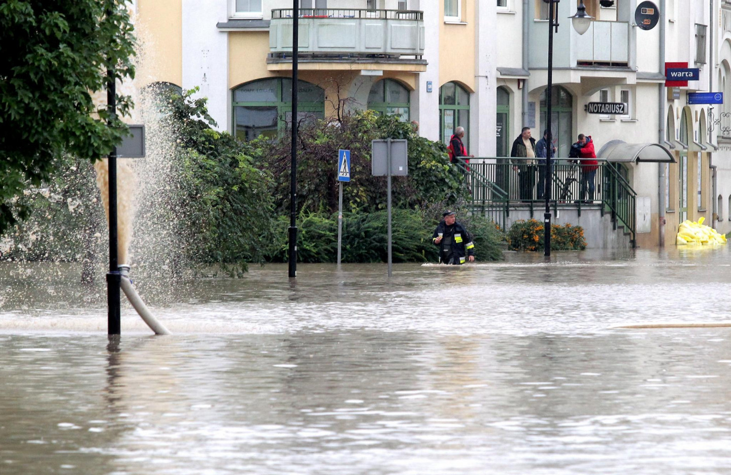 Ne vien Latvijā, bet arī Polijā pirmdien piedzīvotas pamatīgas lietusgāzes, kā rezultātā daudzviet sākušies plūdi. Lai novērstu lietavu radītos postījumus šodien pilsētu ielās strādā aptuveni 200 ugunsdzēsēji.
