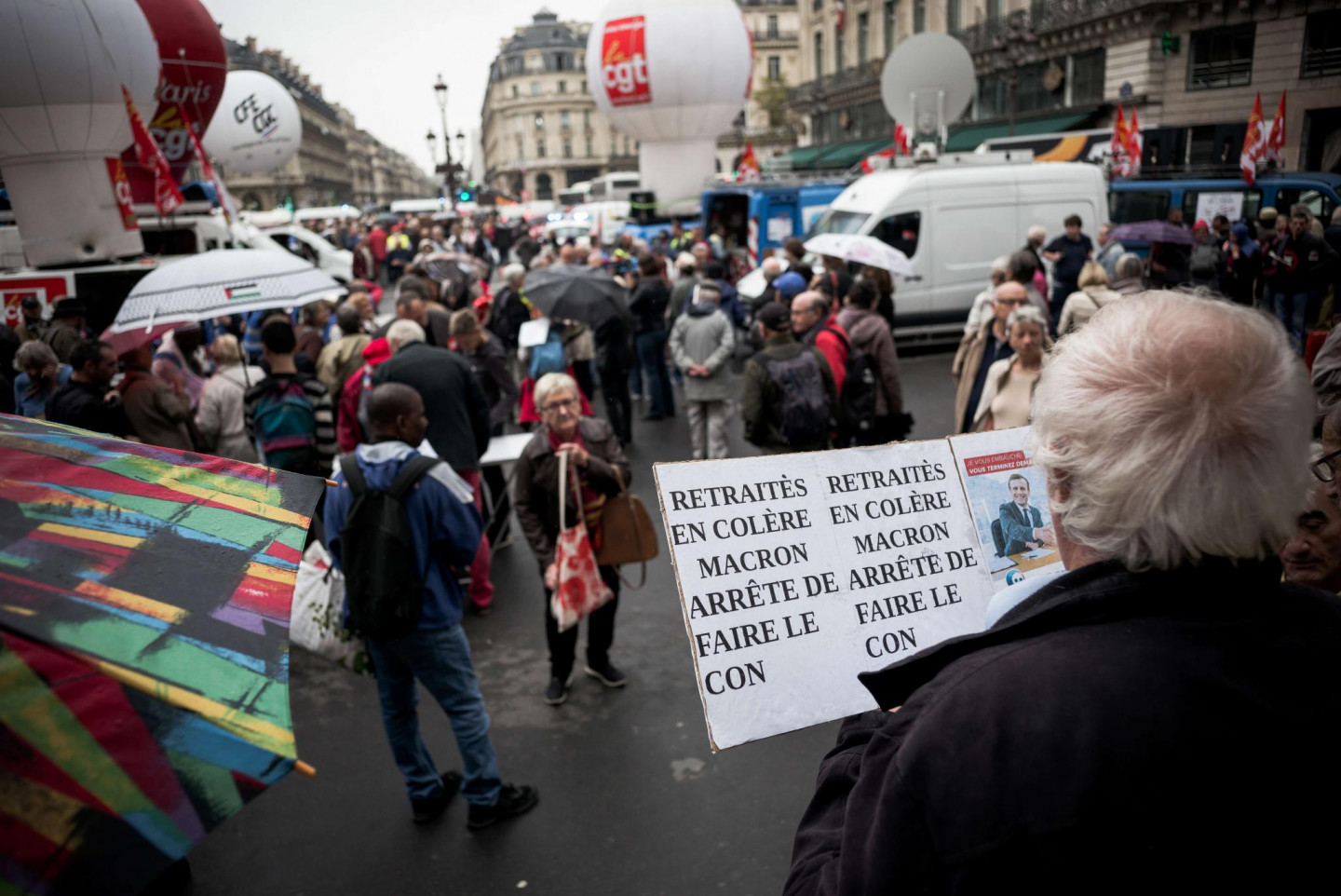 Pievienojoties citām sociālajām grupām, kas ir neapmierinātas ar prezidenta Emanuela Makrona ekonomiskajām reformām, ceturtdien Francijā ielās izgāja tūkstošiem pensionāru, kas protestēja pret nodokļu pieaugumu. Makronam cenšoties samazināt budžeta deficītu, aptuveni astoņiem miljoniem pensionāru, kuru pensijas pārsniedz 1200 eiro, no nākamā gada nāksies veikt lielākas sociālās iemaksas. Deviņas arodbiedrības, kas rīkoja ceturtdienas protesta akciju, paziņojušas, ka nodokļu paaugstināšana, kurai valsts kasē vajadzētu ienest 20 miljardus eiro, katram senioram gadā var izmaksāt vairākus simtus eiro. Tikmēr Makrons, kura valdība trešdien publiskoja sava pirmā budžeta projektu, centies pārliecināt, ka vienīgi nodrošinātākajiem pensionāriem nāksies savilkt jostas, lai mazinātu finansiālo spiedienu uz jaunākajām paaudzēm.