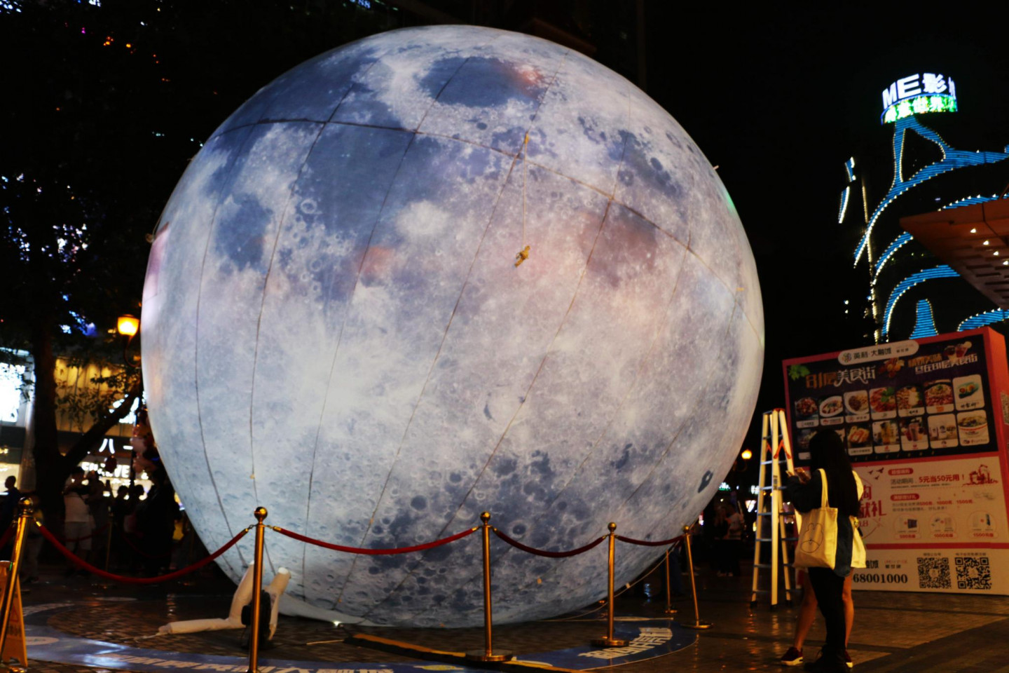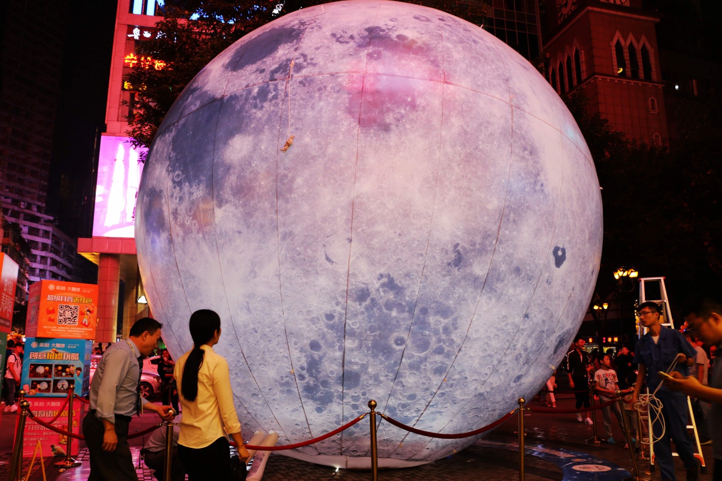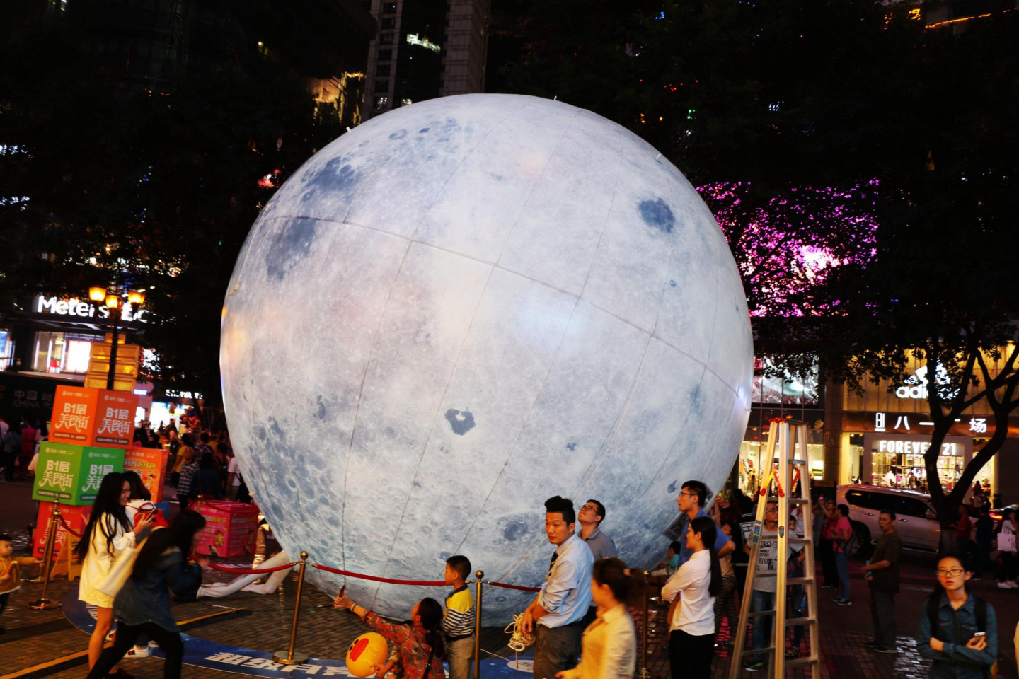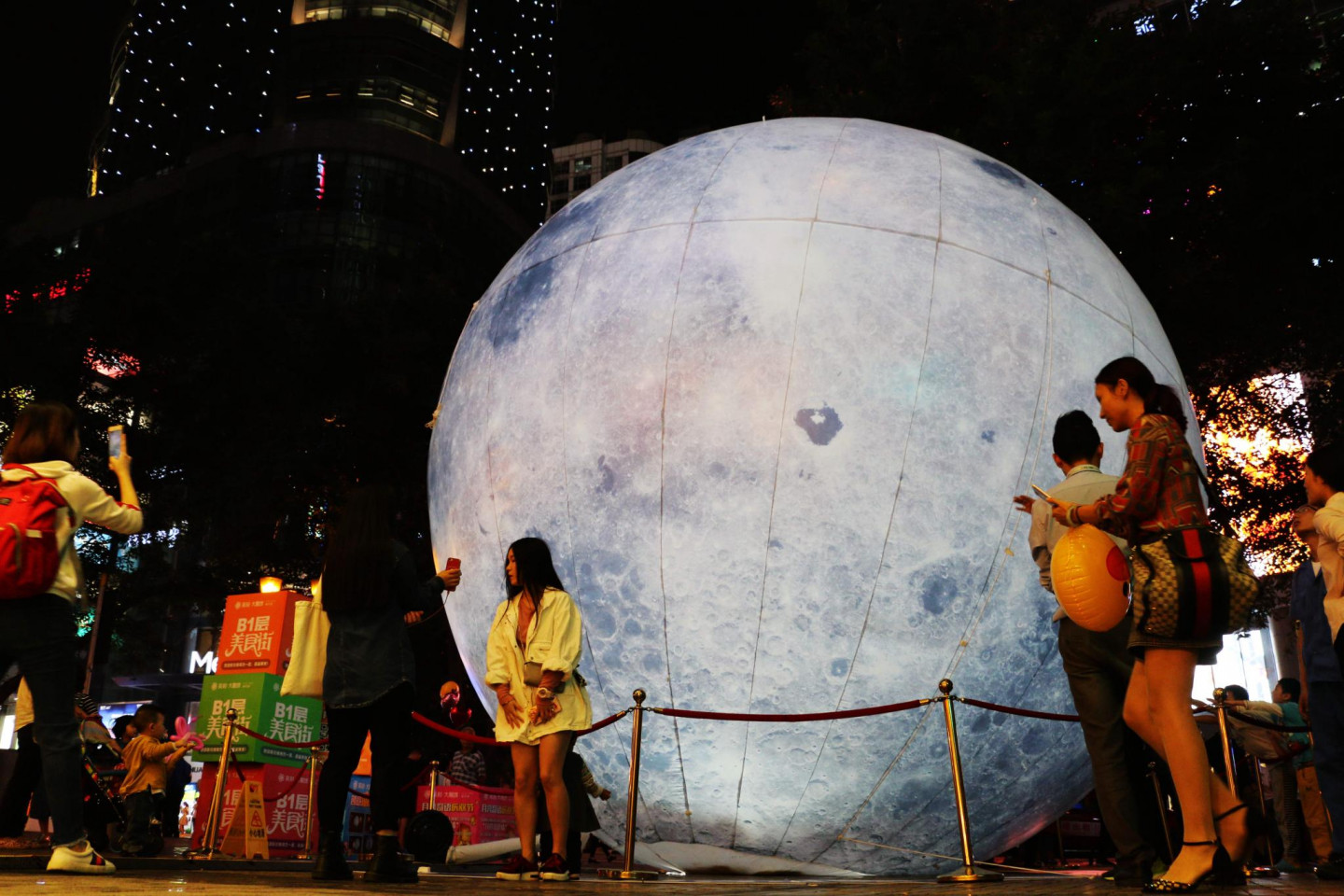 Čuncjinas pilsētā Ķīnā uzstādīta spilgta Mēness instalācija, atzīmējot rudens iestāšanos.