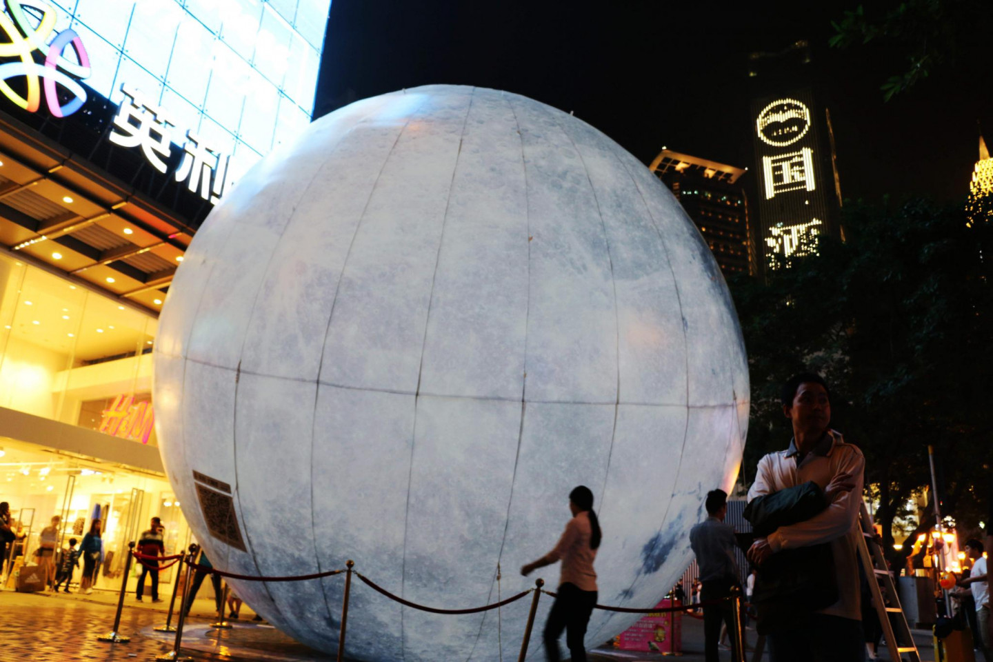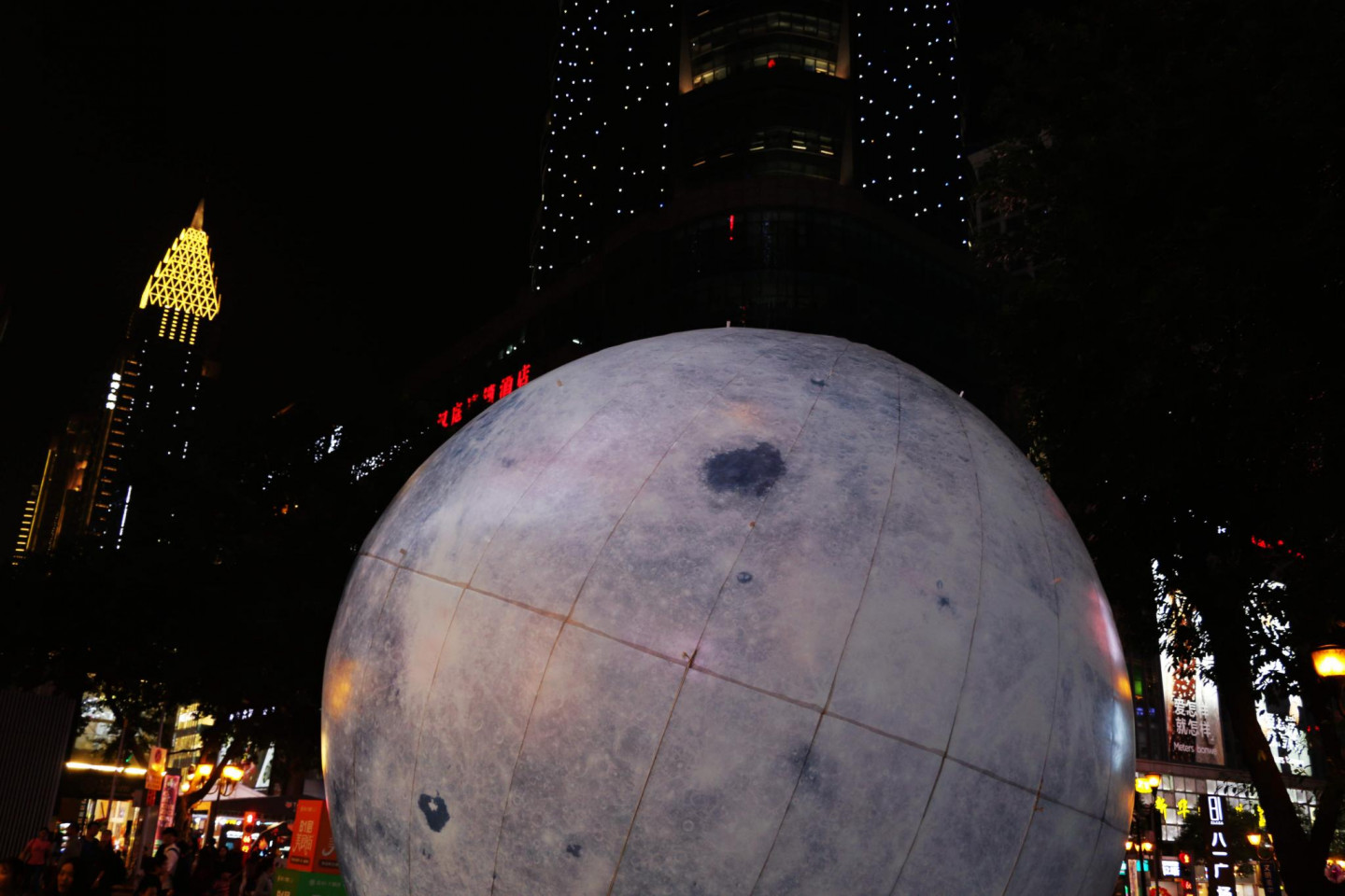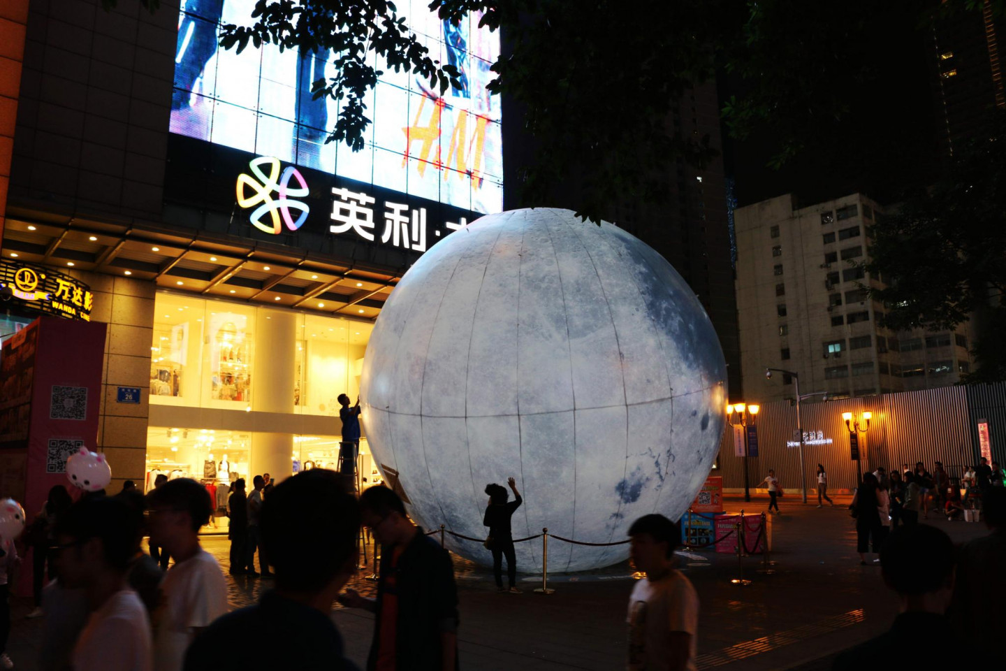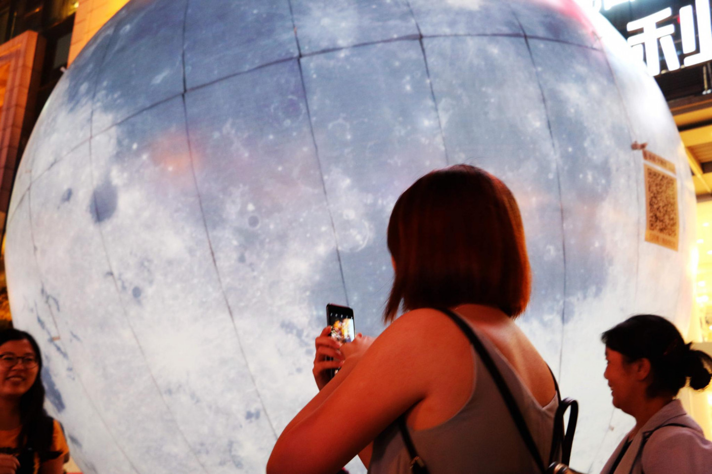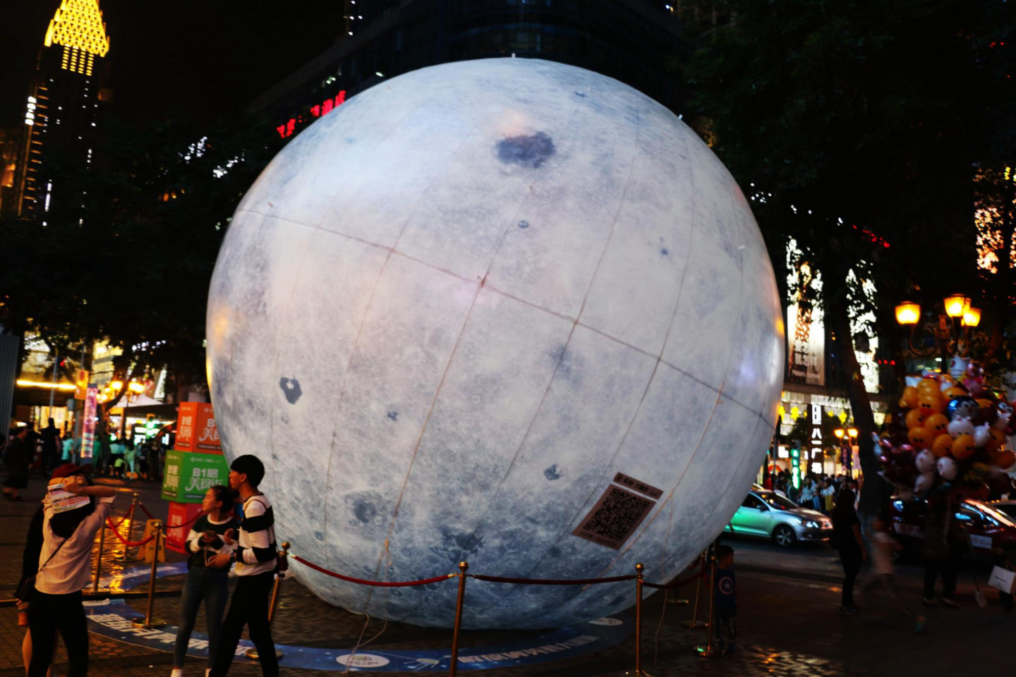Čuncjinas pilsētā Ķīnā uzstādīta spilgta Mēness instalācija, atzīmējot rudens iestāšanos.