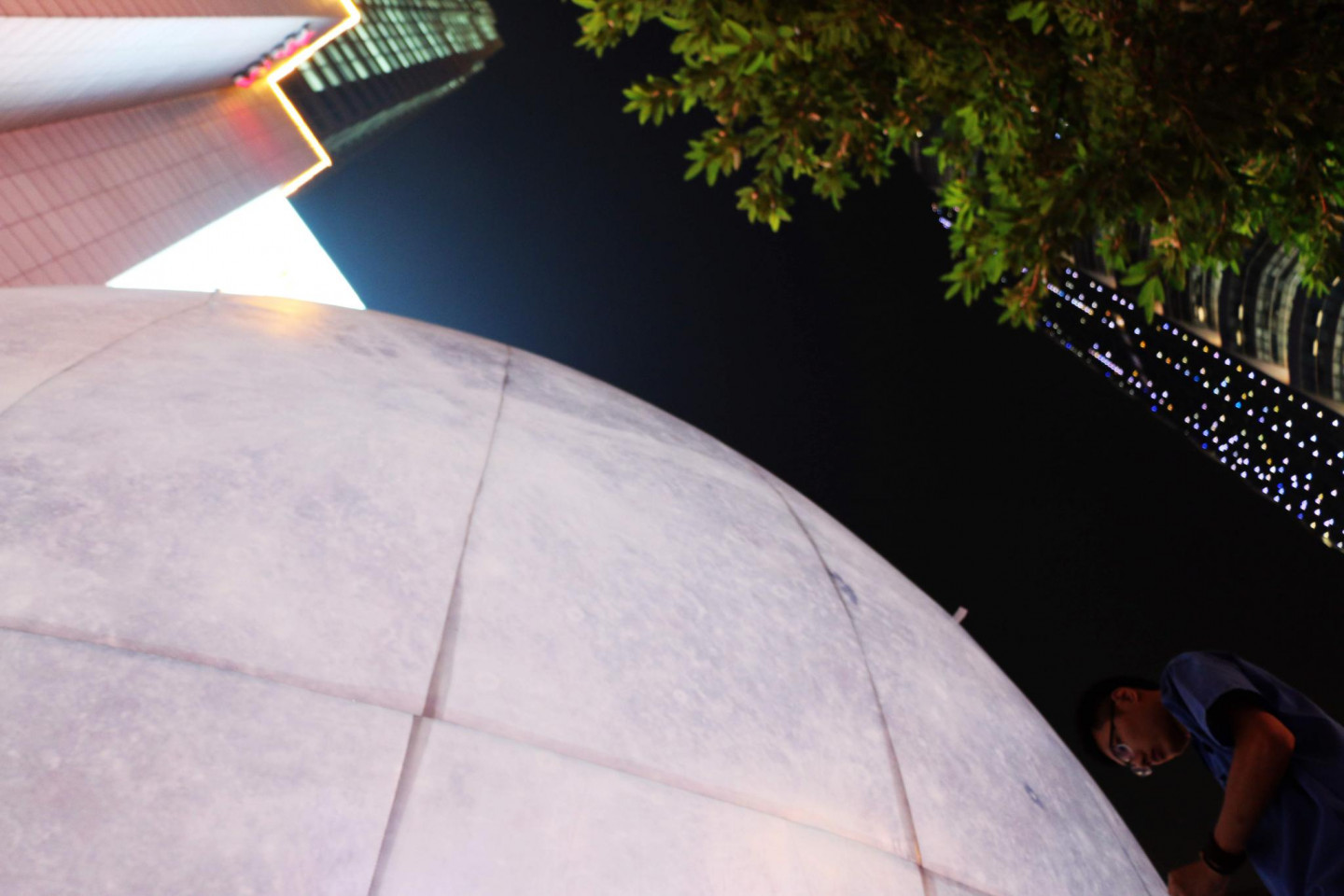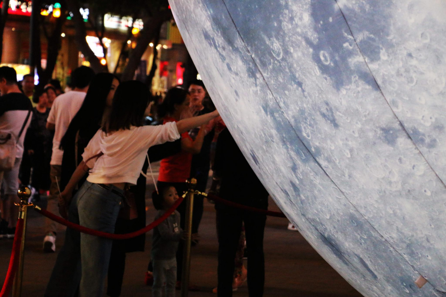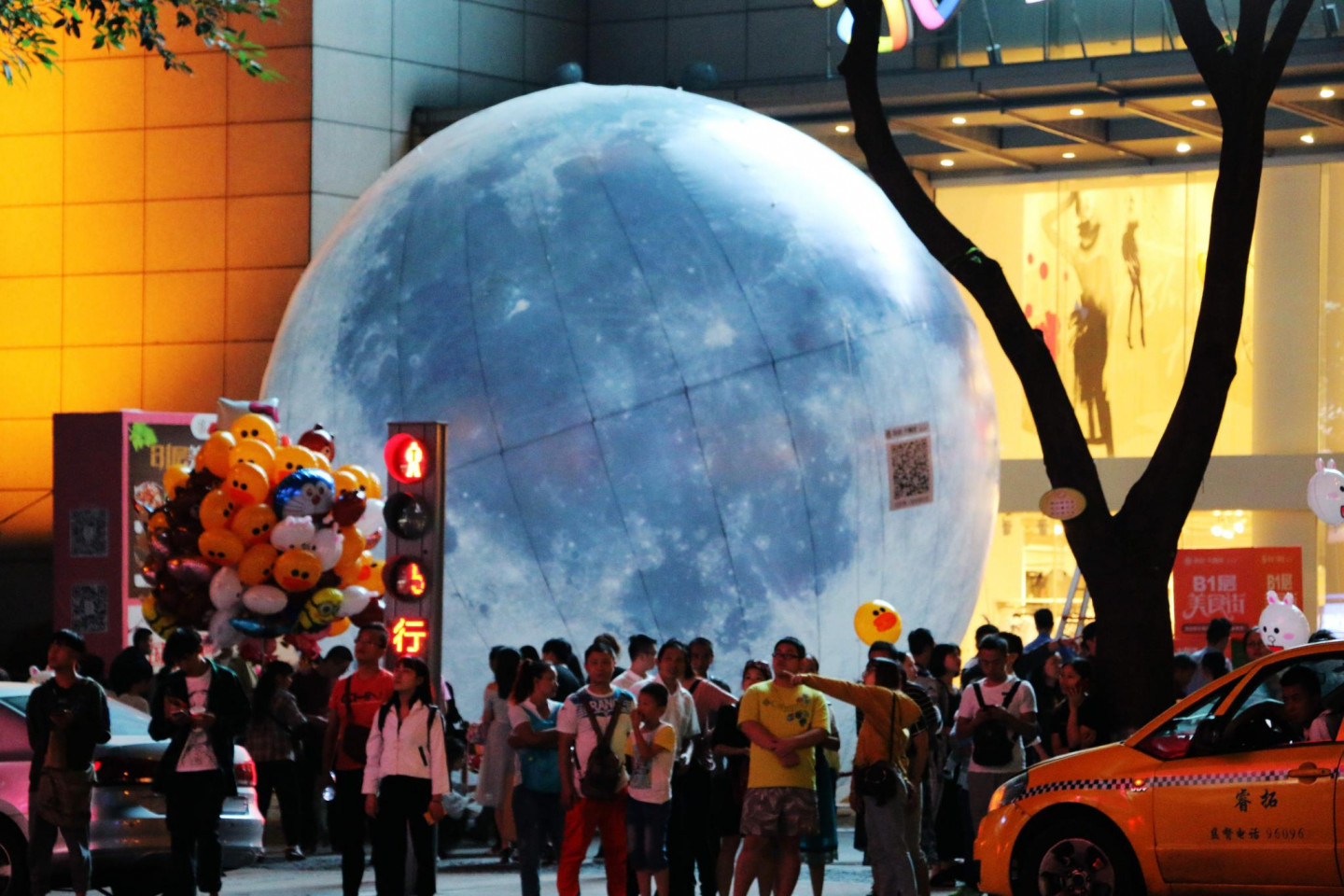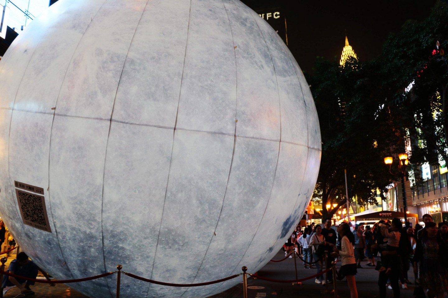Čuncjinas pilsētā Ķīnā uzstādīta spilgta Mēness instalācija, atzīmējot rudens iestāšanos.