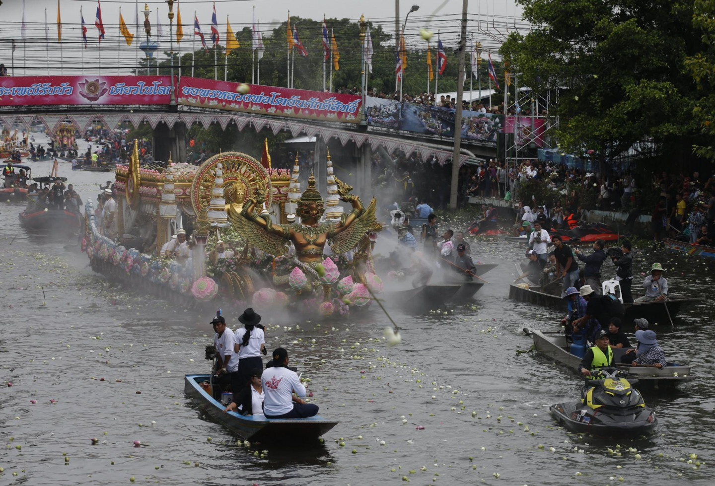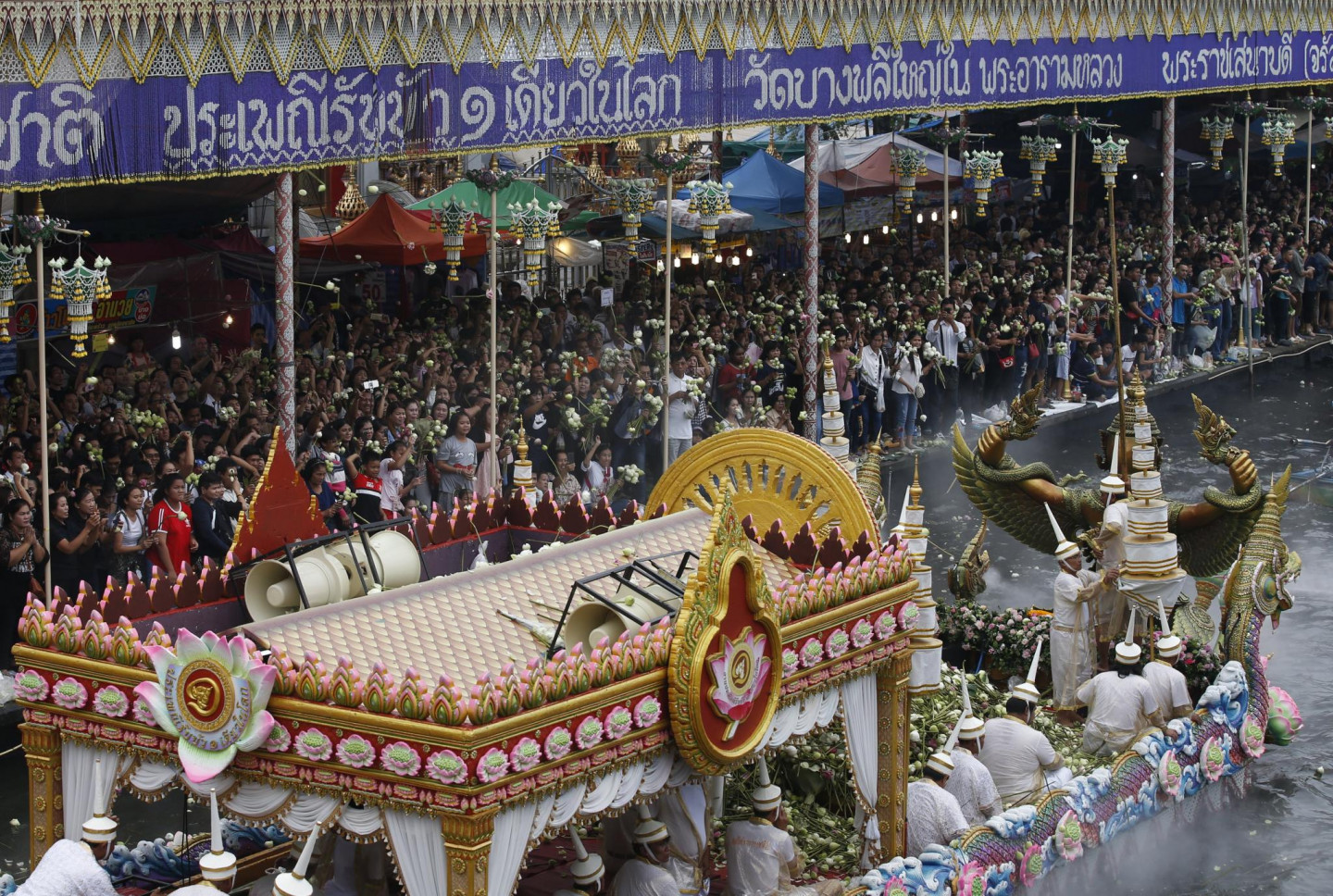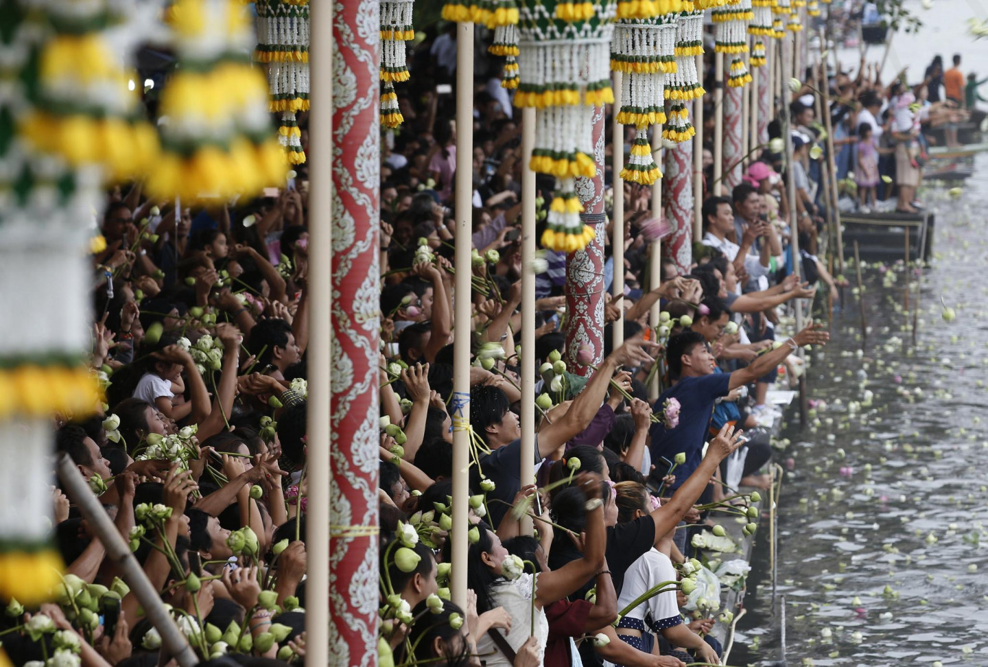 Simtiem cilvēku Taizemē piedalījušies ikgadējā budistu festivālā, kura laikā upē tiek mesti lotosa ziedi.