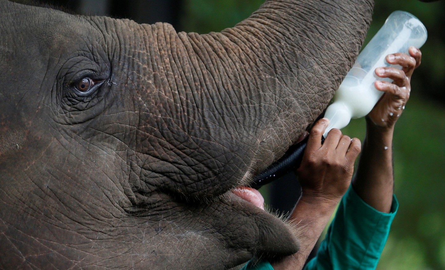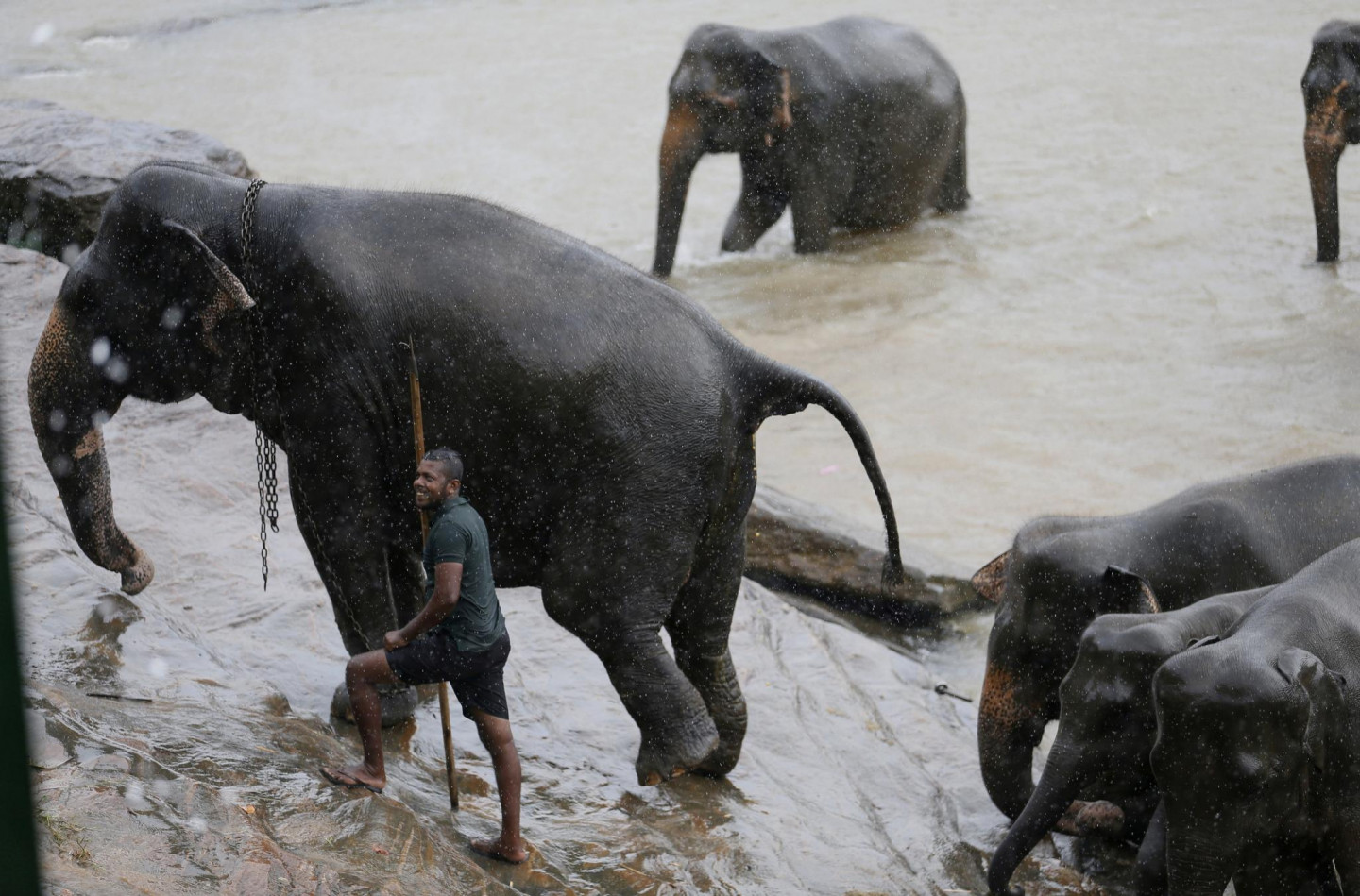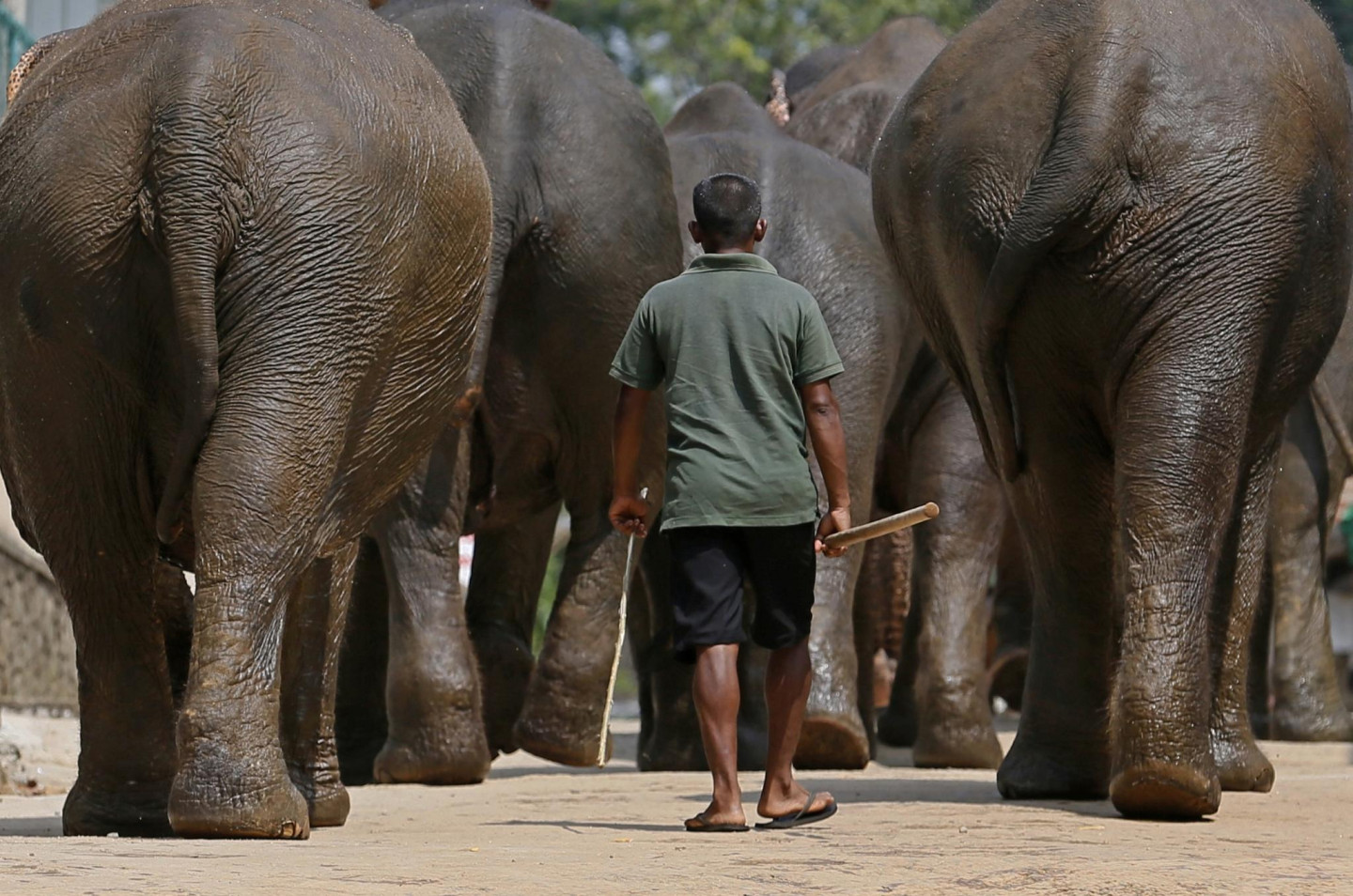 Ziņu aģentūras "Reuters" fotogrāfiem izdevies iemūžināt, kā dzīvnieku kopēji parūpējas par ziloņiem dabas parkā Šrilankā.