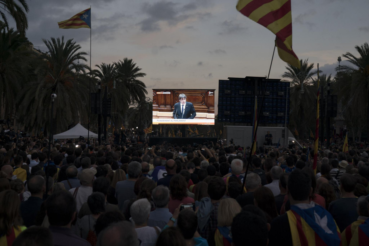 Otrdienas vakarā tūkstošiem cilvēku pulcējās laukumā Barselonā, lai tiešraidē vērotu Katalonijas premjera Karlesa Pudždemona uzrunu. Jau vēstīts, ka politiķis ierosinājis uz laiku atlikt neatkarības pasludināšanu.