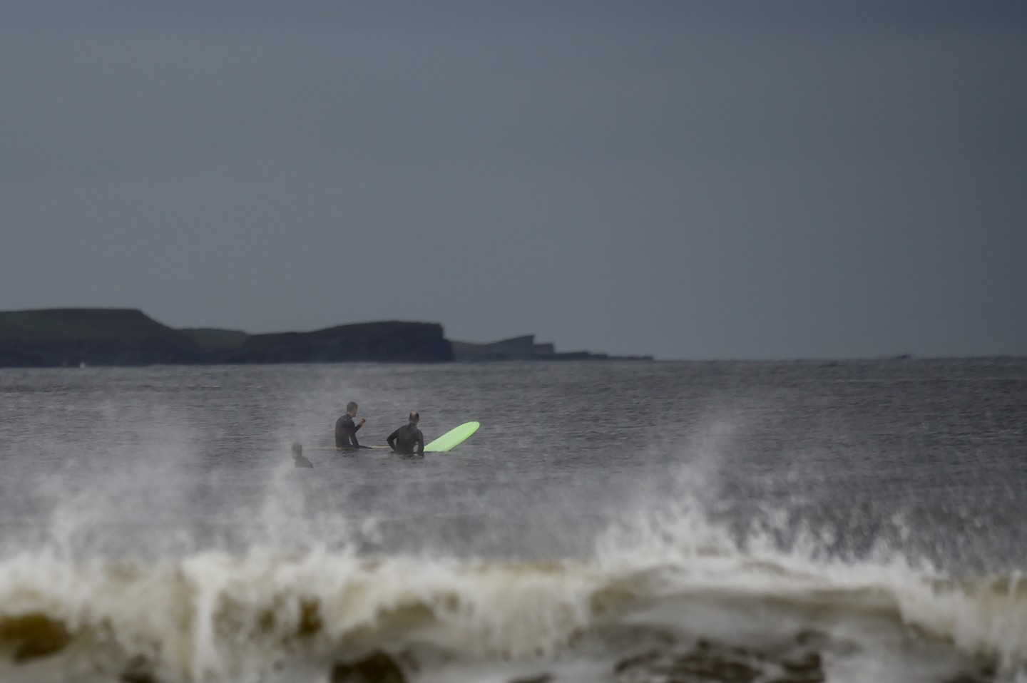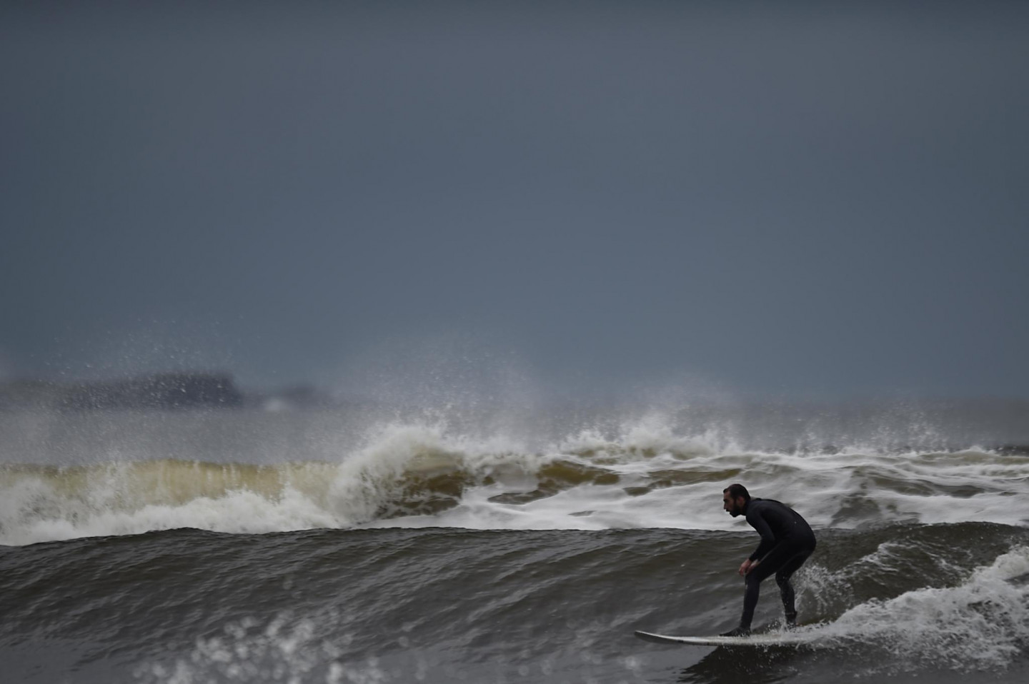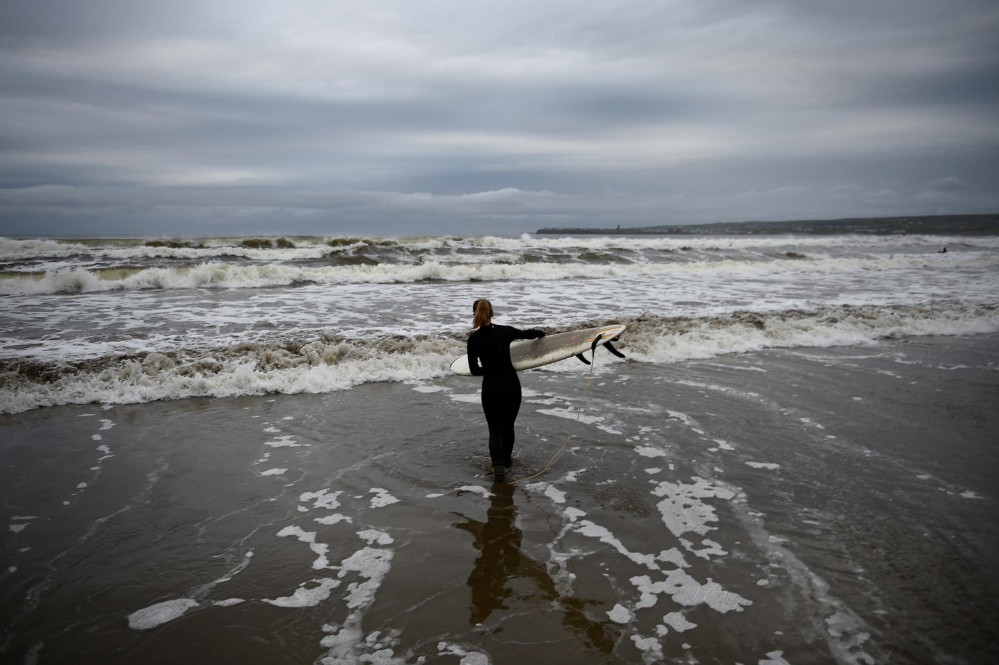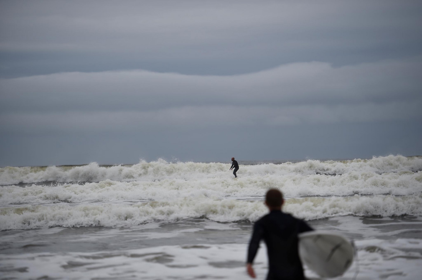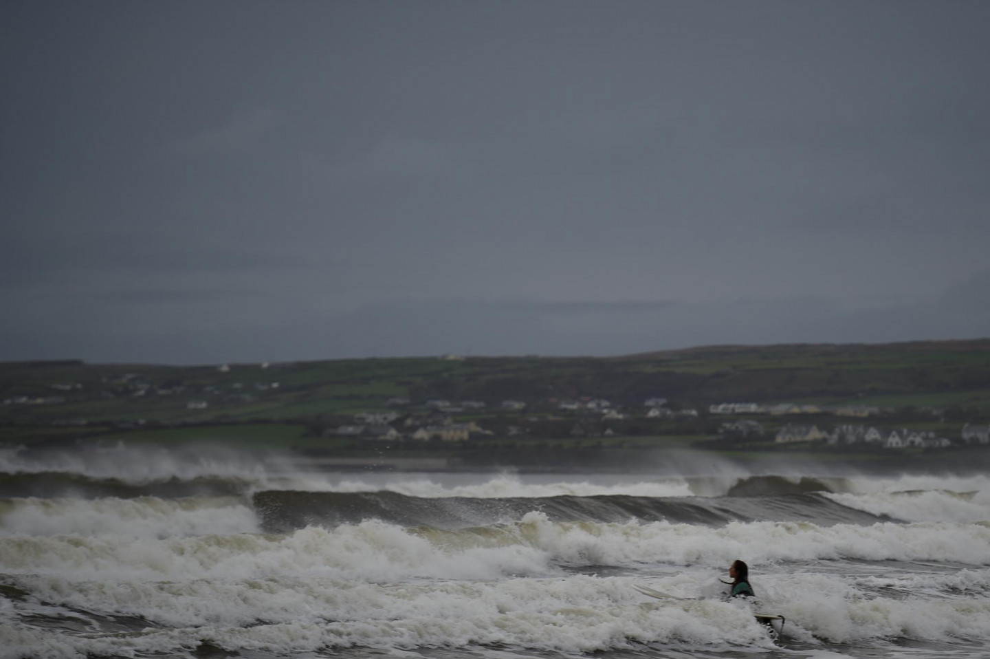 Sērferi "ķer" augstos viļņus Īrijā, sagaidot vētru "Ofēlija"