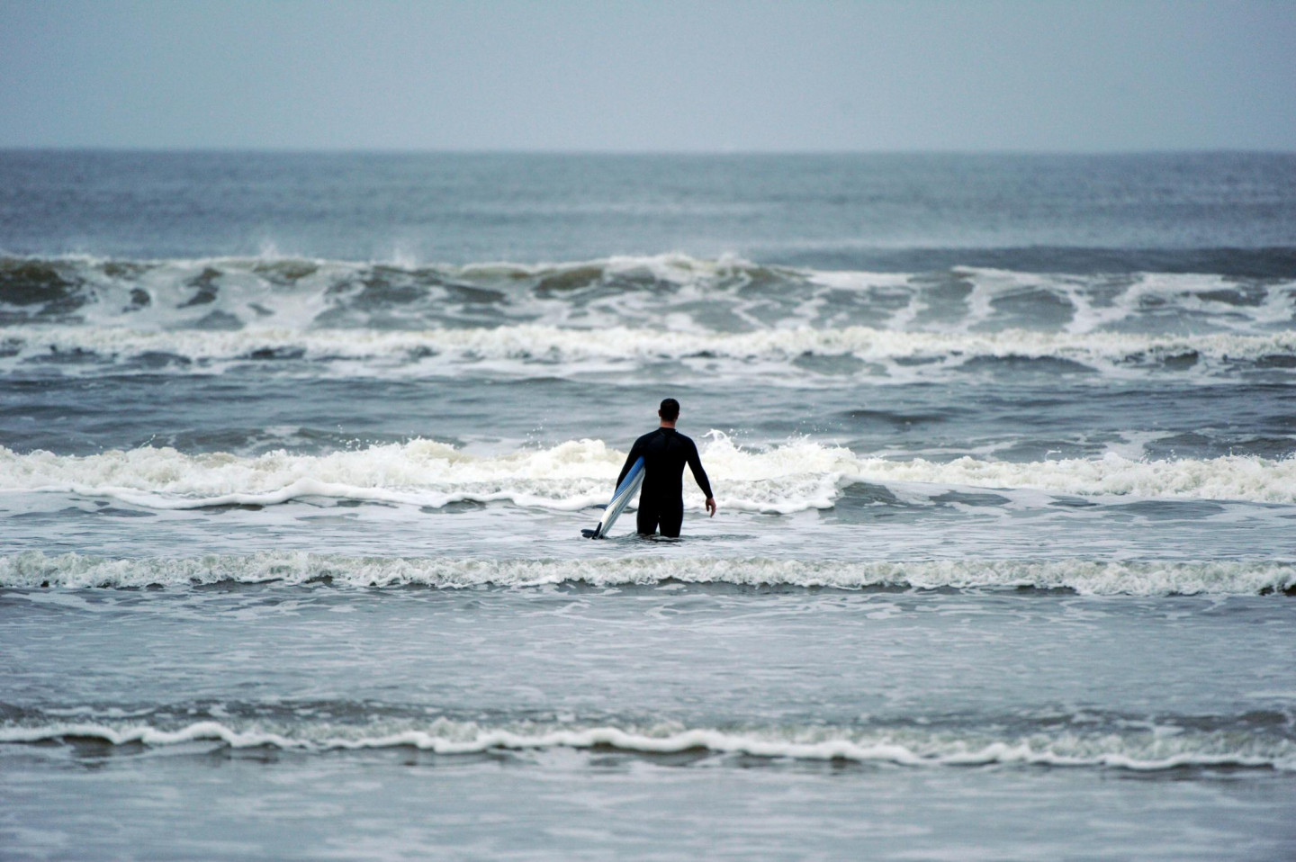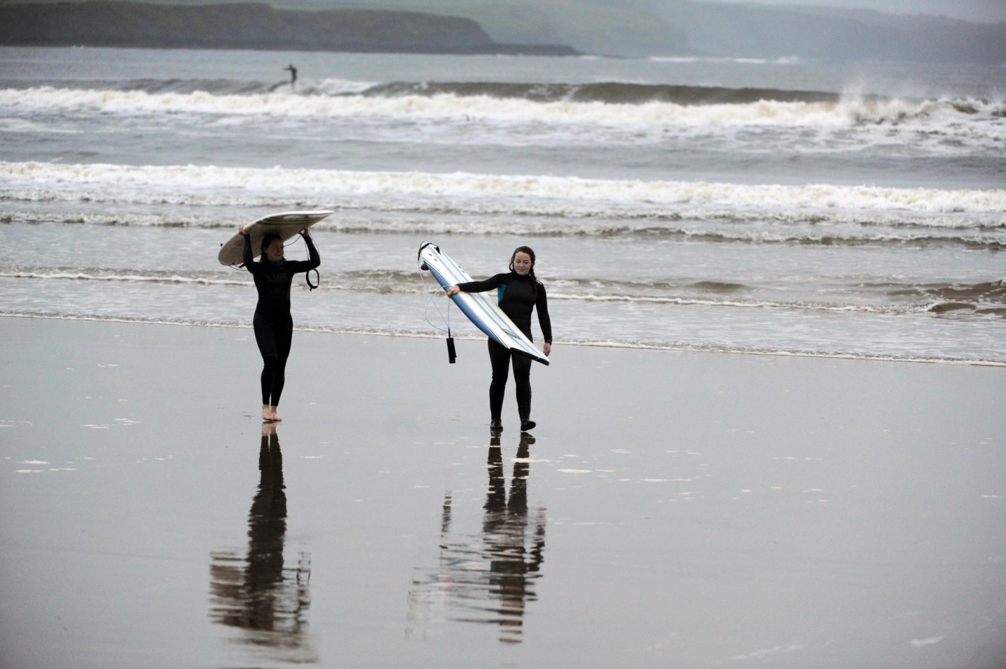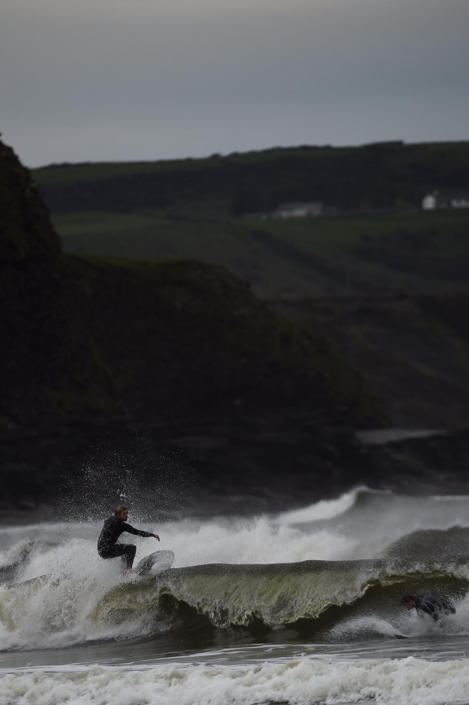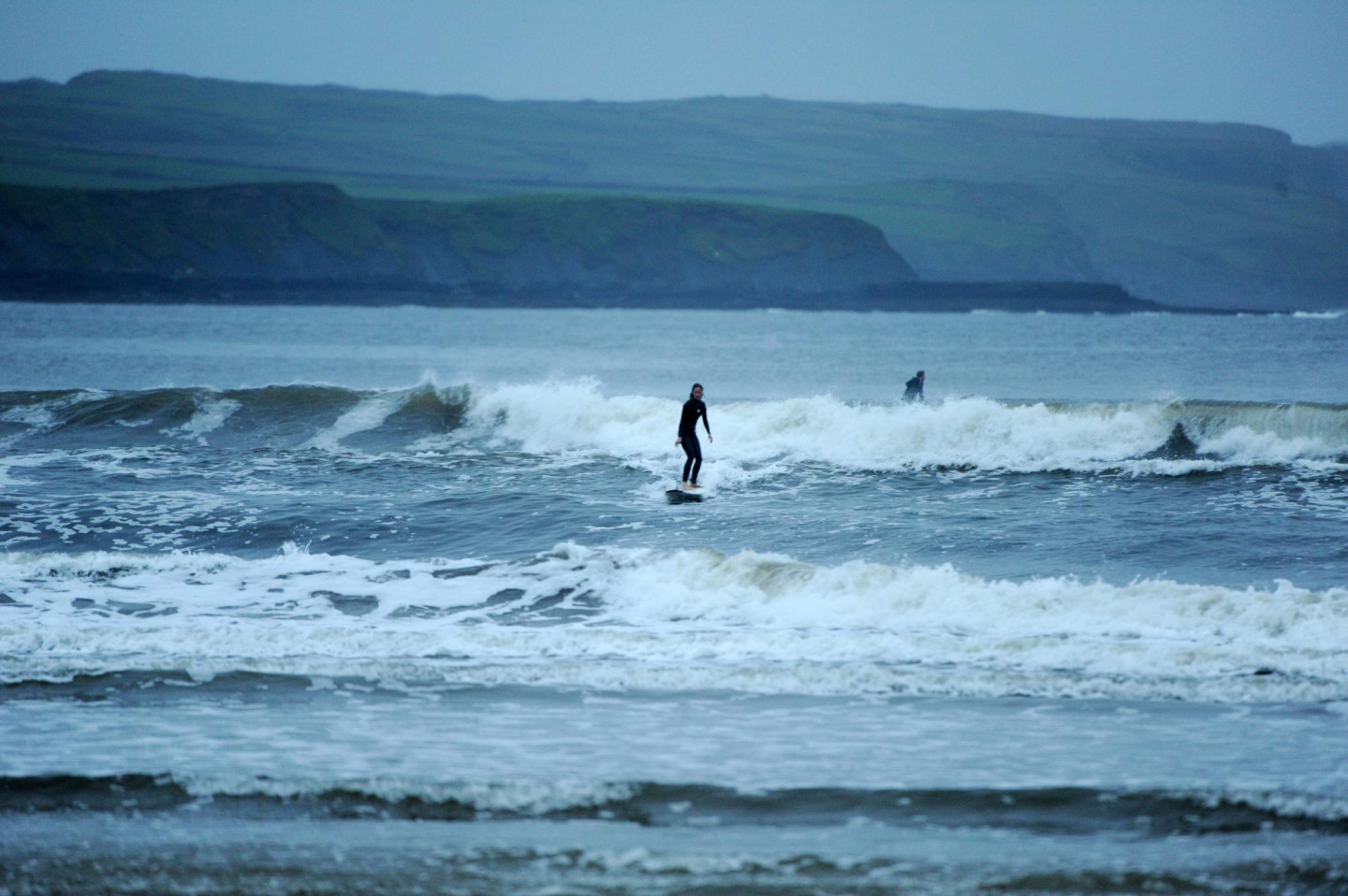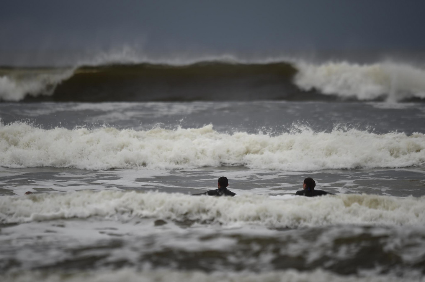 Sērferi "ķer" augstos viļņus Īrijā, sagaidot vētru "Ofēlija"
