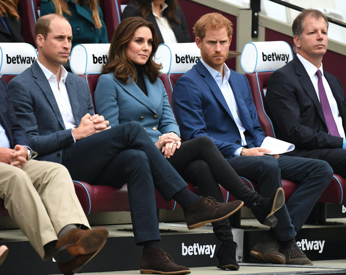 Kembridžas hercogiene Keita kopā ar vīru, princi Viljamu un viņa brāli Hariju, apmeklējusi labdarības pasākumu stadionā Londonā.