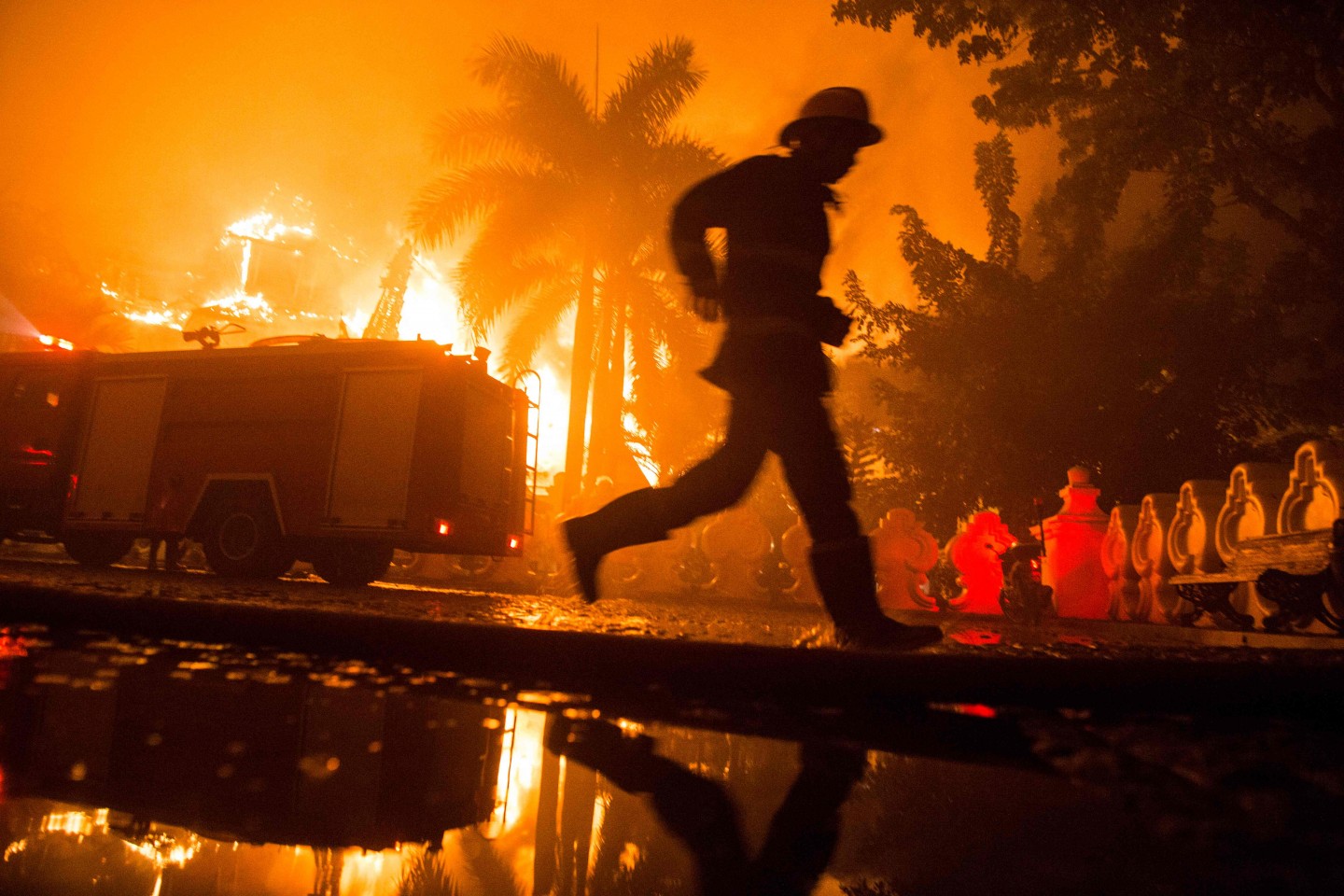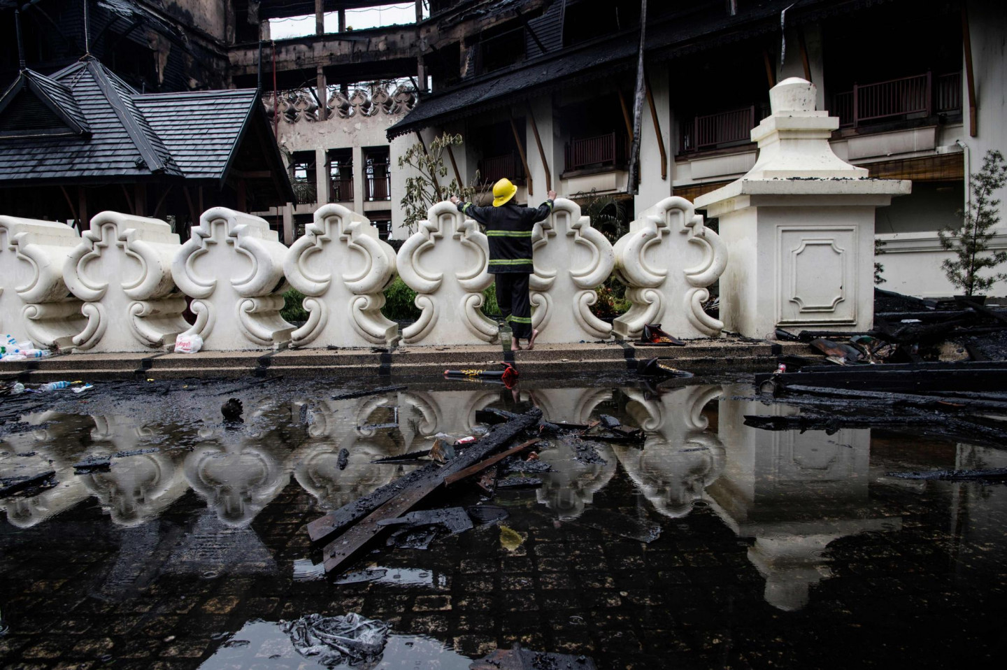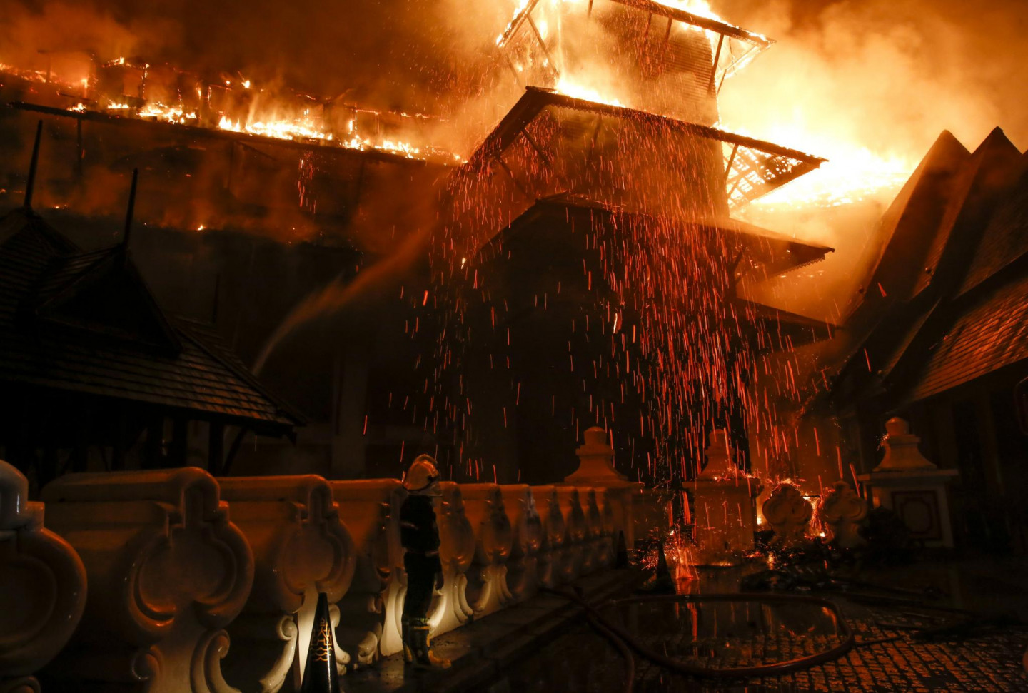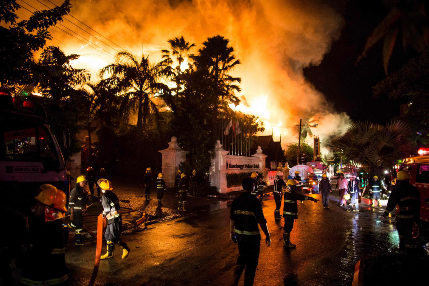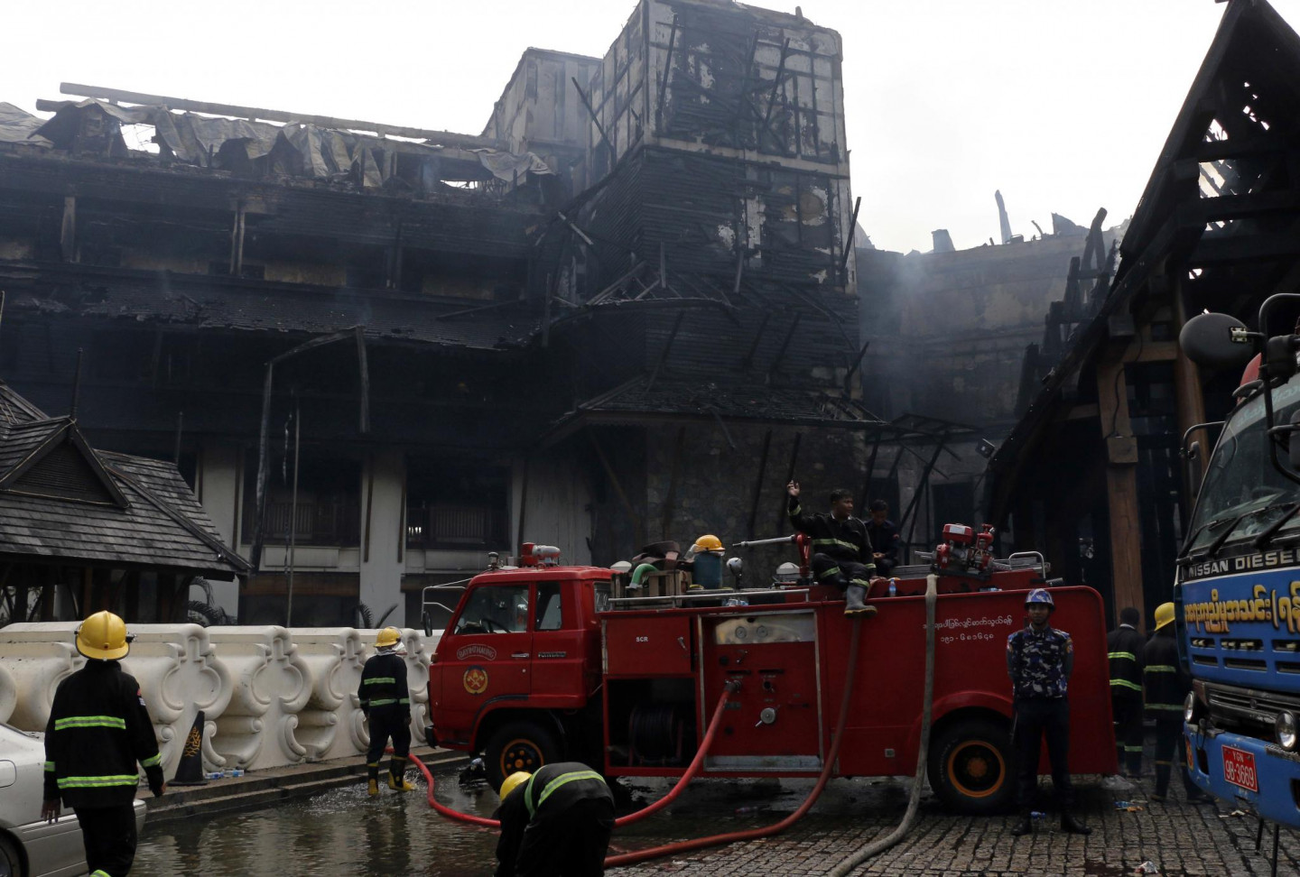 Pamatīgas liesmas noposta skaistu viesnīcu Mjanmā