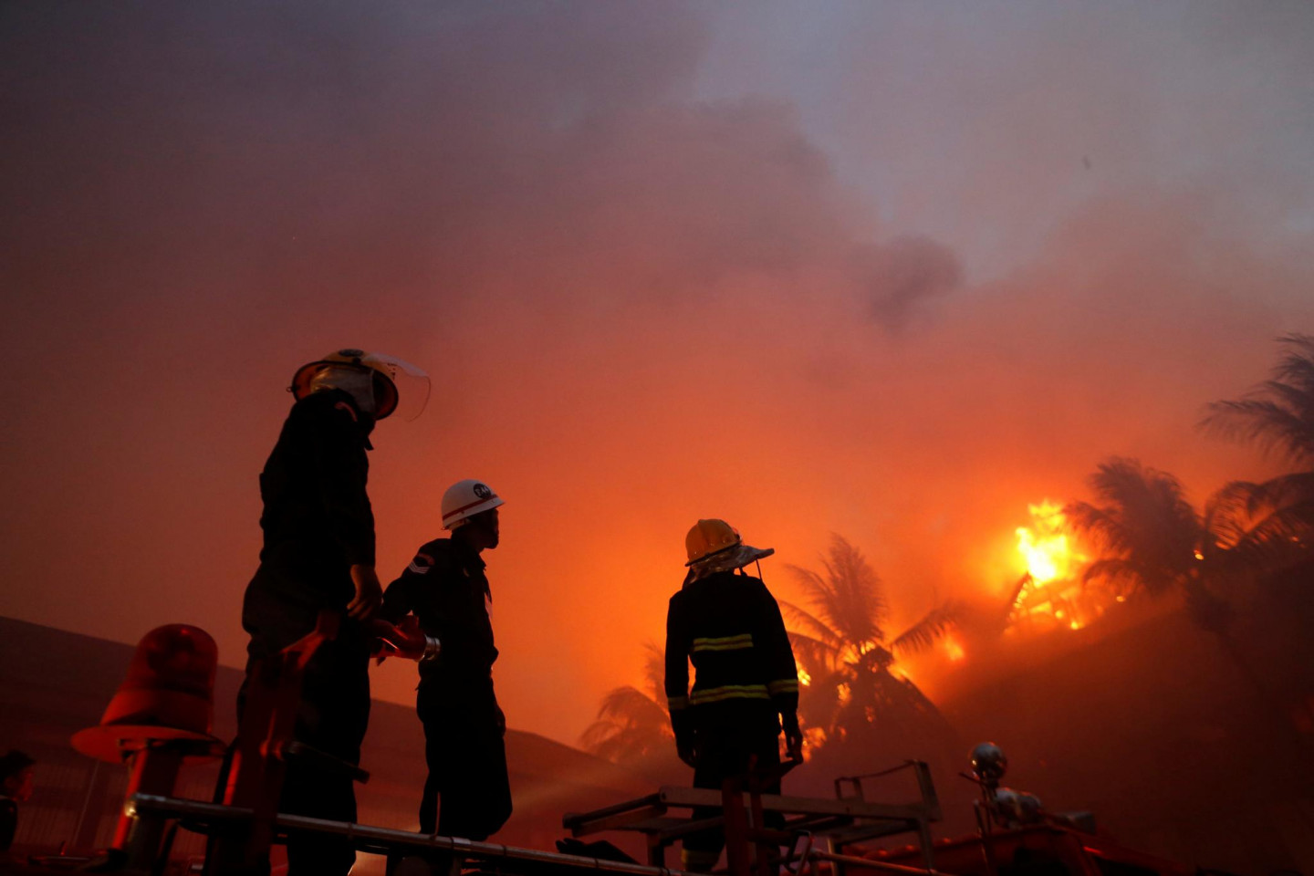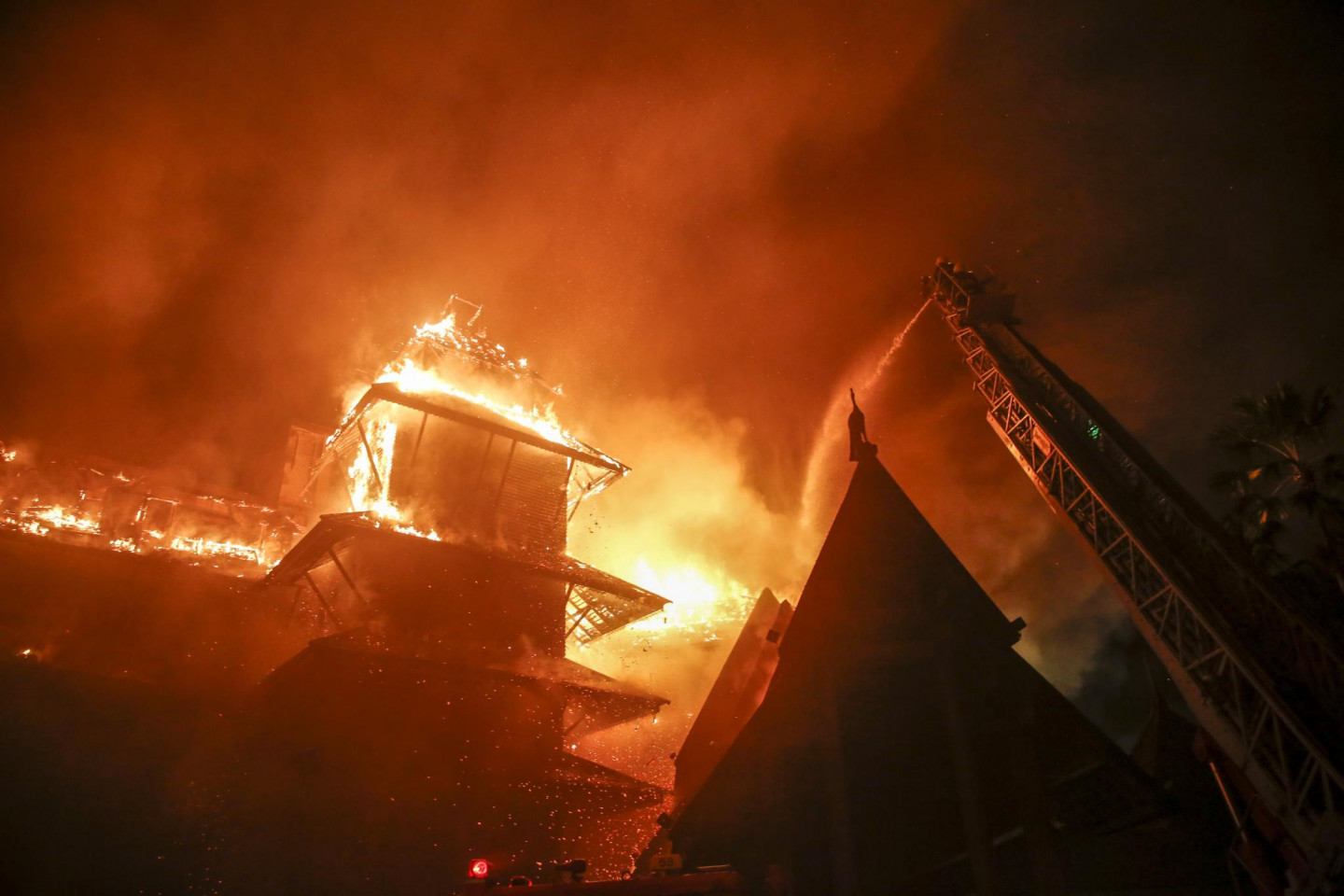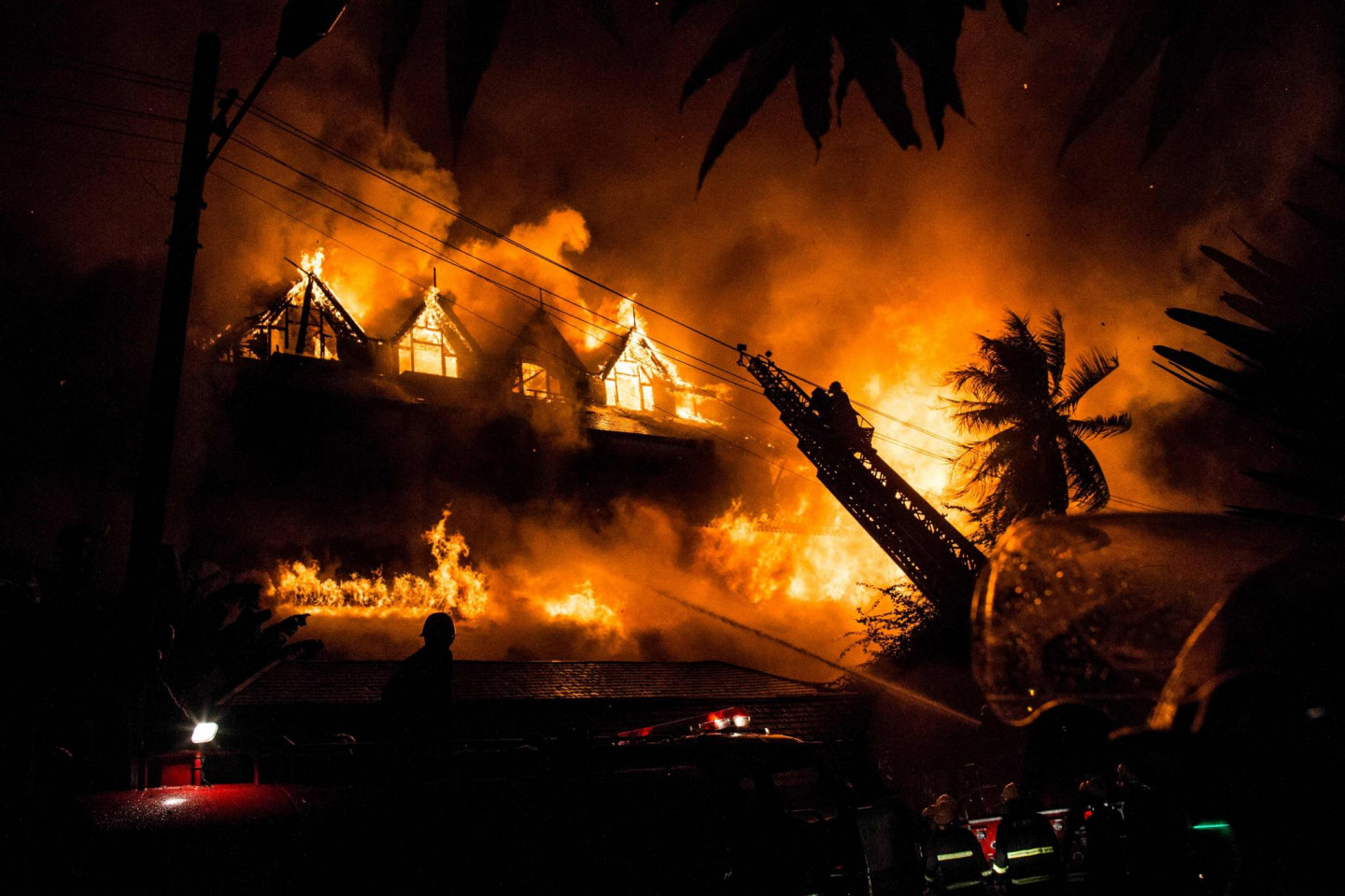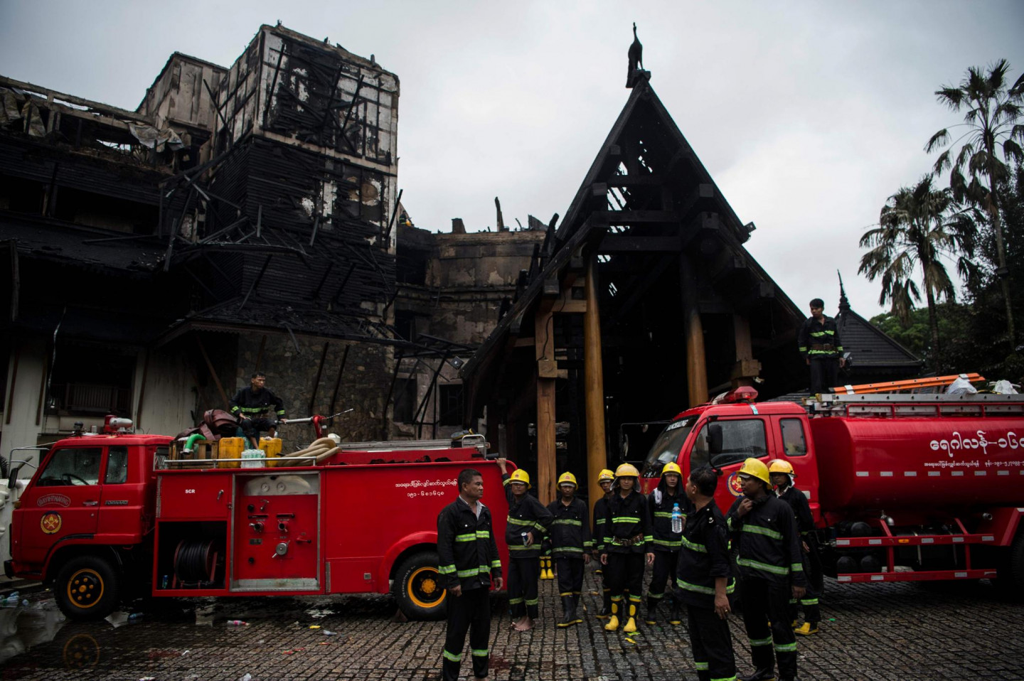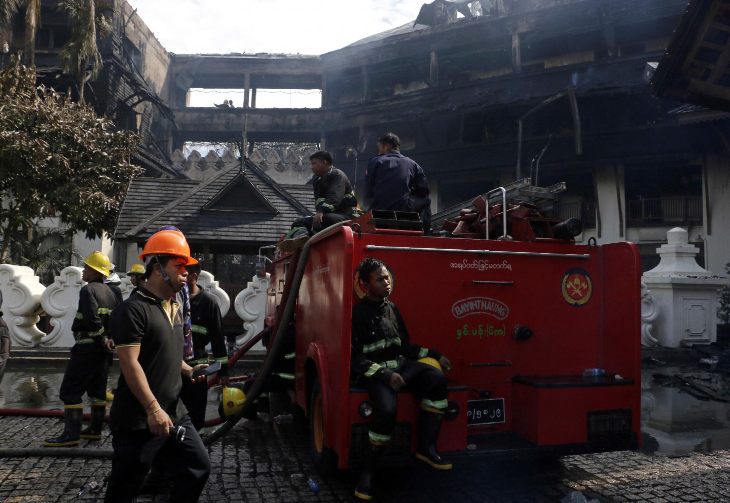 Pamatīgas liesmas noposta skaistu viesnīcu Mjanmā