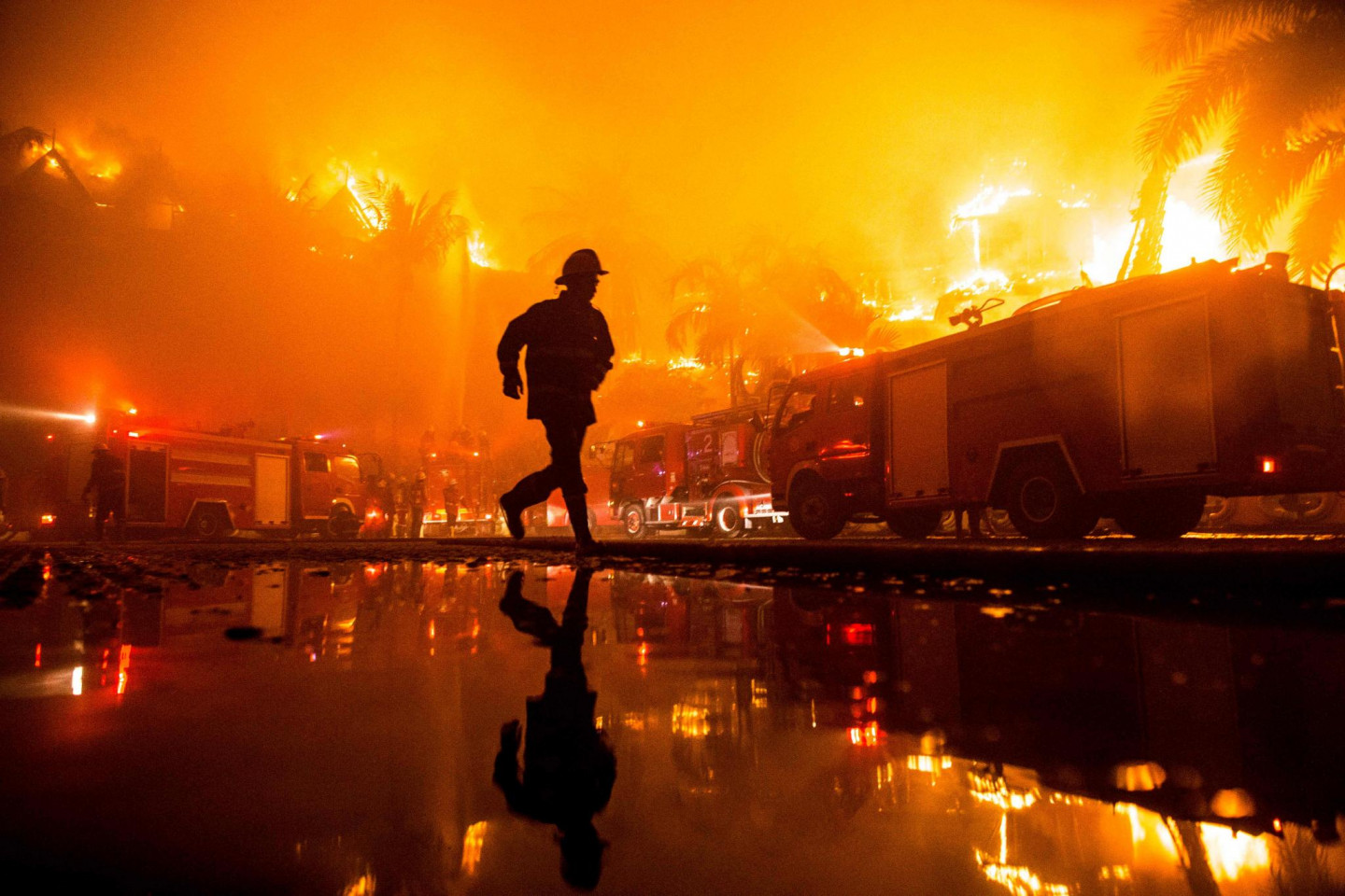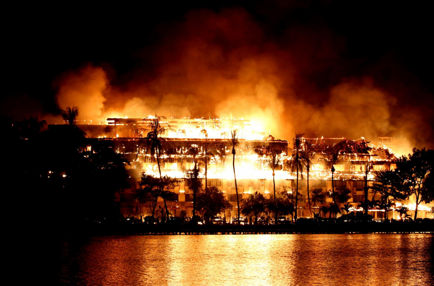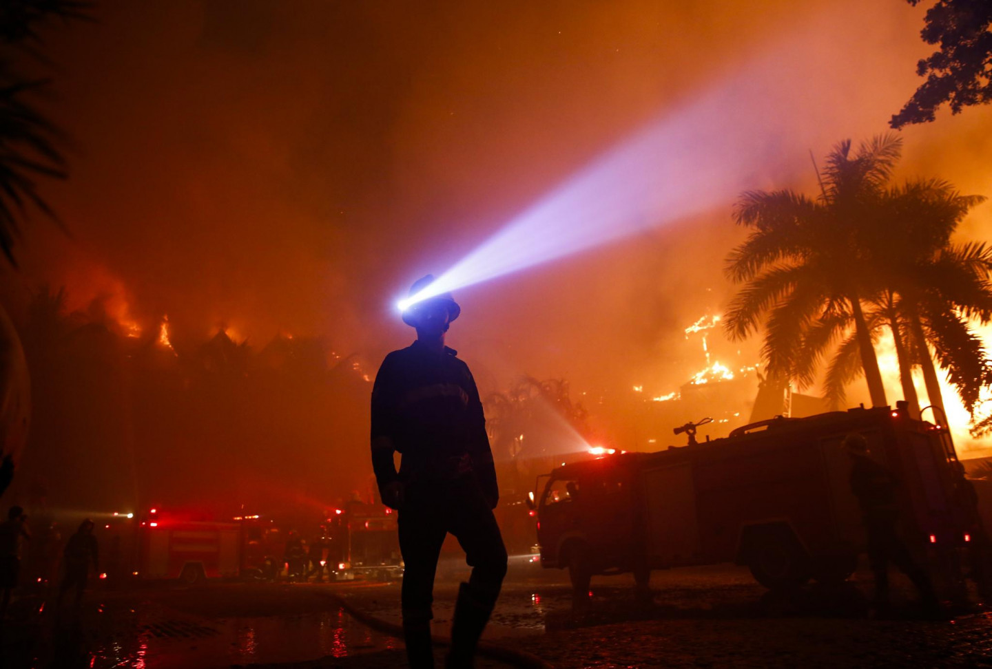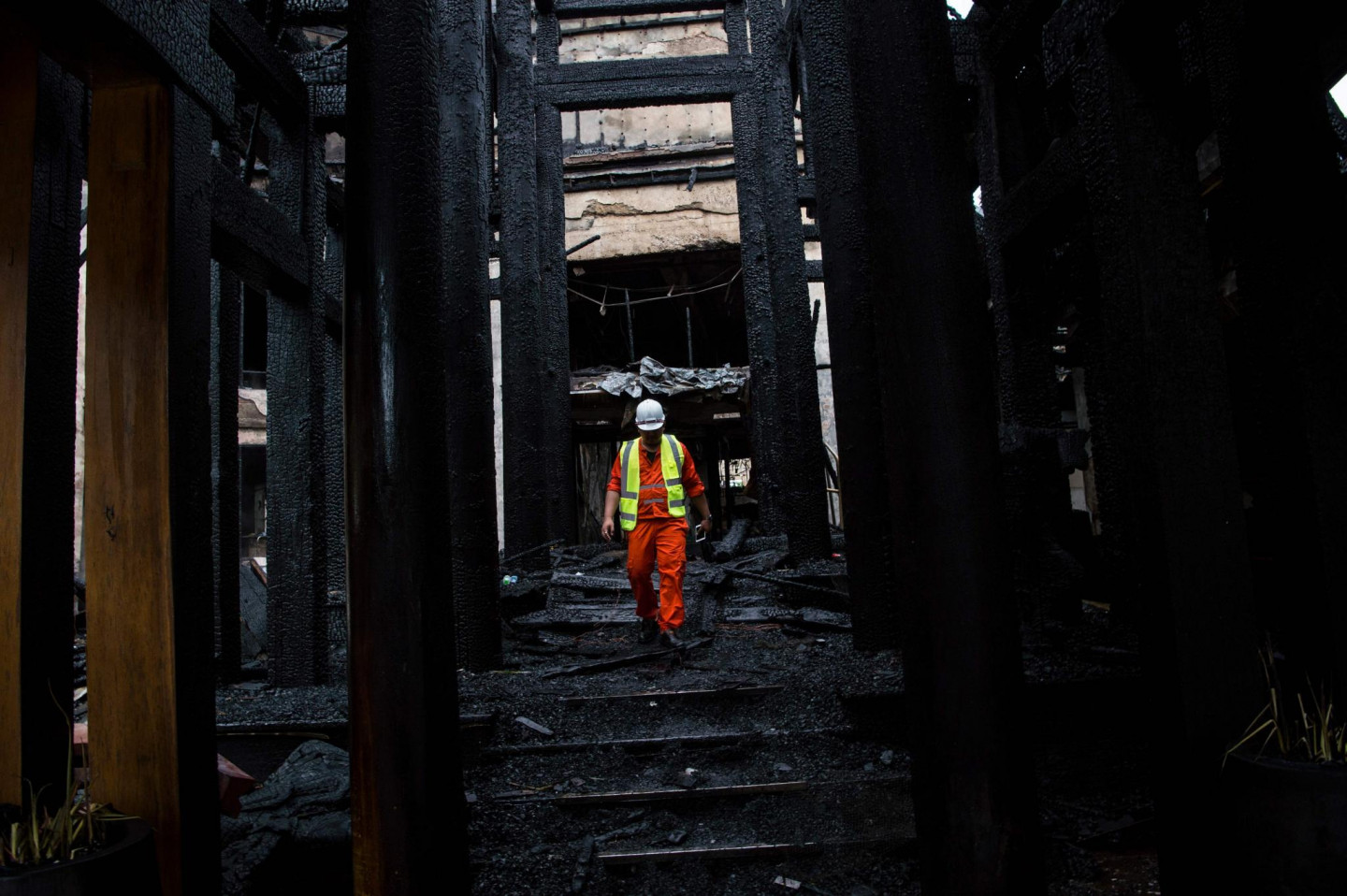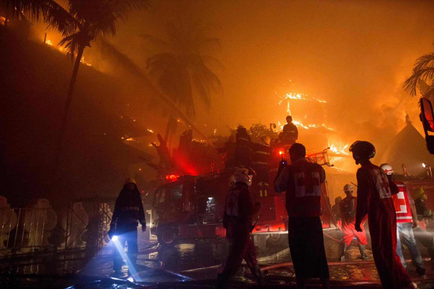 Pamatīgas liesmas noposta skaistu viesnīcu Mjanmā