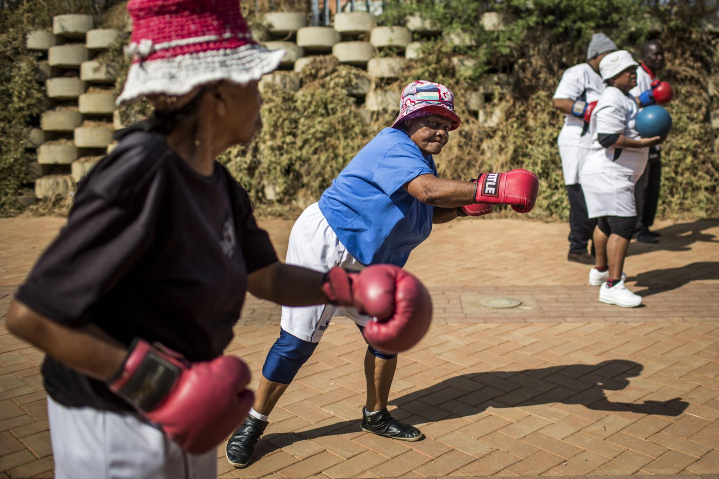 Ziņu aģentūras "Reuters" fotogrāfiem izdevies iemūžināt, kā boksa turnīram gatavojas dāmas gados Dienvidāfrikā.