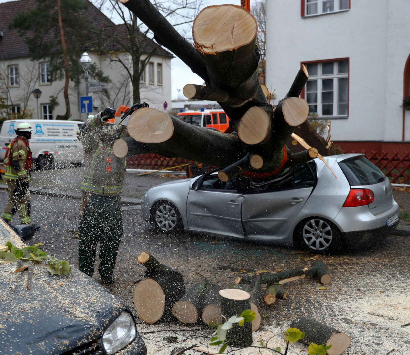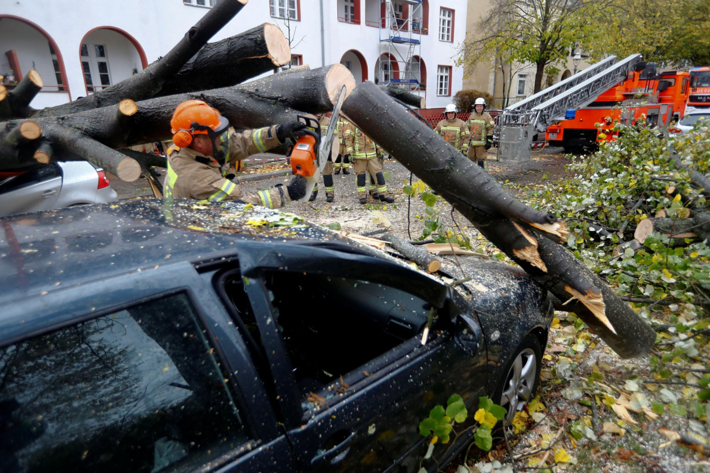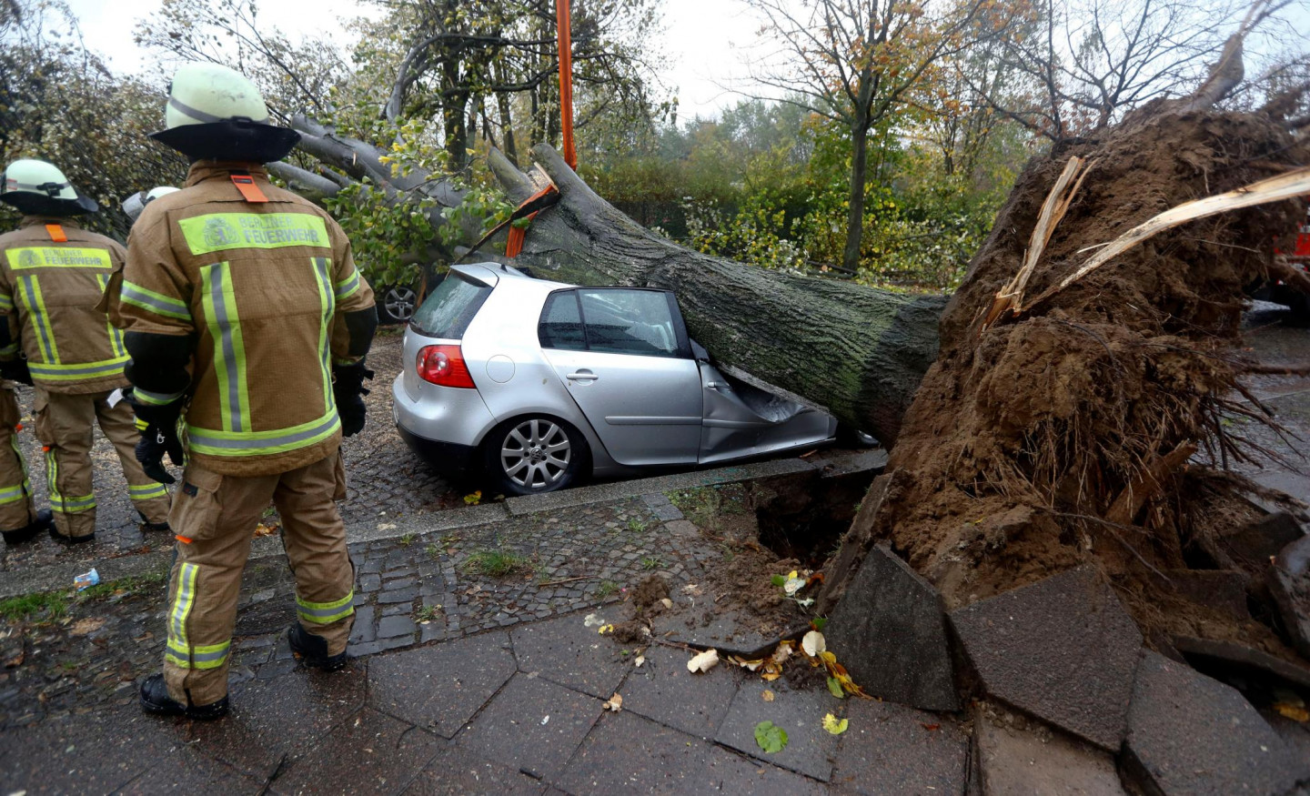 Svētdien daudzviet Eiropā izplatīts brīdinājums par spēcīgām vēja brāzmām. Vētra sasniegusi arī Vāciju, kur kā redzams uzņemtajos attēlos, nolauzti koki, sabojātas ēku fasādes.