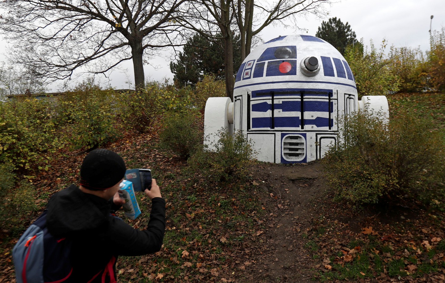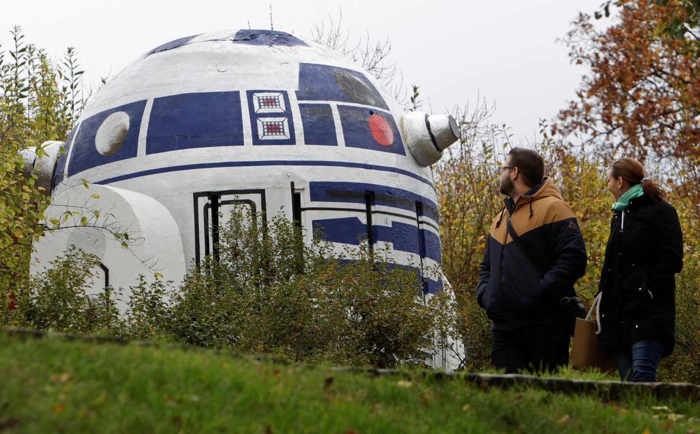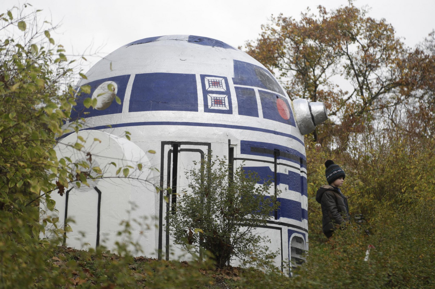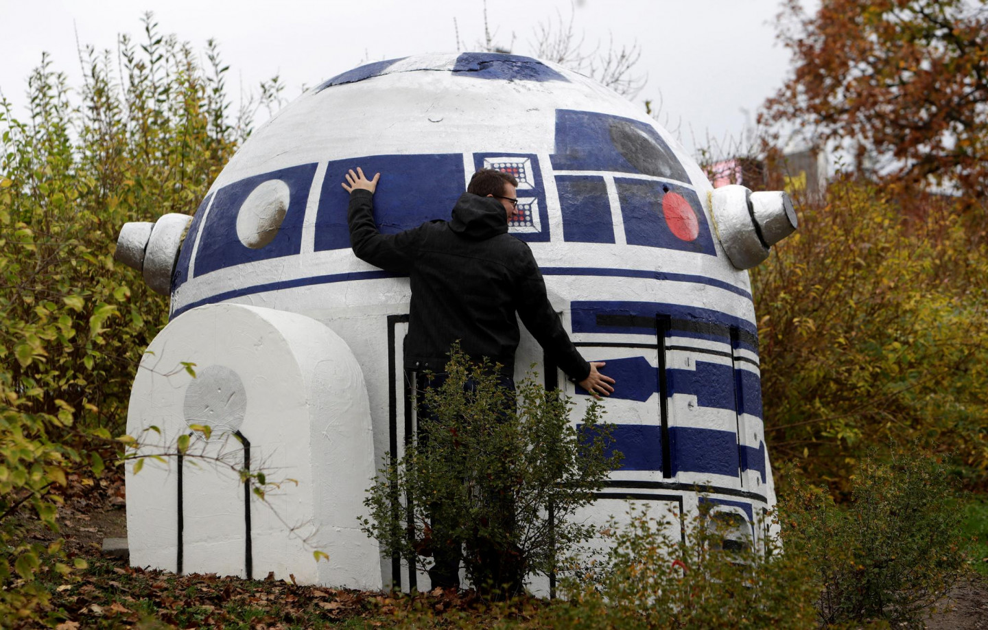 Nezināmi ielu mākslinieki Čehijā, Prāgā, bumbu patvertni pārveidojuši par vienu no kulta filmas "zvaigžņu kari" tēliem.