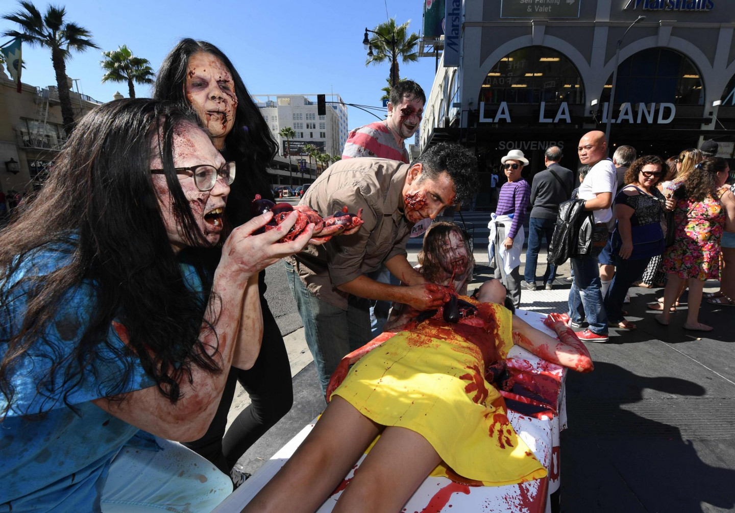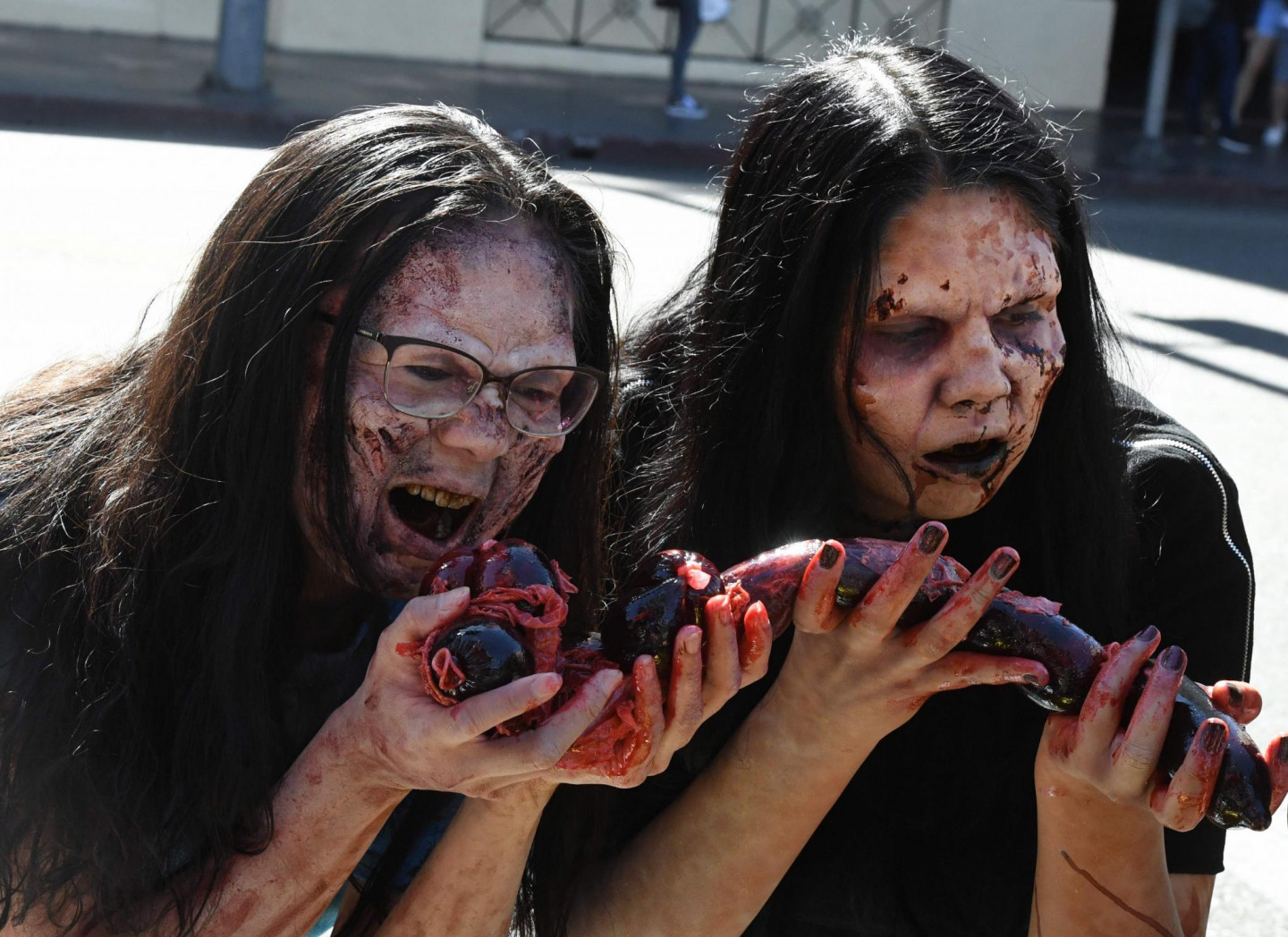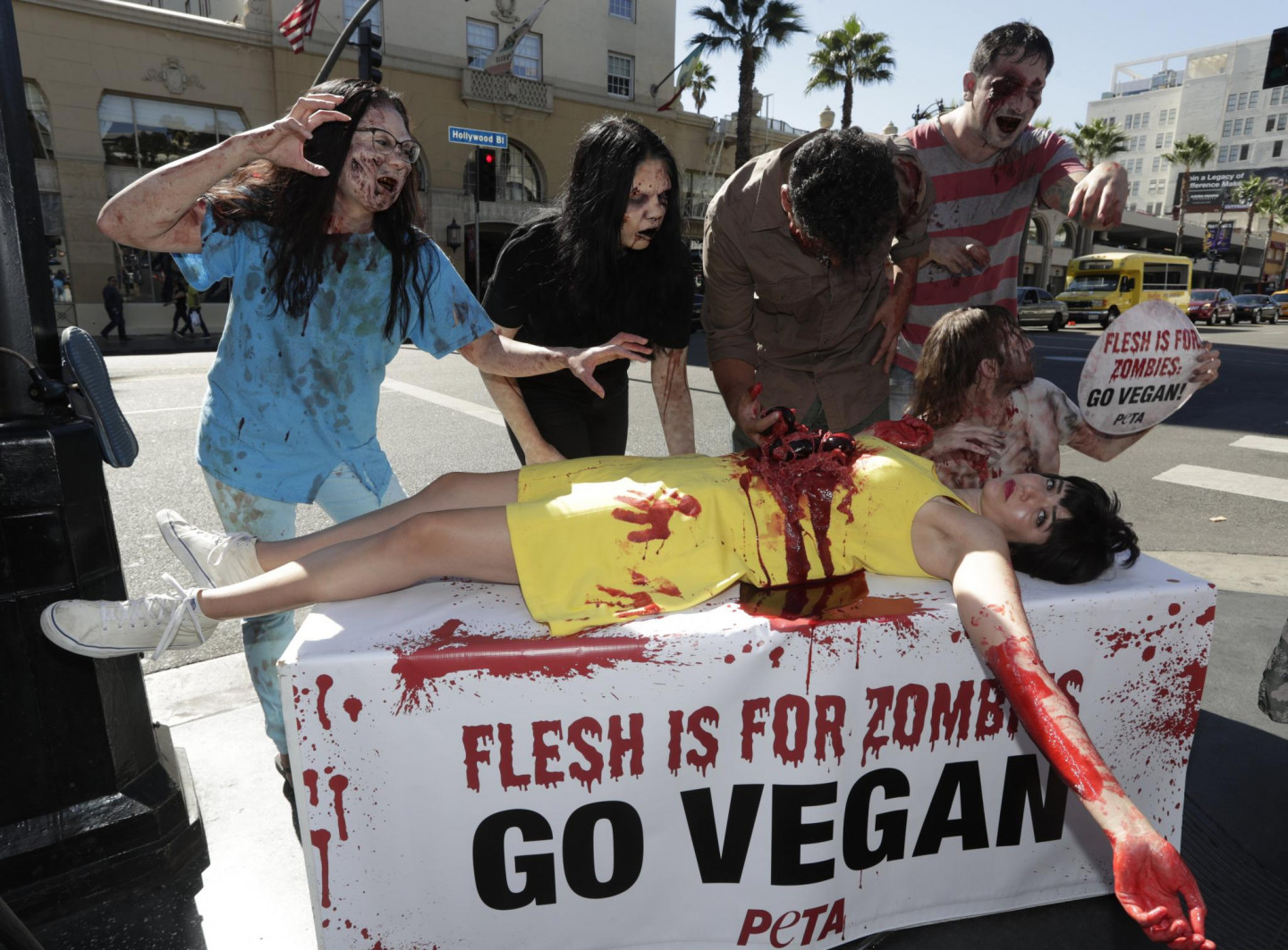 Oktobra beigās neliels pulks dzīvnieku aizstāvju pulcējušies mītiņā Kalifornijā, kur tērpti zombiju kostīmos protestējuši pret gaļas lietošanu uzturā.