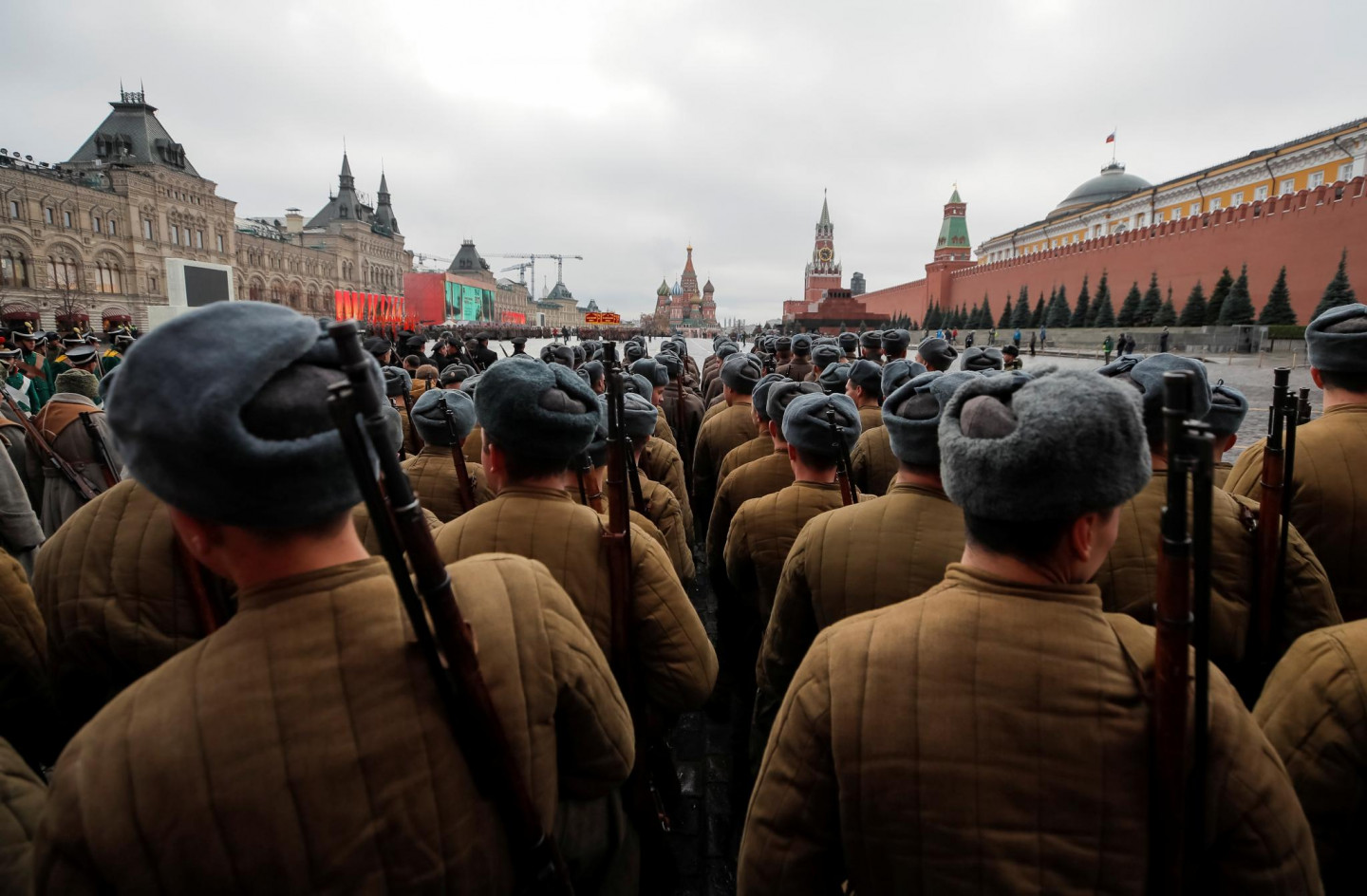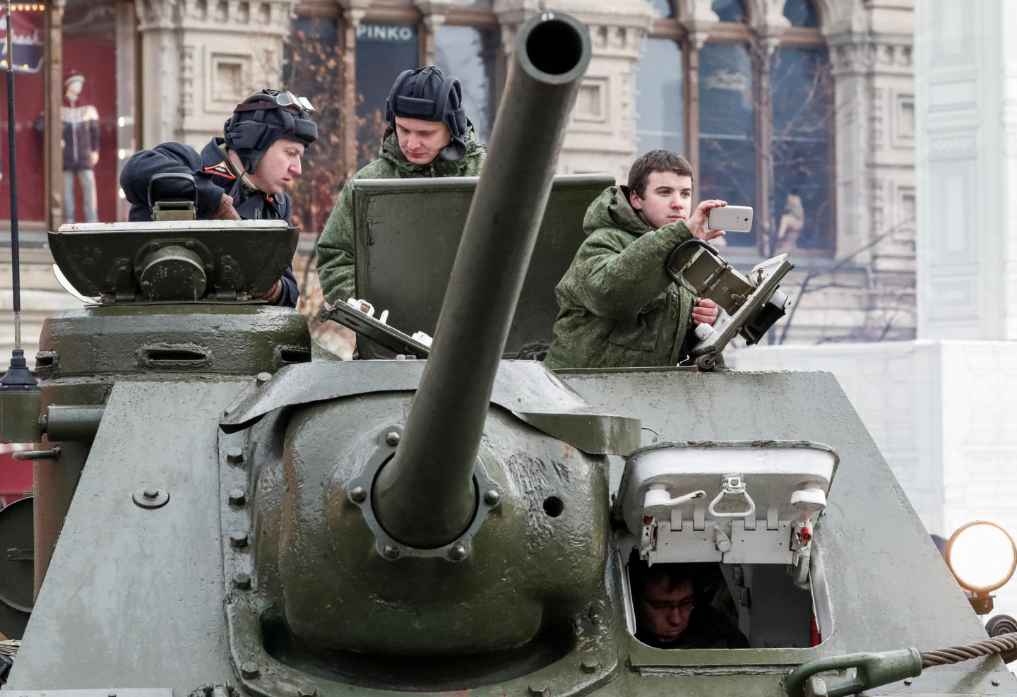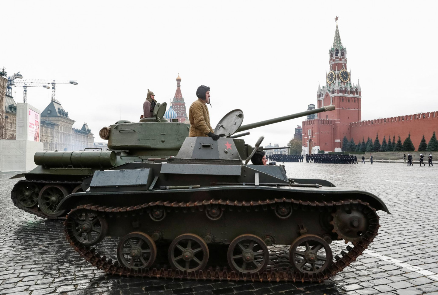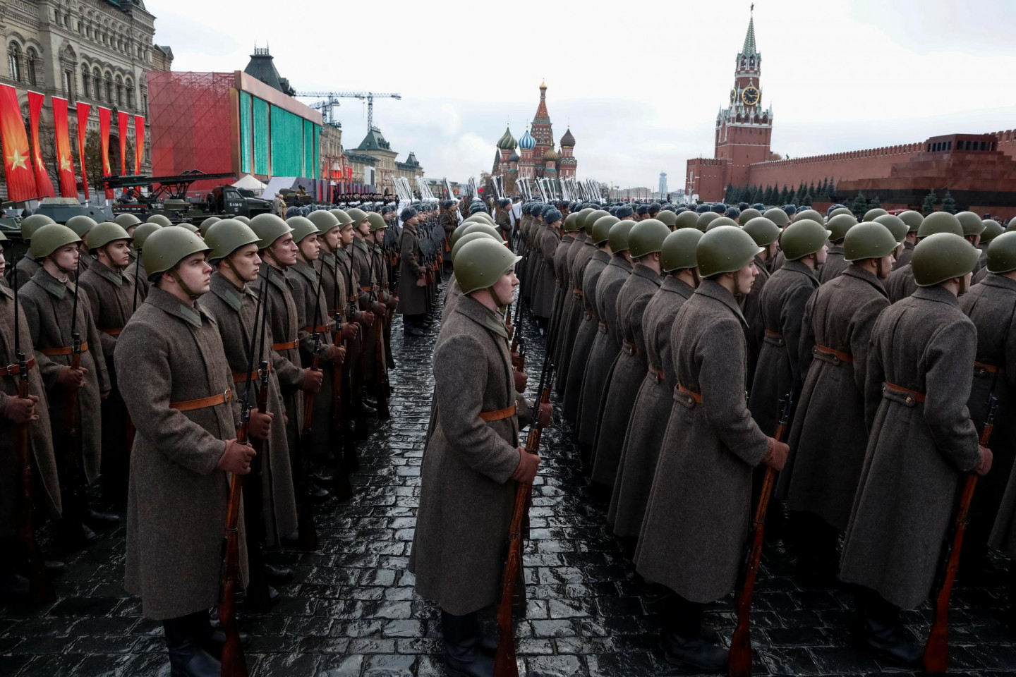 Svētdien Krievijā noticis armijas parādes mēģinājums, kurā karavīri tērpti 1941.gada Sarkanās armijas tērpos.