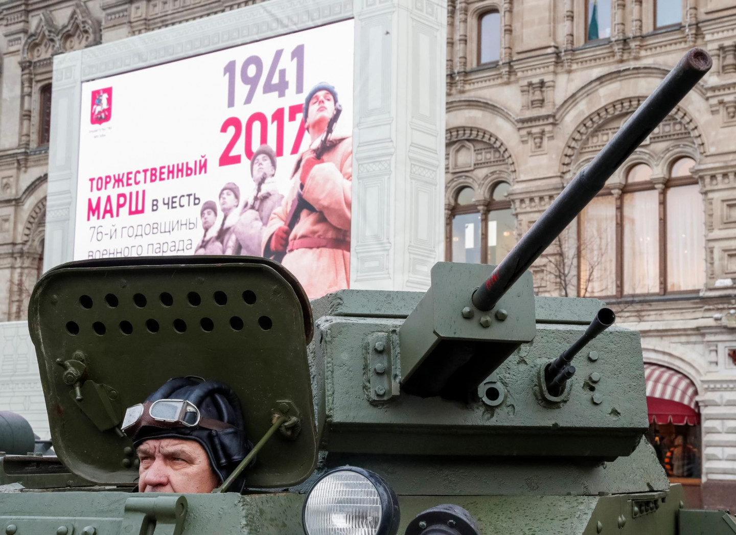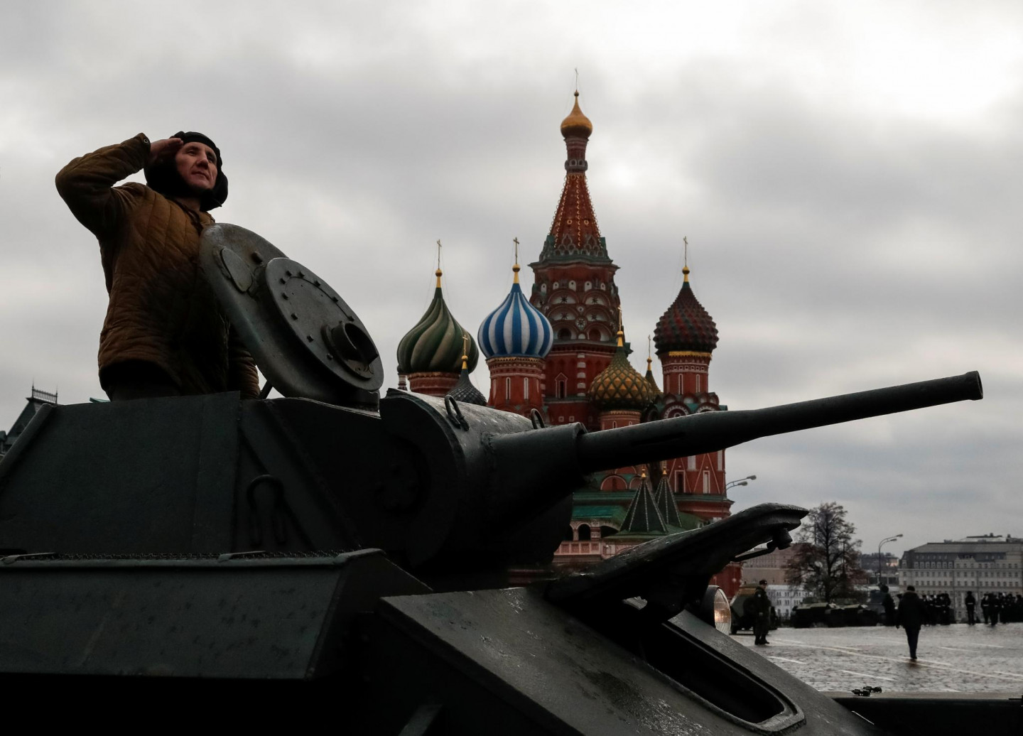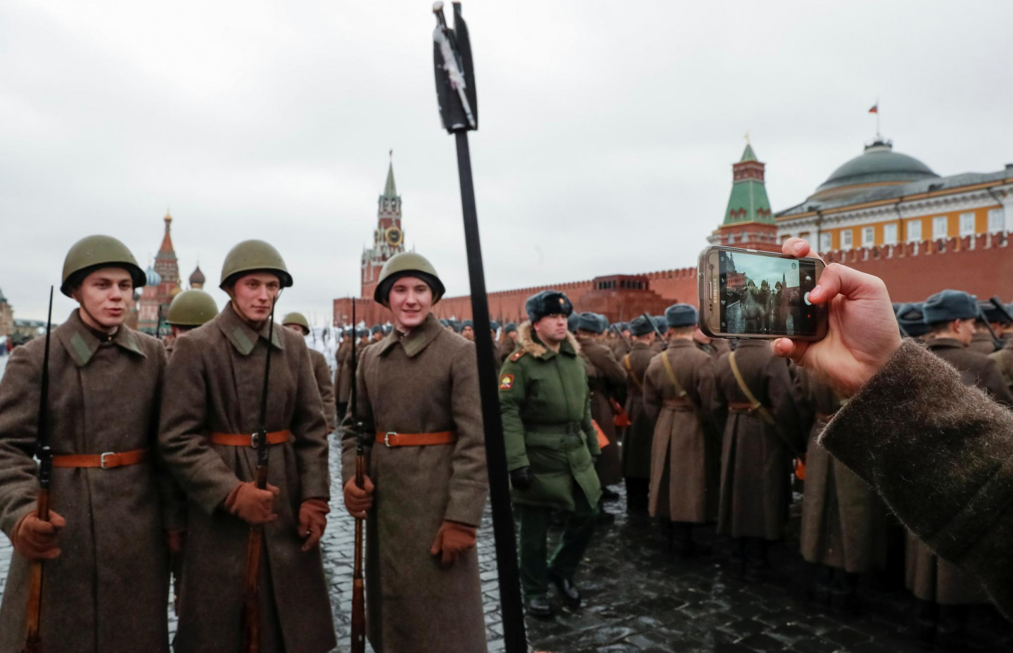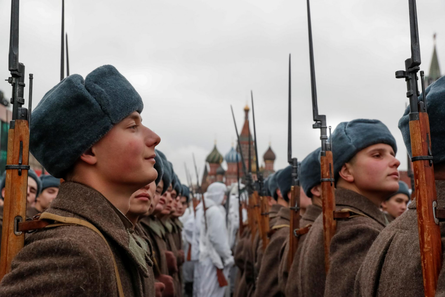 Svētdien Krievijā noticis armijas parādes mēģinājums, kurā karavīri tērpti 1941.gada Sarkanās armijas tērpos.
