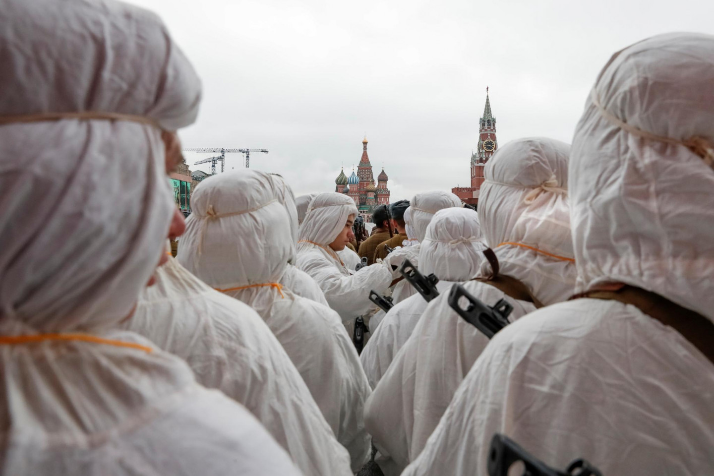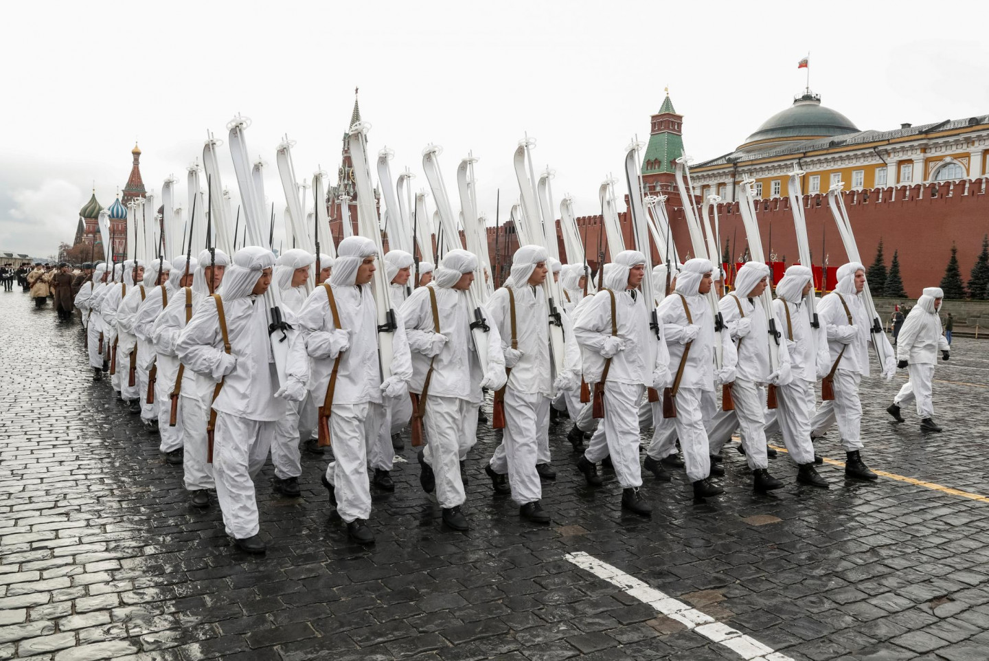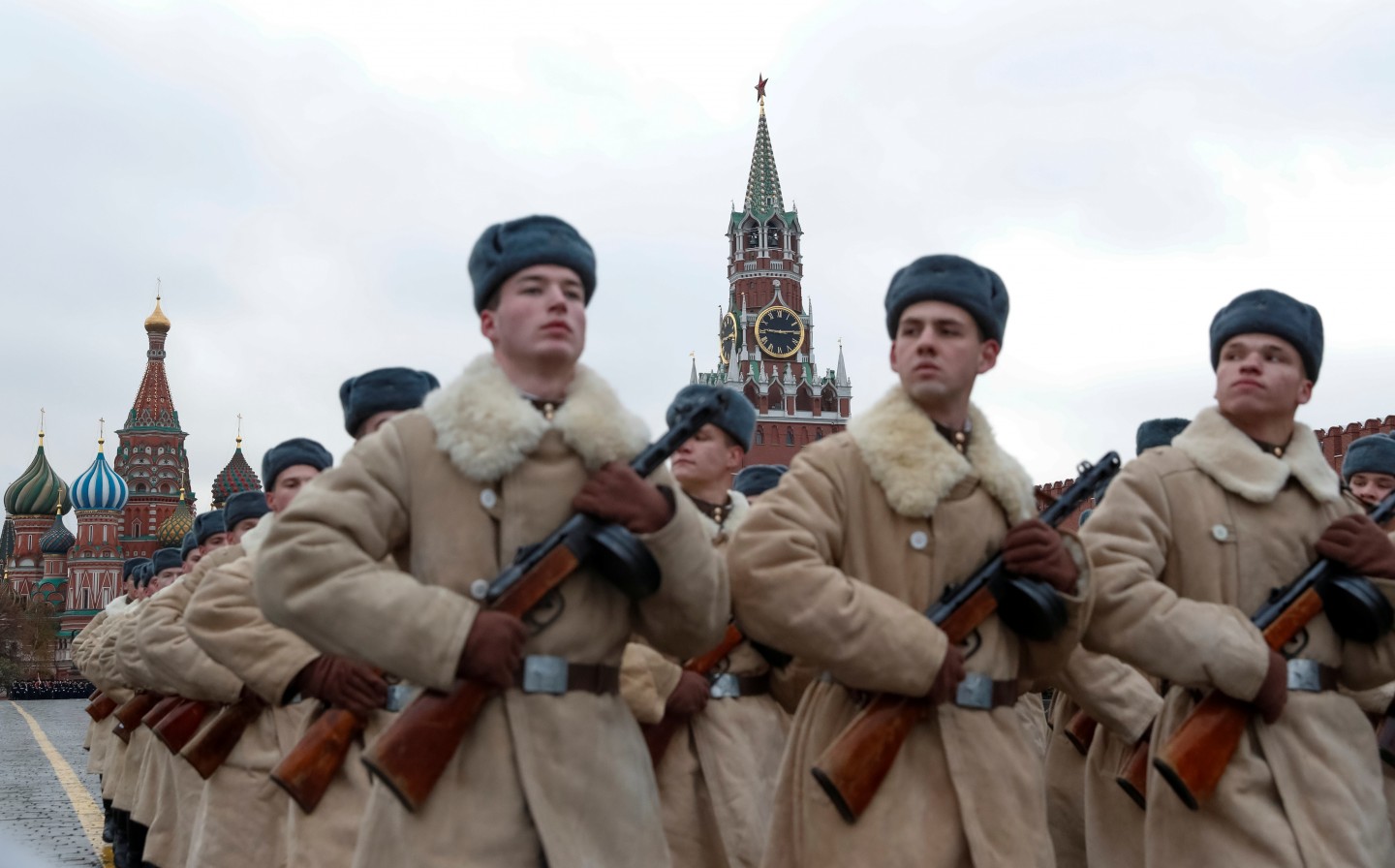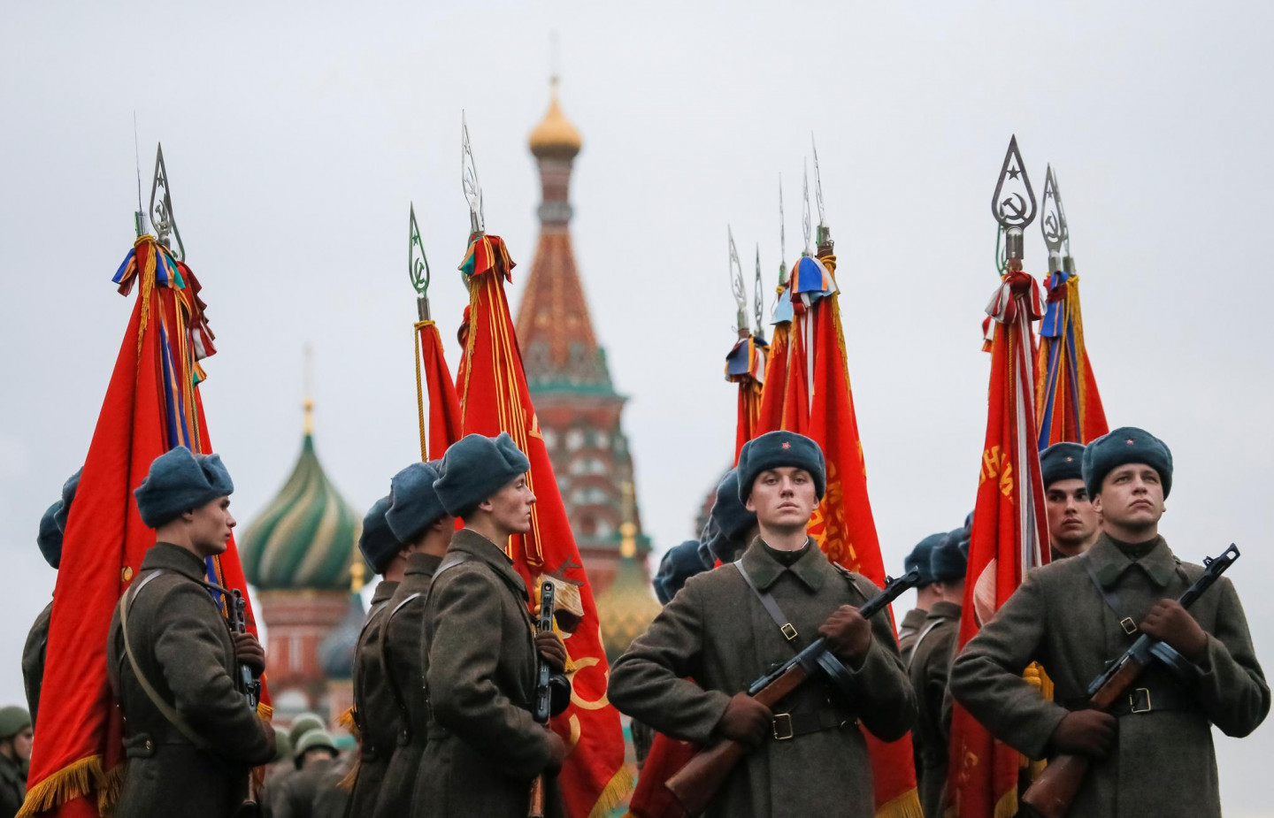 Svētdien Krievijā noticis armijas parādes mēģinājums, kurā karavīri tērpti 1941.gada Sarkanās armijas tērpos.