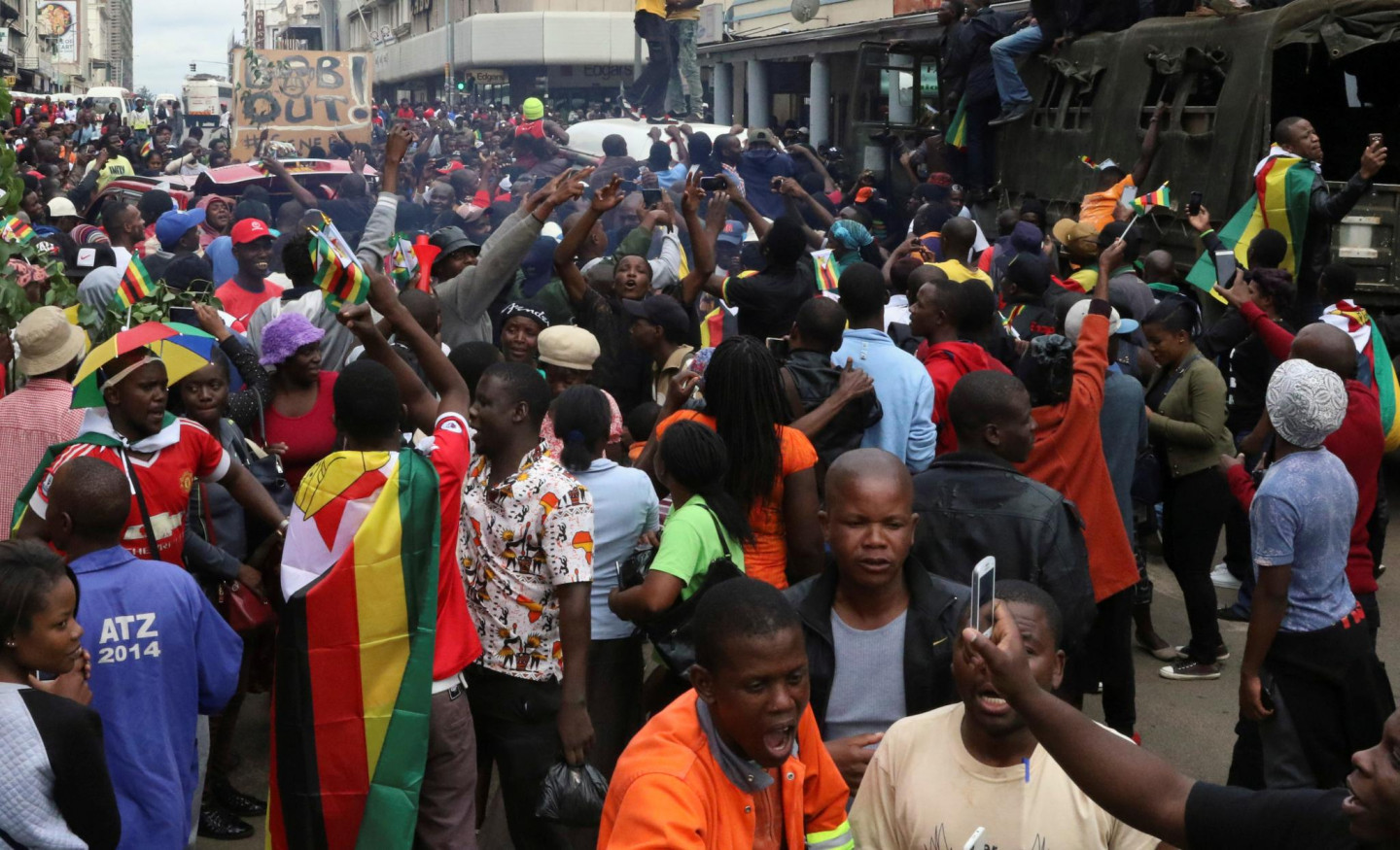Desmitiem tūkstoši zimbabviešu sestdien izgāja galvaspilsētas Harares ielās, aicinot valsts prezidentu Robertu Mugabi atkāpties.