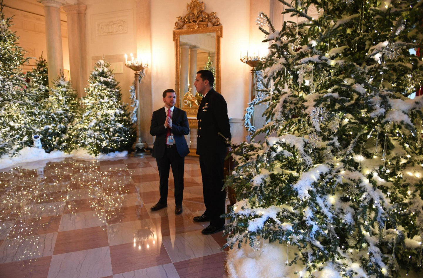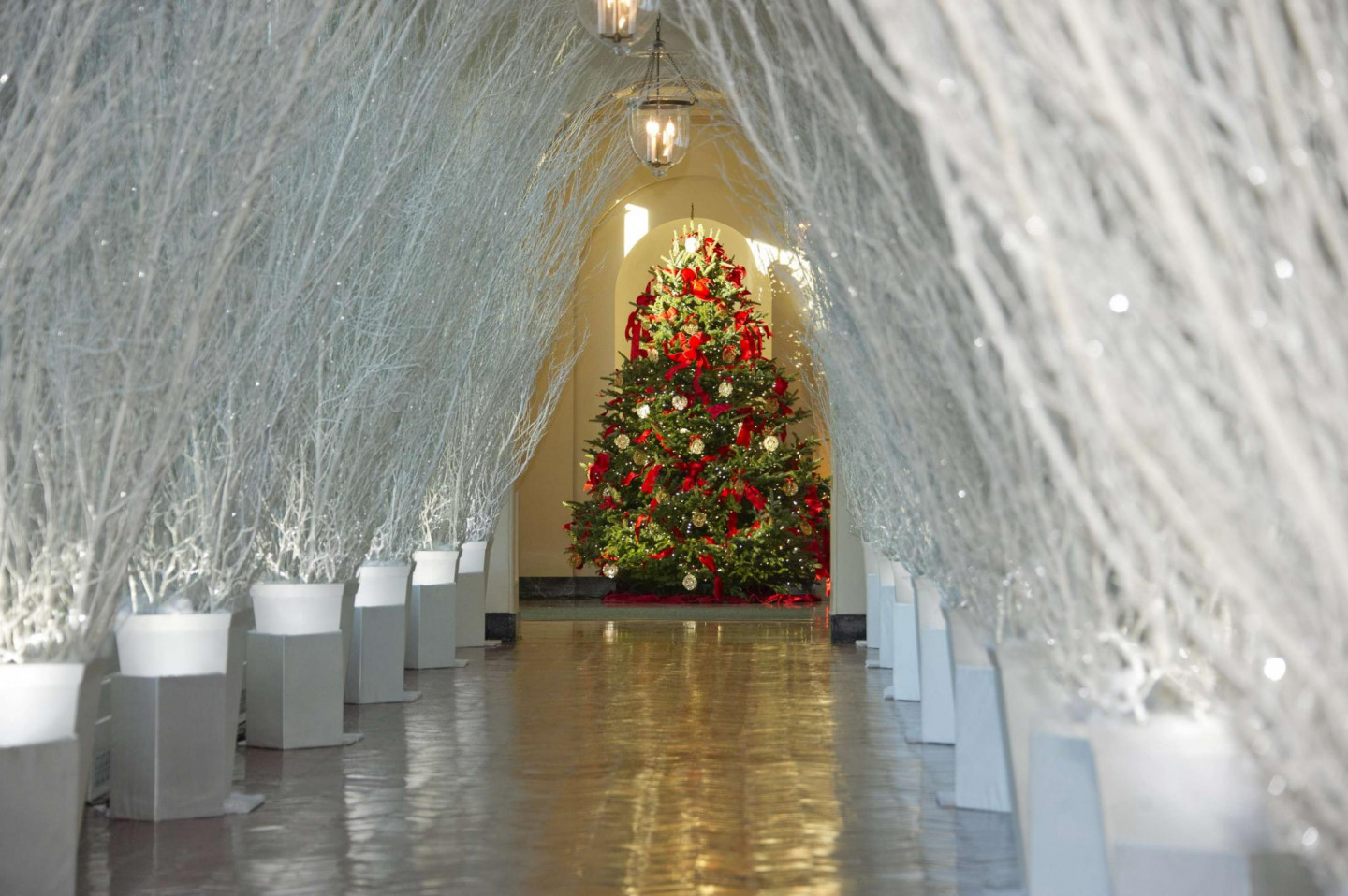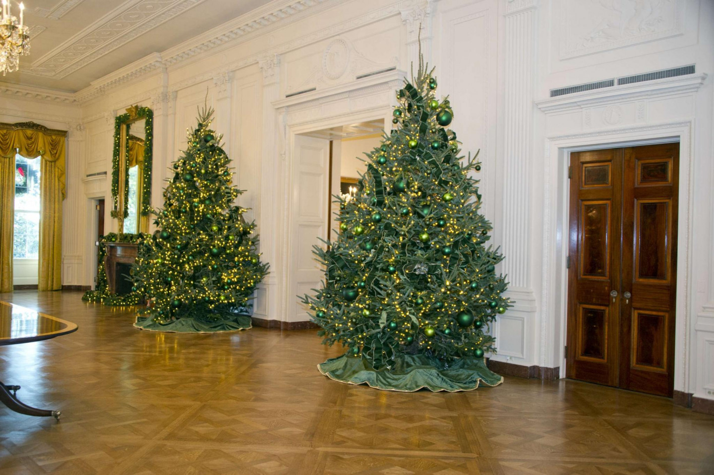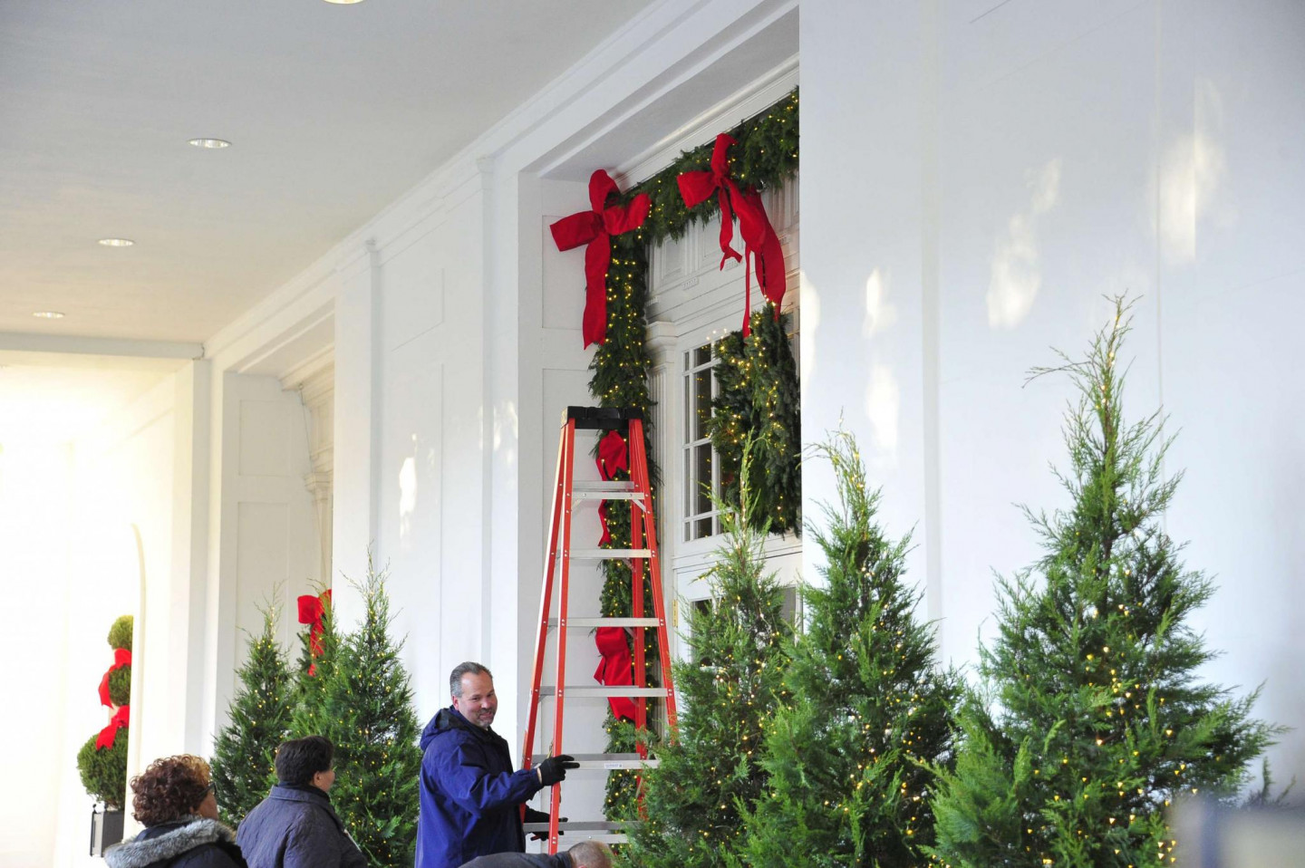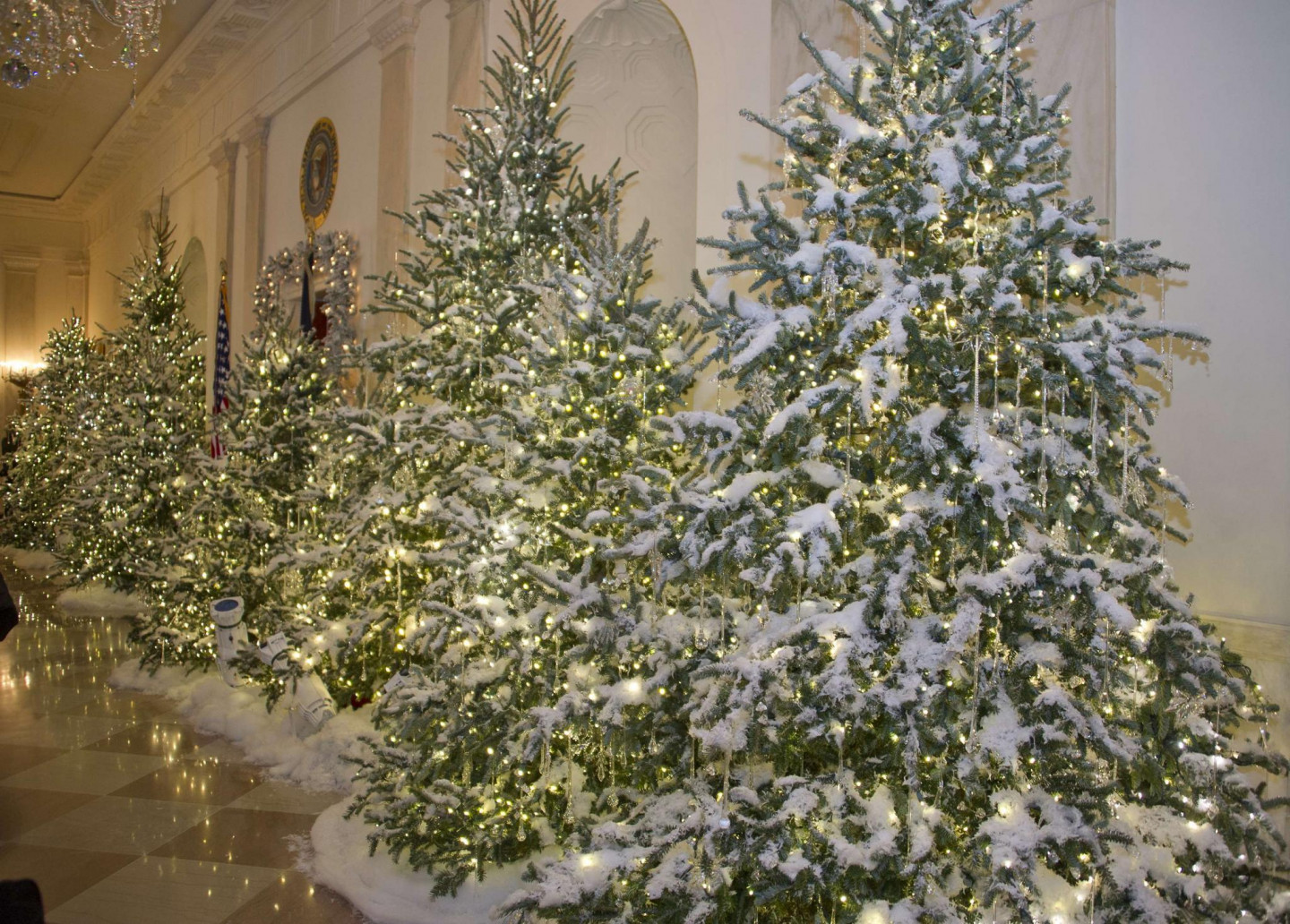 Vairākas nedēļas pirms Ziemassvētkiem ASV pirmā pāra mājvieta Baltais nams rotāts ar svētku dekoriem.