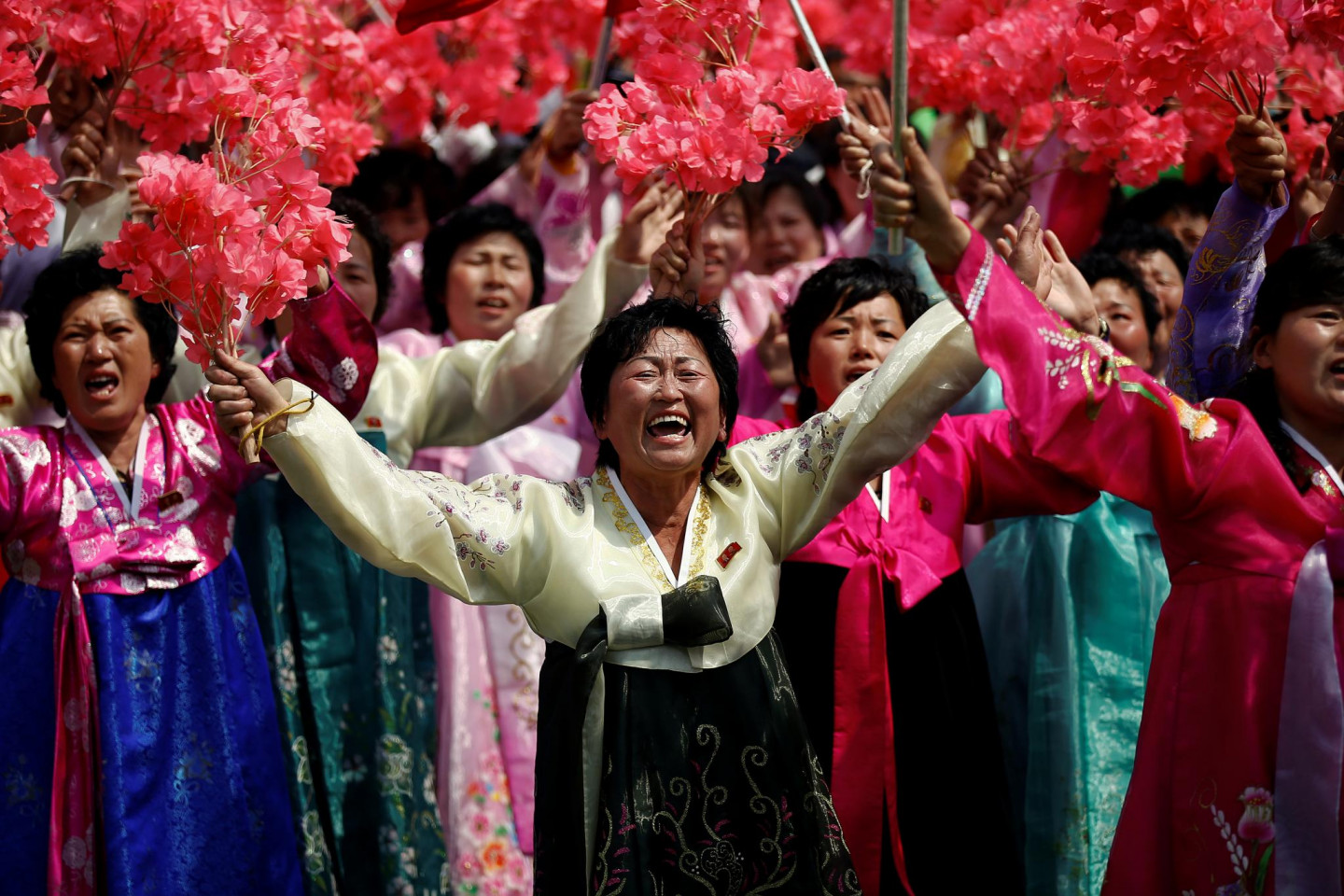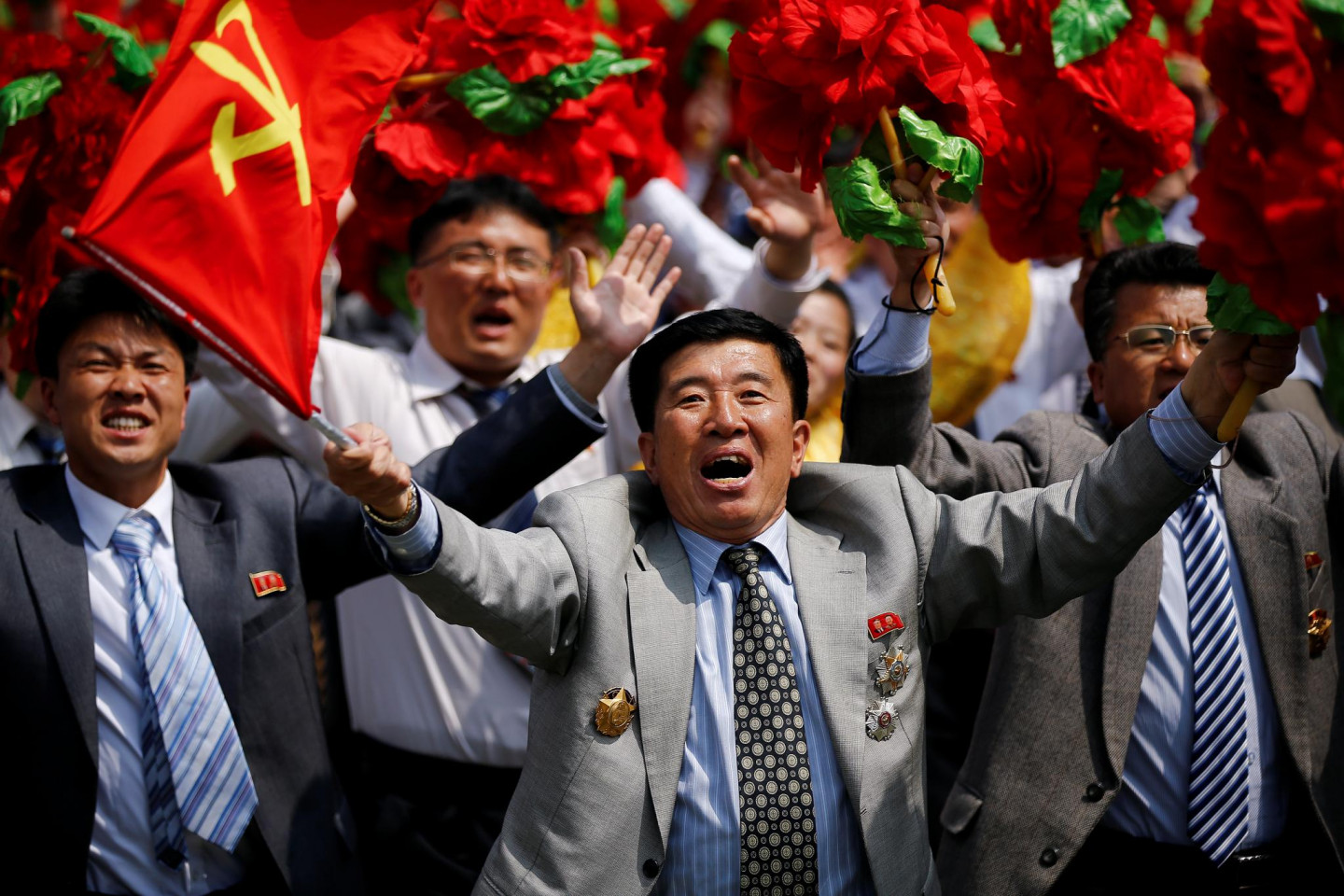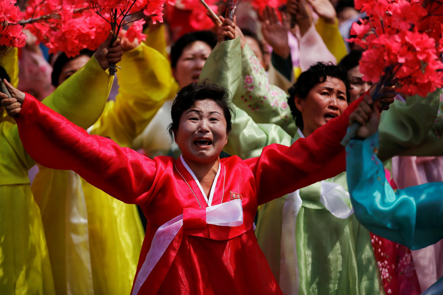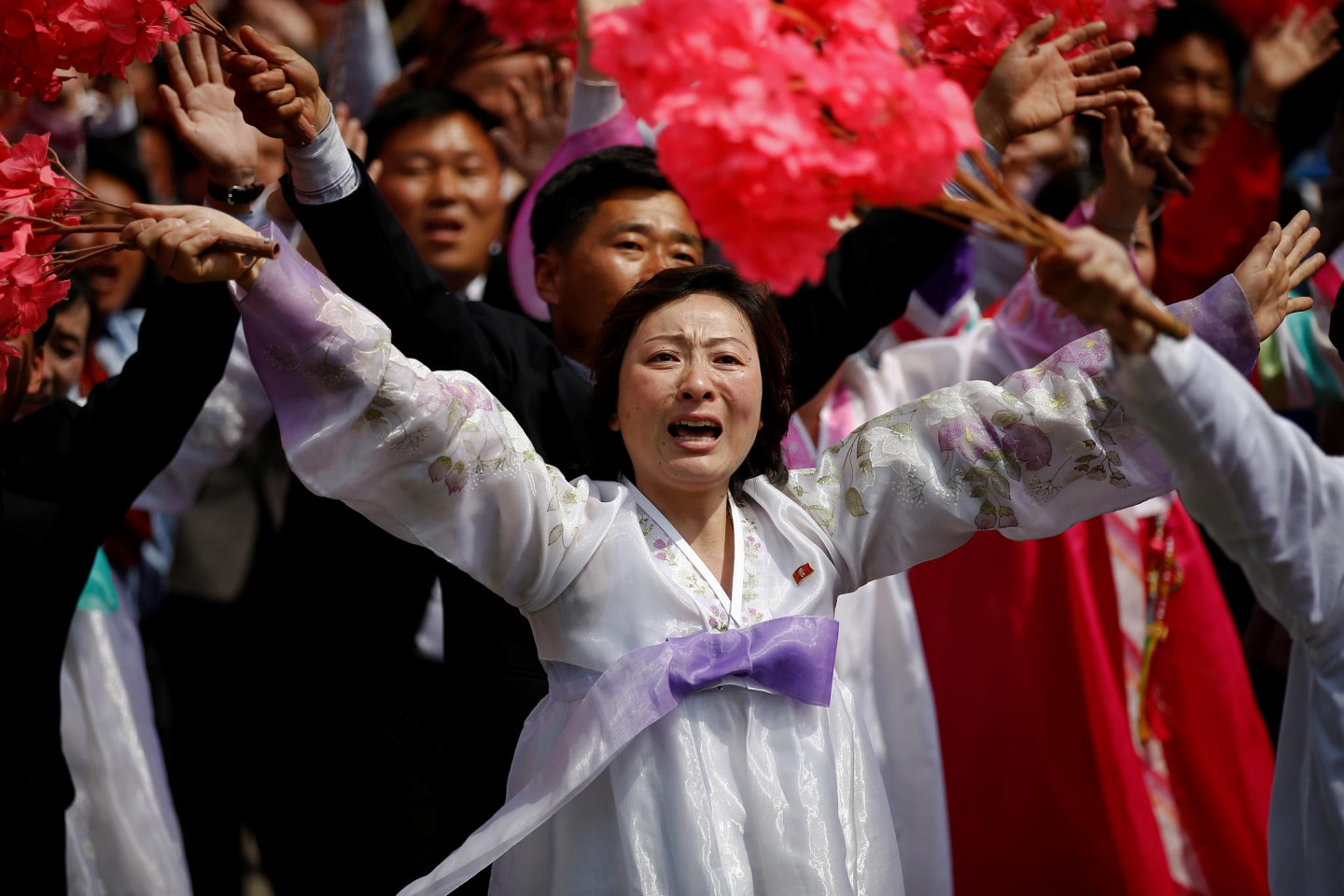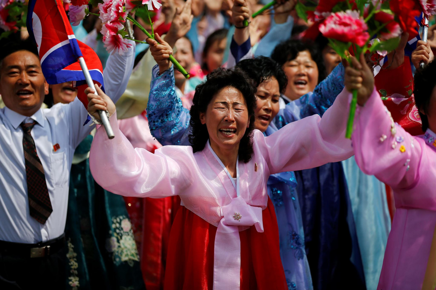 Cilvēki reakcija, ieraugot Ziemeļkorejas līderi Kimu Čenunu militārās parādes laikā.