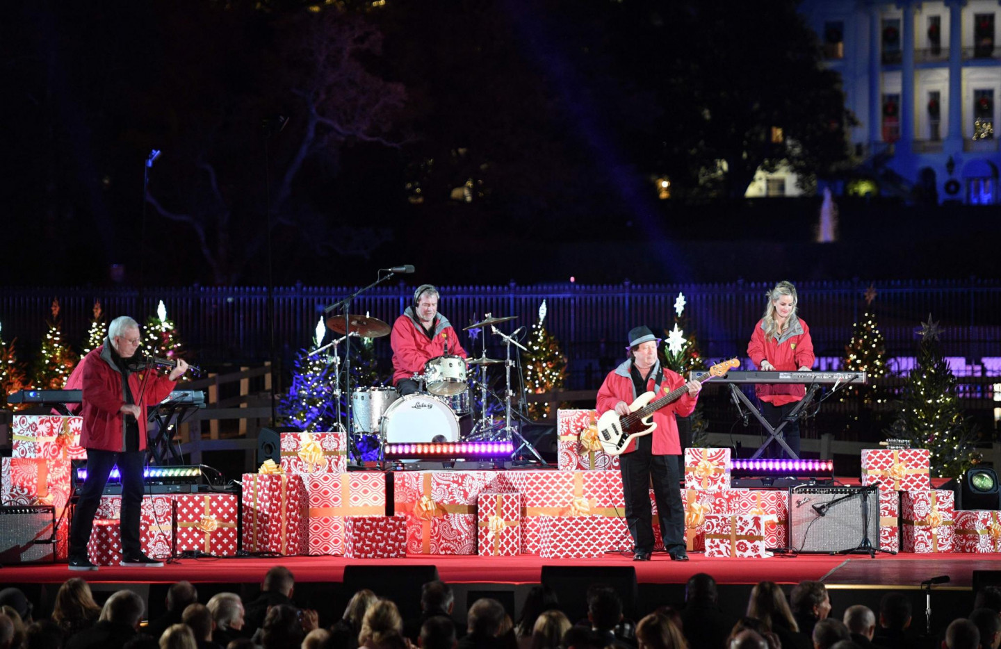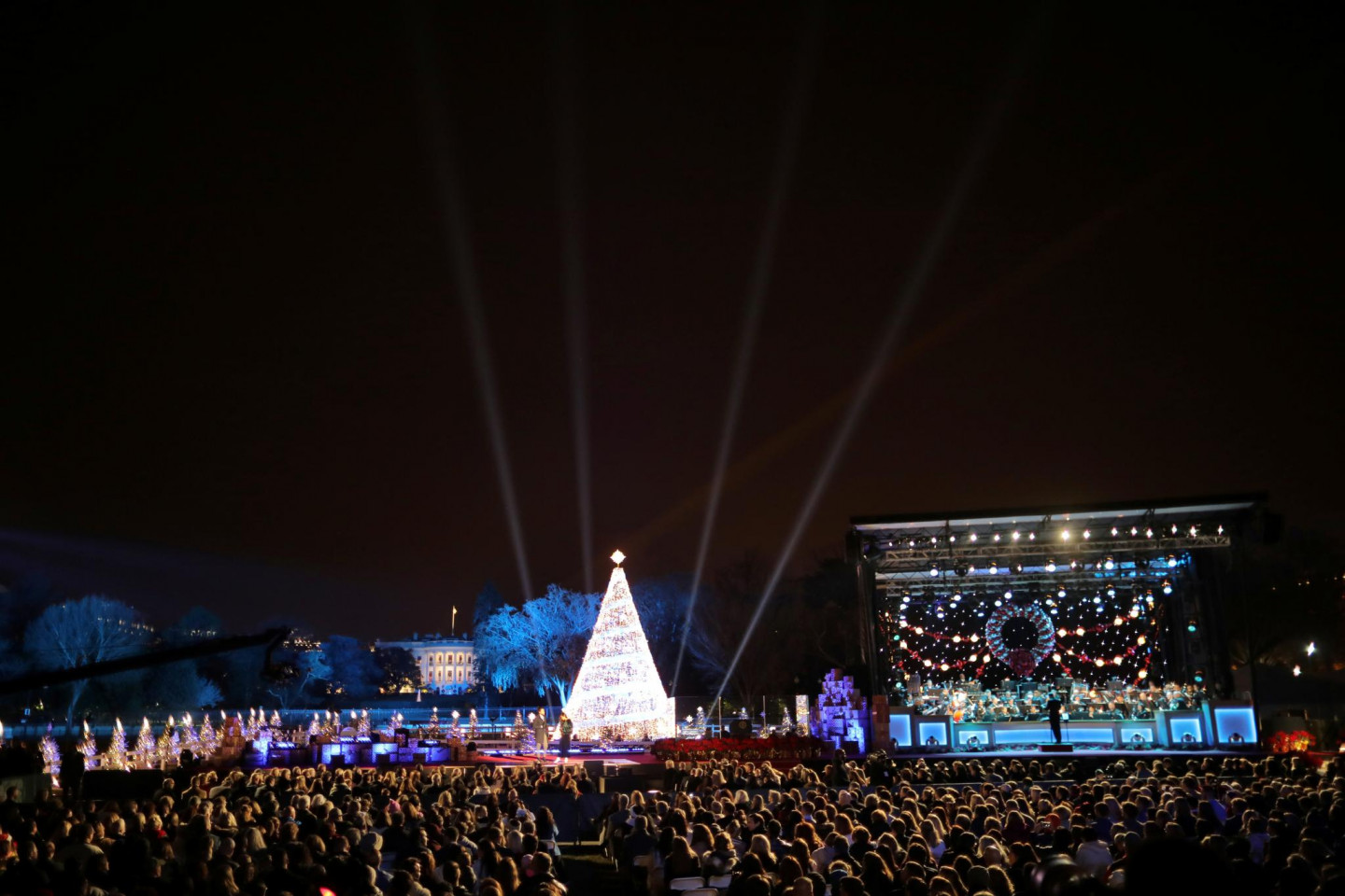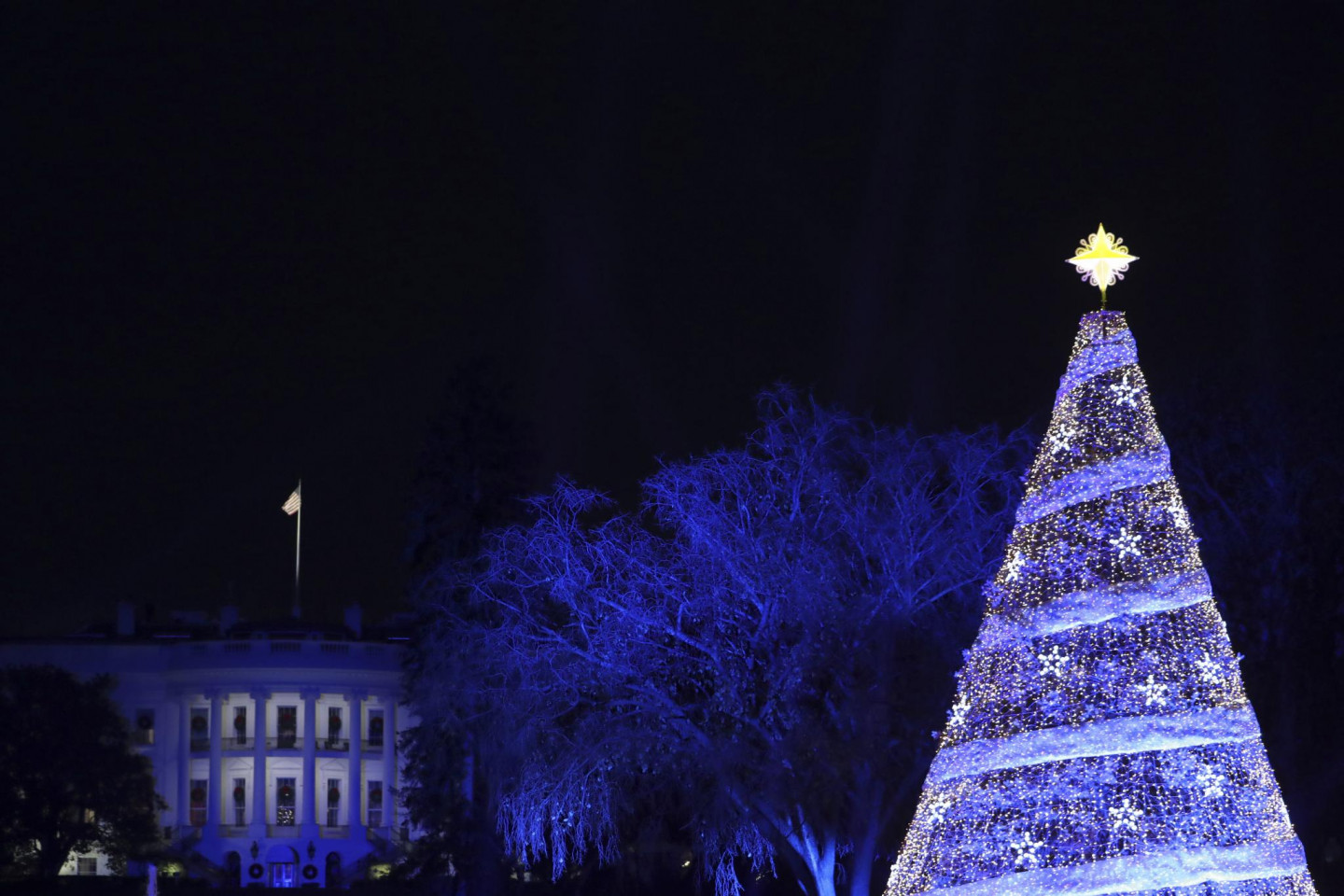 ASV prezidents Donalds Tramps ar ģimeni iededzis Baltā nama Ziemassvētku egli.