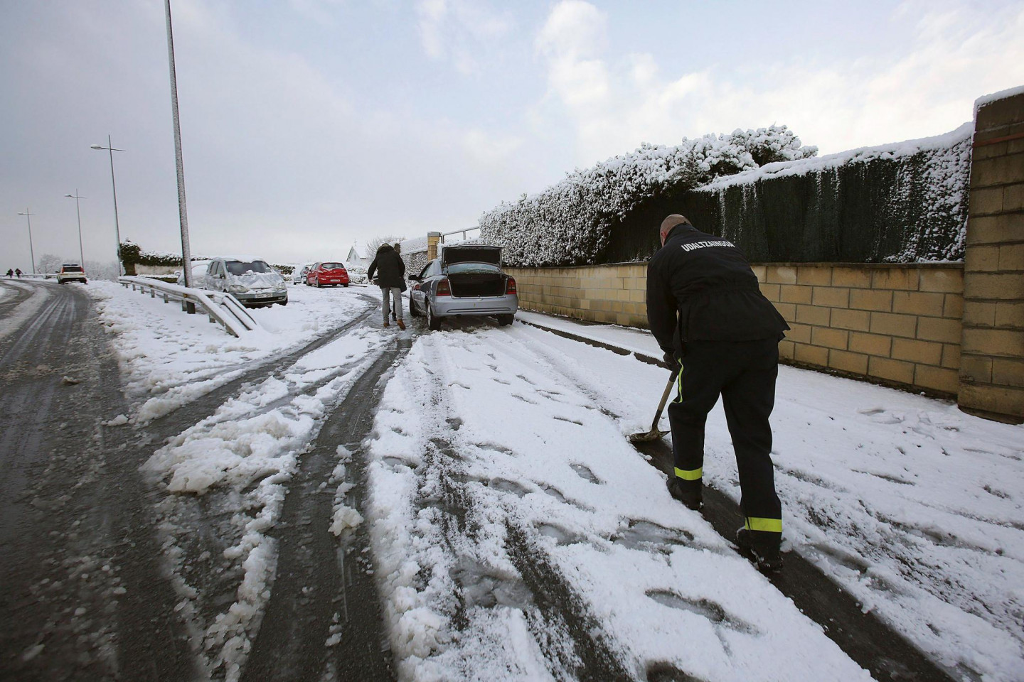 Naktī uz piektdienu pamatīga sniega sega izveidojusies Spānijas ziemeļos.