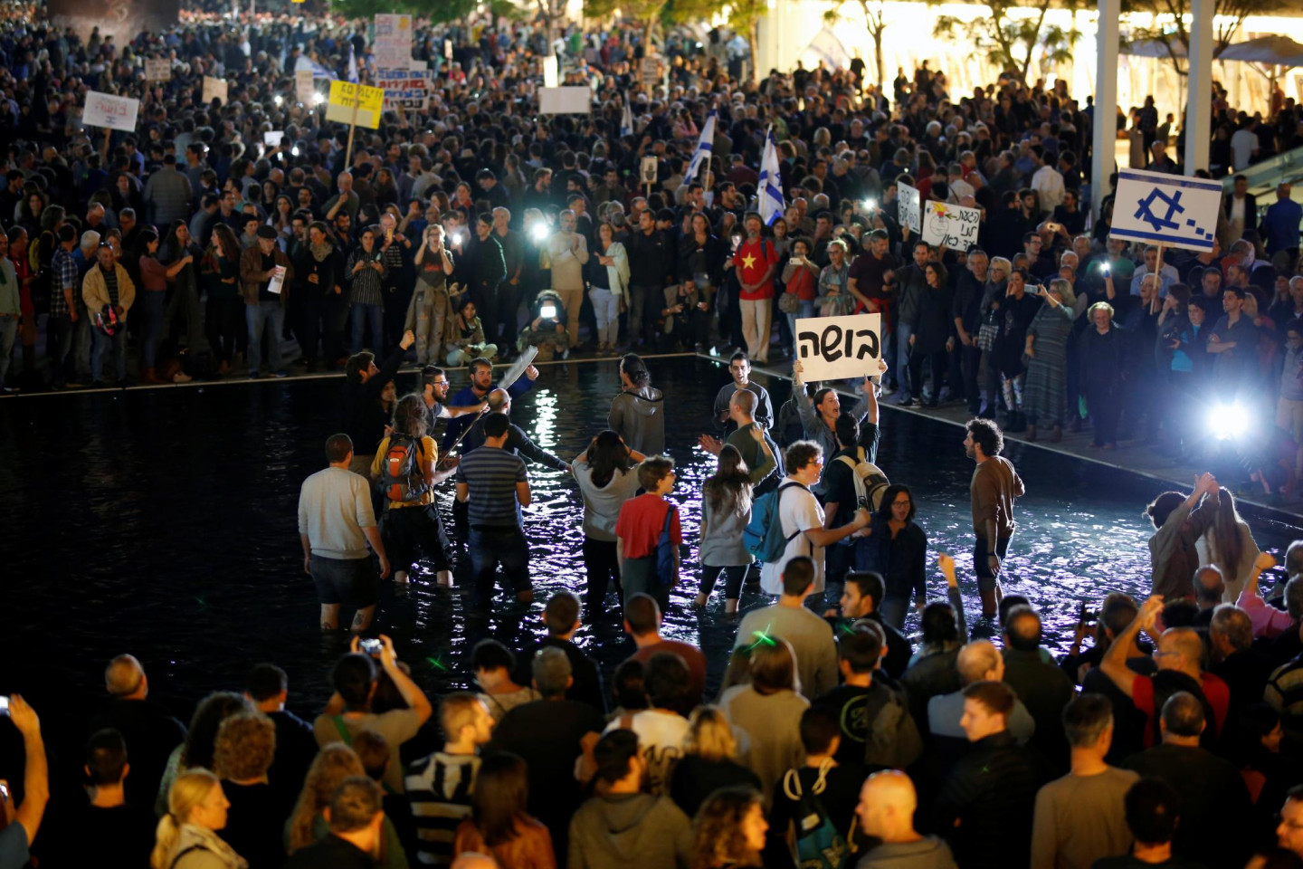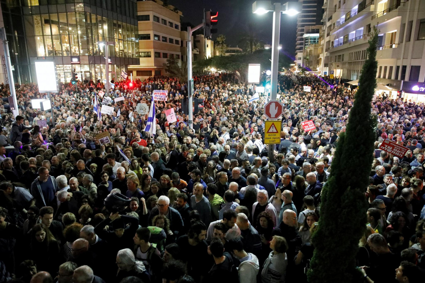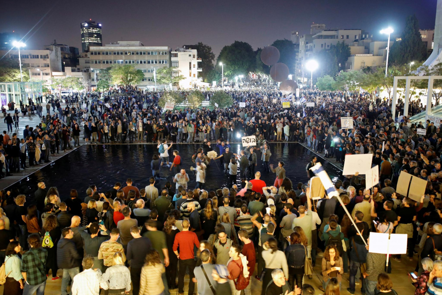 Aptuveni 20 000 cilvēku sestdien bija sapulcējušies uz demonstrāciju Telavivā, lai protestētu pret korupciju valdībā un premjerministru Benjaminu Netanjahu. Protestētāji iestājās arī pret likumprojektu, kas, viņuprāt, izstrādāts Netanjahu pasargāšanai no izmeklēšanas. Netanjahu tiek turēts aizdomās divās korupcijas lietās.